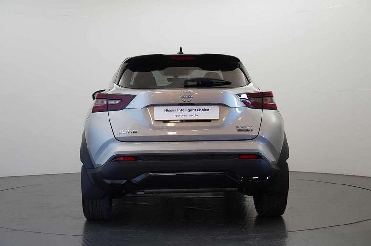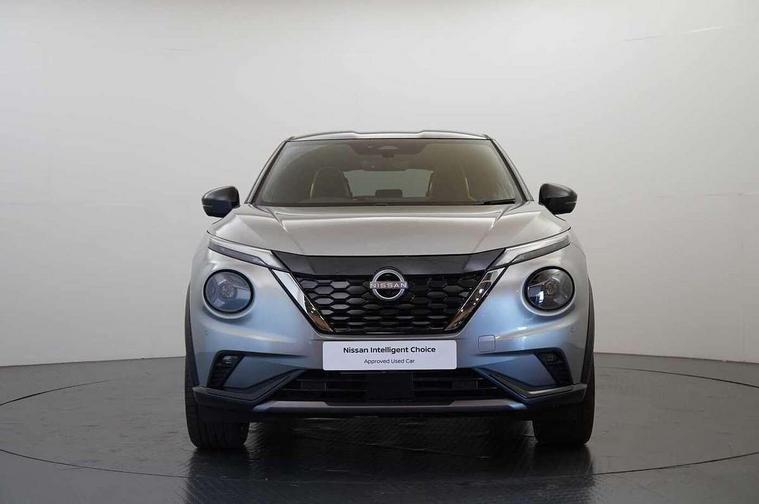 12.3" full colour TFT screen combimeter, Drive modes select (Eco, normal and sport), e-Pedal step, Emergency and breakdown call, EV mode switch, Front parking sensor, Intelligent driver alert system, Intelligent lane intervention, Lane departure warning system, Nissan connect 12.3" touch screen entertainment system, Nissan connect nav with TomTom traffic, Nissan connect services, Outside temperature sensor, Power Steering, Rear parking sensor, Stop/start button, Traffic sign recognition, Trip computer, Voice recognition, WiFi connectivity, Wireless Apple CarPlay and Google Android auto, Wireless Smartphone charger, 10 Bose speakers 8 speakers and 2 headrest speakers for driver/passenger seats, 2 X Rear console USB port, Bluetooth system, USB, Aux-in and 12V socket, Bose personal plus audio system, DAB Digital radio, Auto dimming frameless rear view mirror, Automatic hazard signal with emergency stop signal, Body colour door handles, Electrically adjustable door mirrors with integrated indicators, Follow me home headlights, Front and rear electric window with one touch driver window, High beam assist, LED 3rd brake light, LED daytime running lights, LED front fog lights, LED headlamps, LED rear fog lamp, LED rear lamps, One touch passenger window, Rear privacy glass, Rear side wing doors, Rear wiper, Roof spoiler, Shark fin roof antenna in solid Black, Solid black door mirrors, Three blink turn signal, 3 height adjustable rear headrests, 3 seat bench in 2nd row, 60/40 split folding rear seat, Card holder on driver sunvisor, Door ambient lighting, Driver seat back pocket, Driver side rear coat hanger, Driver/passenger sunvisors and vanity mirrors, Front and rear cabin lights, Front armrest, Front door pockets with bottle holders, Front head restraints, Front/rear passenger grab handles, Gear console ambient circle lighting, Height adjustable driver's seat, Internal chrome door handles, Luggage board, Luggage space lighting, Monoform sporty seats, Multifunction steering wheel, Passenger seat back pocket, Rear door bottle holders, Single front passenger seat, Smooth synthetic leather steering wheel, Synthetic leather kneepad, Synthetic leather shift knob, Telescopic steering wheel adjustment, Two cupholders in front centre console, Two rear isofix child seat anchorage points with top tether, Welcome light and console tray ambient lighting, Comfort pack - Juke, Gloss black exterior personalisation pack - Juke, Heat pack with height adjustable passenger seats - Juke, Interior personalisation pack - Juke, ProPilot pack - Juke Auto, ABS with EBD and brake assist, Active ride control, Active Trace Control, Driver and passenger airbags, Driver and passenger side airbags, Electric handbrake with auto hold function, Electronic Stability Programme (ESP), Front and rear curtain airbags, Height adjustable seatbelts, Hill start assist, Intelligent emergency braking with pedestrian and cyclist recognition, Rear door child safety locks, Seatbelt reminder for driver/front passenger and rear seats, Three 3 point rear seatbelts, Traction control, Tyre pressure monitoring system, VDC Dynamic Vehicle Control, Alarm, Immobiliser, Intelligent key and start push button with walk away lock and approach unlock functions, Remote central locking, Tyre puncture repair kit,