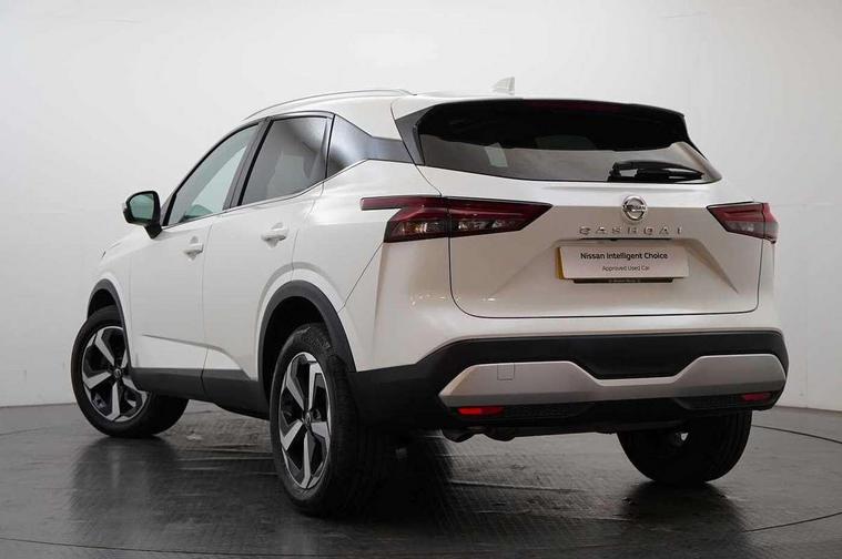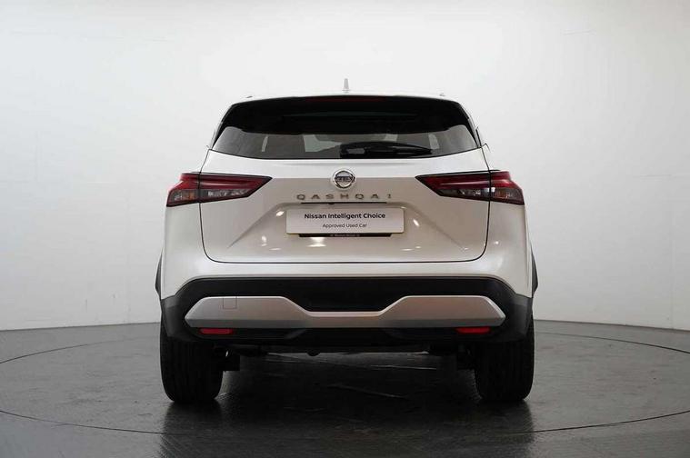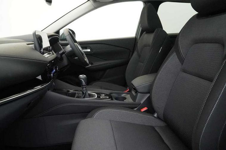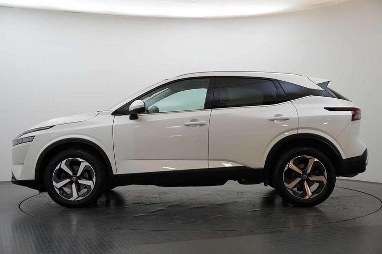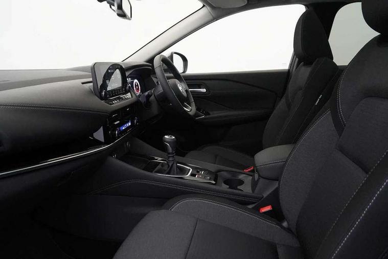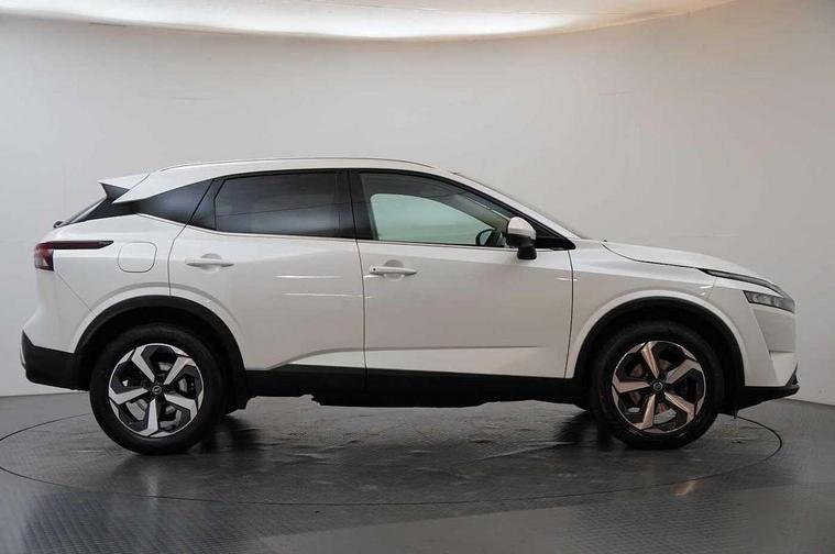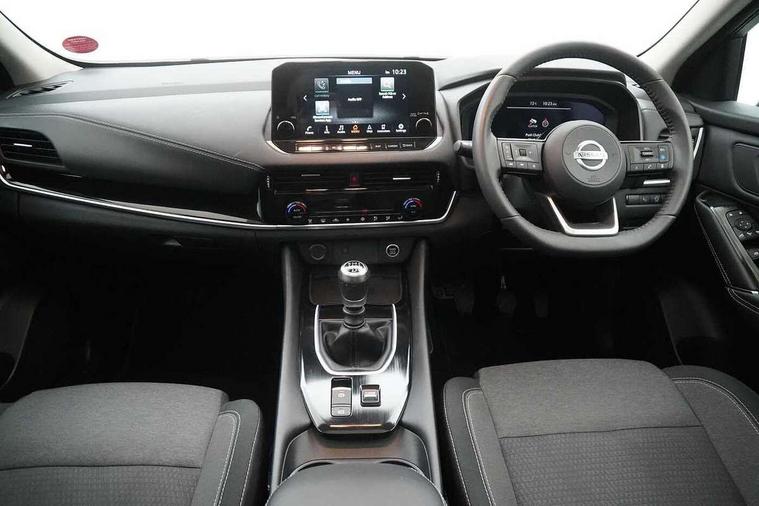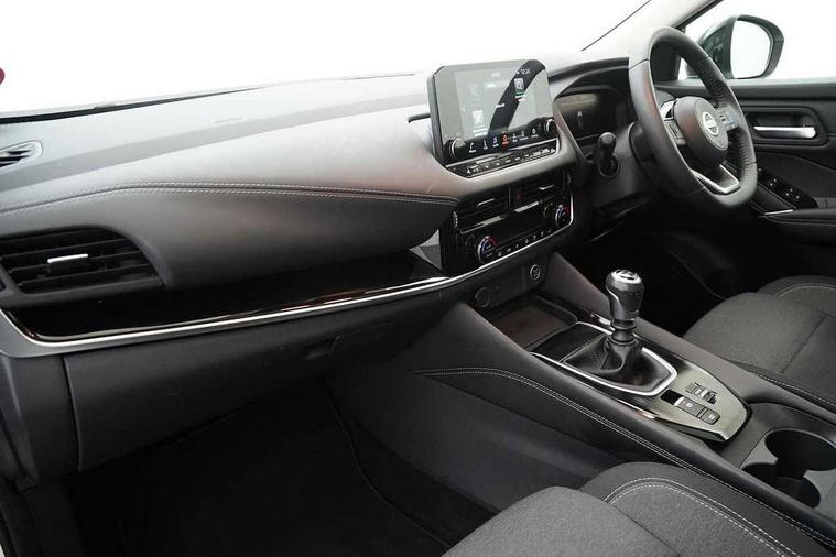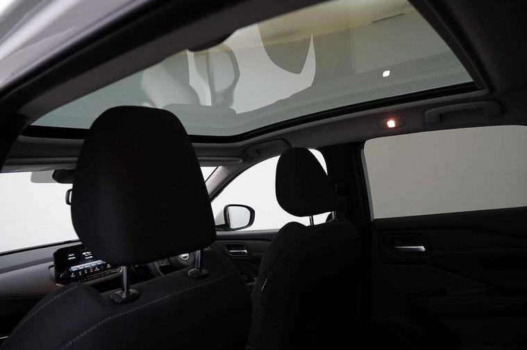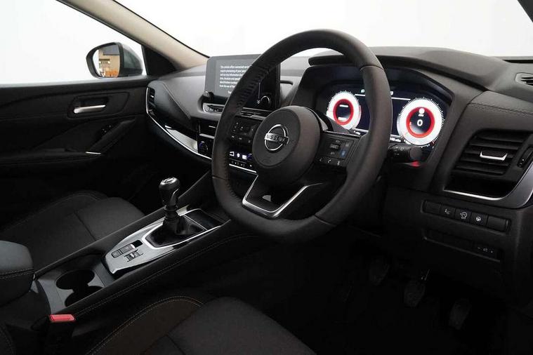 Blind spot warning, Drive modes (sport, normal, eco), Electric speed sensitive power steering, Emergency and breakdown call, Front and rear parking sensors, Full Digital 12.3" TFT Digital Combimeter, Idle stop/start system, Intelligent Cruise control (ICC), Intelligent driver alert system, Intelligent forward collision warning, Intelligent lane intervention, Lane departure prevention, Lane departure warning system, Moving object detection, Push button starter, Rear cross traffic alert, Traffic sign recognition with legal speed adjustment, Trip computer, 6 speakers, AM/FM audio system with DAB, Bluetooth audio streaming, Front USB connections (Type-A and Type-C), Rear USB charging only ports (Type-A and Type-C), 3rd brake light, Auto dimming rear view mirror, Auto rear wiper when reversing, Body colour mirror caps, Body coloured door handles, Bodyside mouldings, Chrome side window finisher, Electric auto folding door mirrors, Electrically adjustable and heated door mirrors with LED turn indicator, Fixed panoramic glass roof with electric sunshade, Follow me home headlights, High beam assist, Intelligent auto headlights, LED daytime running lights, LED rear lights, One touch front and rear electric windows with remote opening and closing, Partially body coloured bumpers, Privacy glass, Rain sensor, Rear roof spoiler, Rear side wing doors, Rear styling plate, Roof rails, Shark fin antenna, Splash free rain sensing wipers, Super UV and infrared cut glass, Three blink turn signal, 12v power socket in dashboard and luggage, 2 way electrical driver lumbar adjustment, 2x Rear coat hooks, 3 bench rear seats in 2nd row, 3 rear headrests, 4 grab handles, 6 Luggage hooks - 4 on floor, 2 on side, 60/40 split folding rear seat bench, Ambient lighting around centre console, Centre console storage tray, Chrome interior door handles, Cloth monoform upholstery, Driver and front passenger sunvisors with illuminated vanity mirrors, Driver seat back pocket, Dual zone automatic climate control with pollen filter, Front centre console and armrest, Front cupholder, Front door with bottle holders, Glovebox with light, Hard trunk cover, Height adjustable driver's seat, Height adjustable front headrests, Leather shift knob, Leather steering wheel, Luggage board system, Luggage space lighting, Manually adjustable passenger (slide recline + lifter), Multifunction steering wheel, Passenger seat back pocket, Rear armrest with 2 cupholders, Rear door bottle holders, Single front passenger seat, Soft PVC kneepad, Steering wheel switches, Tilt/telescopic adjustable steering wheel, Two rear isofix child seat anchorage points with top tether, Welcome light and console tray ambient lighting, Connectivity Pack - Qashqai, Tech Pack (Drive Assist + HUD), 3x3 point rear seatbelt pretensioners + load limiters, ABS, ESP, EBD and brake assist, Active brake limited slip, Auto hold function, Child locks on rear doors, Curtain and front side, far side airbags, Driver and passenger airbags, Driver, passenger and 2nd row rear seat belt reminder, Electronic parking brake, Front seatbelt pretensioners + load limiters, Height adjustable front seatbelts, Hill start assist, Intelligent blind spot intervention, Intelligent front emergency braking with pedestrian, cyclist recognition and junction assist, Intelligent rear automatic braking, Tyre pressure monitoring system, Vehicle dynamic control, Capless fuel filler, Engine immobiliser, Nissan i-key, Remote central door locking with deadlocking, Thatcham Cat.1 alarm, 18" Diamond cut alloy wheels,
