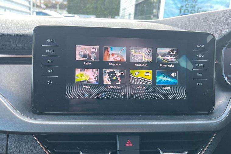 Amundsen satellite navigation with 9.2" glass colour touchscreen display, voice control, virtual cockpit, web radio and traffic sign recognition, Bluetooth system, E-call, Front and rear parking sensors, Front assist system, Gesture control, PAS, Rear view camera, Service indicator, Speed limiter, Virtual cockpit with 10.25" display, Wireless SmartLink for apple car play, android auto and mirrorlink, 8 Speakers, Auxiliary input socket, DAB Digital radio, Auto dimming rear view mirror, Body colour bumpers, Body colour door mirrors and handles, Chrome grille surround, Electric folding door mirrors, Electrically adjustable and heated door mirrors, Front and rear electric windows, Headlight range control, Heated rear window, LED rear lights - low functionality, LED third brake light, Light sensors, Privacy glass, Rear fog lights, Rear side wing doors, Rear wiper, 12V Accessory socket in centre console, 3 seat bench in 2nd row, Chrome inner door handles, Dual zone climate control, Front head restraints, Glove compartment with illumination, Ice scraper, Isofix child seat fittings on outer rear seats, ISOFIX on front passenger seat, Manual lumbar support for front seats, Rake/reach adjustable steering wheel, Reading lights, Single front passenger seat, Sun visors with illumination on front passenger, Textile floor mats, Third rear headrest, Top tether for front passenger seat, Umbrella in driver's door, 3x3 point rear seatbelts, Airbags - driver and front passenger, ESP, Front passenger airbag deactivation switch, Front side airbags with curtain airbags, Hill hold control, Manual parking brake, Manual rear child locks, One tone horn, Rear disc brakes, Seatbelt reminder for driver an co-driver, Traction control, Tyre pressure monitor, Anti-theft alarm system with interior monitoring, backup horn, towing protection and remote central locking with SAFE system, Anti-theft wheel bolts, Electronic engine immobilizer, Latice curved decorative insert on the dashboard with hot stamping in copper and white ambient lighting white,