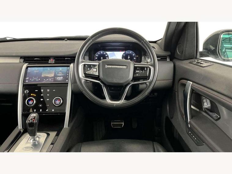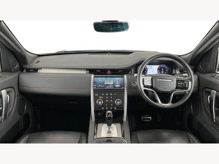 10" touch screen, 3D Surround Camera with 360 View, 180 Rear View, Front Traffic Detection, Forward Vehicle Guidance, Tow Hitch Assist and clear sight Ground View, Android Auto, Apple CarPlay, Blind spot assist, Clear exit monitor, Driver condition monitor, Front and rear parking aid, InControl remote premium, Interactive driver display, Lane keep assist, PAS, Pivi Pro connected navigation system with upgraded Infotainment, Powered tailgate/boot lid, Rear traffic monitor, Rear view camera, Service interval indicator, Traffic sign recognition with adaptive speed limiter, Trip computer, Wade Sensing, All terrain progress control, Coil suspension system, Terrain Response 2, Bluetooth connectivity including audio streaming, Digital Audio Broadcast radio-DAB, Steering wheel mounted audio controls, Automatic headlight levelling, Automatic headlights, Door mirror memory, Electric front/rear windows, Fixed panoramic sunroof with powered sunblind, Power fold, auto-dimming, heated door mirrors with approach lights, Rain sensing windscreen wipers, Rear fog lights, Rear side wing doors, Rear wiper, Bright metal pedals, Centre console with armrest, Front passenger isofix child seat attachment, Rear headrests, Satin chrome gearshift paddles, Sunvisors with illuminated vanity mirrors, Third row dual adjustable individual seats, Tilt/reach adjustable steering wheel, Black exterior pack - Discovery sport, Online pack - Discovery sport, 3 point seatbelts on all seats, ABS, Brake hold function, CBC - (Cornering brake control), Collision mitigation braking system, Driver/Front Passenger airbags, Drivers knee airbag, Electronic brake force distribution, Electronic parking brake, Emergency brake assist, ESP + traction control, Hill descent control, Hill launch assist, Pedestrian airbag system, Rear seat ISOFIX, Side and curtain airbags for front and 2nd row seats, Trailer stability control, Tyre pressure monitoring system, Battery Back Up System (BBUS) with tilt sensor, Intrusion sensor, Locking wheel nuts, Centre stack rails in noble chrome,
