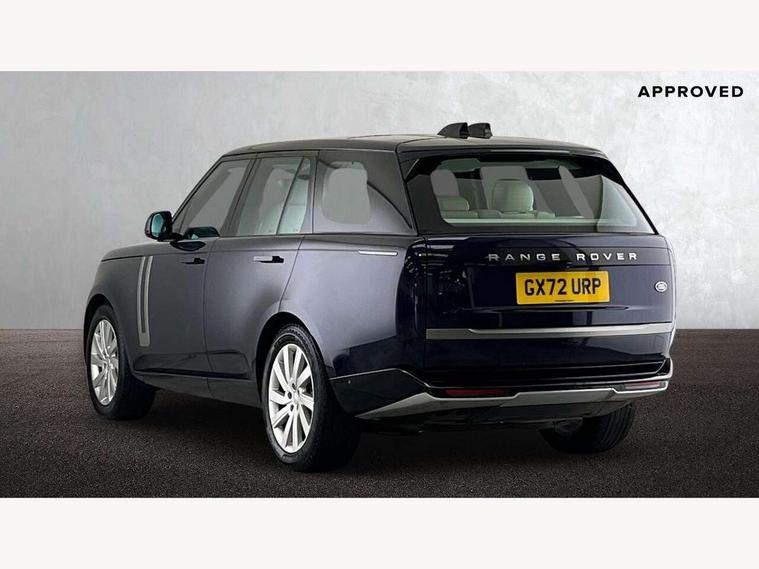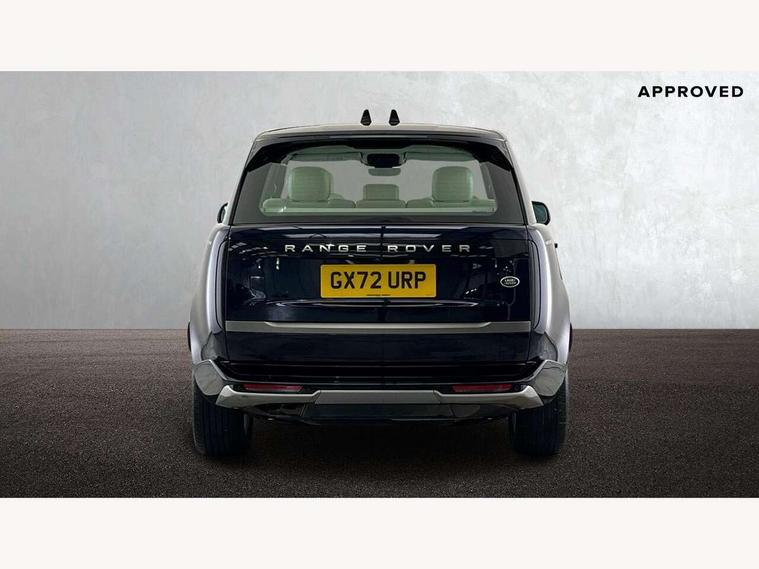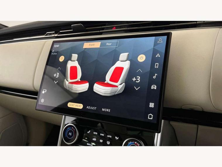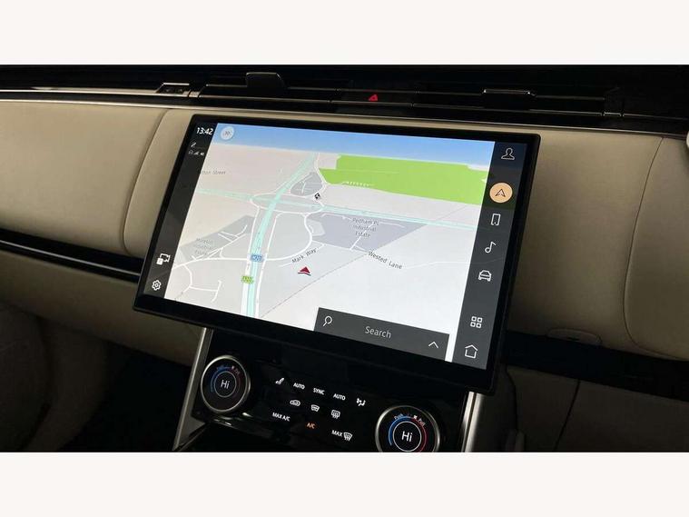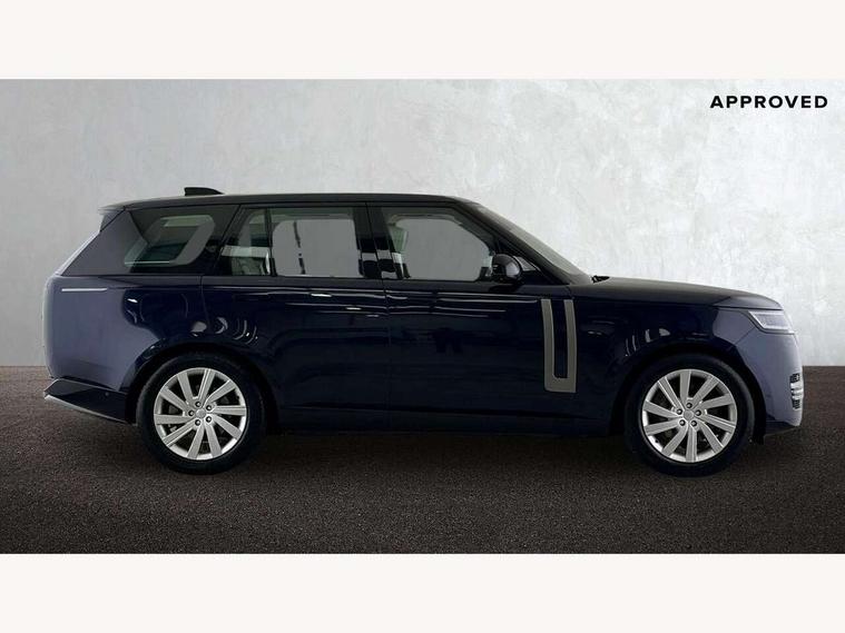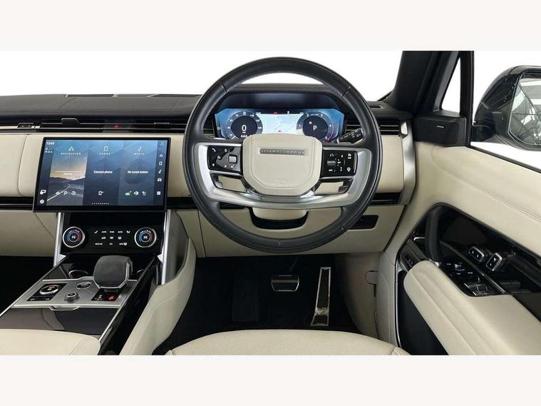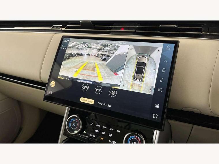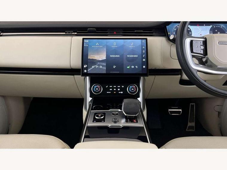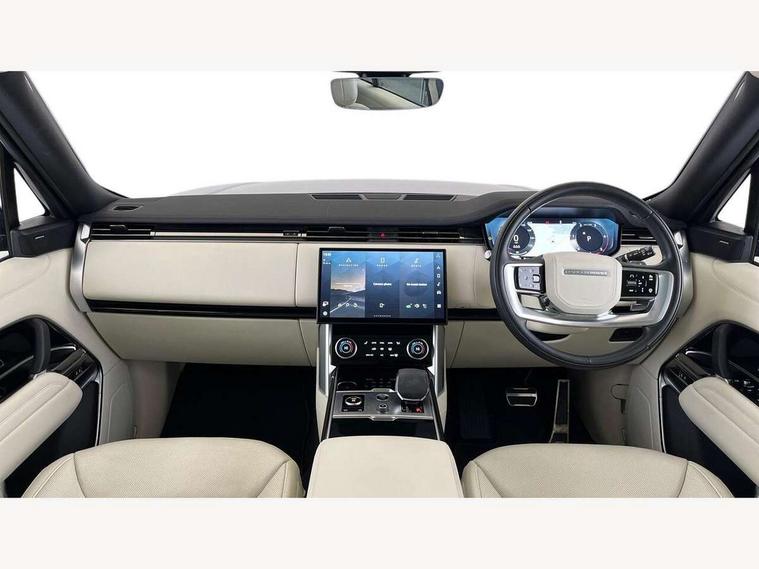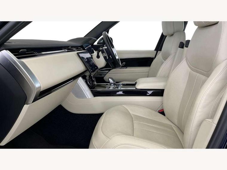 13.1" Touchscreen, 3D surround camera inc frwd traffic detection, vehicle clearance guidance, 3D view, clearsight ground view, manoevure light, 360 parking aid, wade sensing, Adaptive cruise control with steering assist, All Terrain Info Centre, All wheel steering, Android Auto, Apple car play, Blind spot assist, Bluetooth connectivity streaming, Driver condition response, Eco mode, Electric power assisted steering (EPAS), Emergency call service, Front and rear parking aid, Interactive driver display, Lane keep assist, Powered gesture tailgate/boot lid, Rear collision monitor, Rear traffic monitor, Remote, Traffic sign recognition with adaptive speed limiter, Wi-Fi Enabled with data plan, Wireless device charging with phone signal booster, 8 speed automatic transmission, Active damper technology system, Adaptive dynamics, All terrain progress control, All Wheel Drive (AWD), Automatic access height, Electronic active differential with torque vectoring by braking, Electronic air suspension with dynamic response, Terrain Response 2 Auto, Twin speed transfer box, Digital Audio Broadcast radio-DAB, Pivi pro including smart settings, Connected navigation pro, nuance speech, USB socket, Acoustic laminated windscreen, Animated directional indicators, Automatic headlights, Automatic levelling headlights, Centre high mounted stop light, Electric windows with one touch open/close and anti trap, Flush deployable exterior door handles, Front and rear recovery eyes, Front fog lights, Headlamp power wash, Heated rear window, Heated washer jets, LED tail lights, Power fold, auto-dimming, heated door mirrors with approach lights, Rain sensing windscreen wipers, Range rover badge, Rear boot, Rear fog lights, Rear side wing doors, Rear wash/wipe, Side repeater indicators in mirror, Trailer stability assist, Winter wiper park position, 12V power sockets, 3 seat bench in 2nd row, Air quality sensor, Bright metal pedals, Cabin lighting, Customer configurable single point entry, Driver and passenger front seat armrests, Easy boot loading, Ebony Carpet, Front and rear cupholders, Front and rear grab handles, Front head restraints, Gearshift paddles, Heated steering wheel, Hook in load space, Loadspace light, Luggage tie down in loadspace, Multifunction steering wheel, Rear centre armrest, Rear head restraints, Rear ISOFIX, Single front passenger seat, Soft close doors, Twin blade sunvisors with Illuminated vanity mirrors, Upper and lower glovebox, Online pack with data plan - Range Rover, 3x3 point rear seat belts, Anti-lock braking system (ABS), Brake hold function, Cornering brake control (CBC), Customer configurable autolock, DSC - Dynamic Stability Control, Electronic brake force distribution, Electronic parking brake, Electronic traction control, Emergency brake assist, Emergency braking, Front airbags with passenger seat occupant detector, Front side airbags, Hill descent control, Hill launch assist, Low traction launch, Occupant protection assist, Power operated child locks, Roll stability control, Tyre pressure monitoring system (TPMS), Immobiliser, Intrusion sensor and alarm, Keyless entry, Locking wheel nuts, Remote central locking, Noble chrome controls,