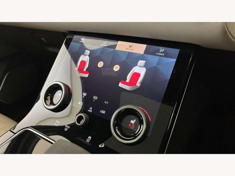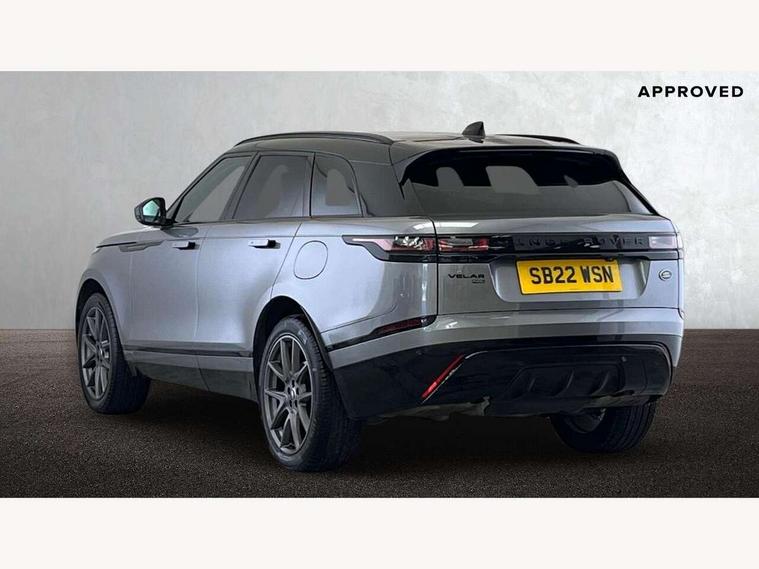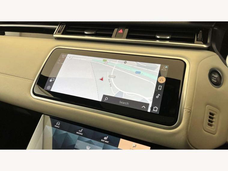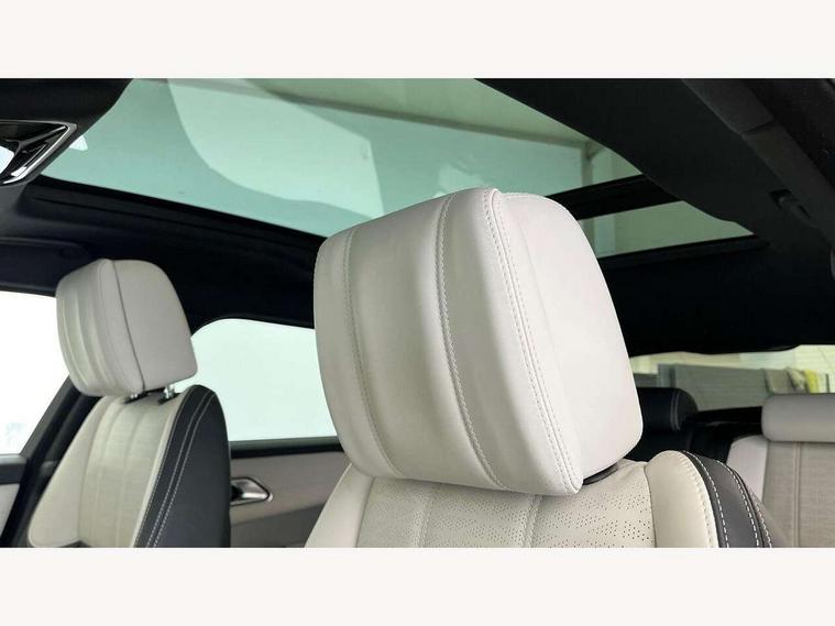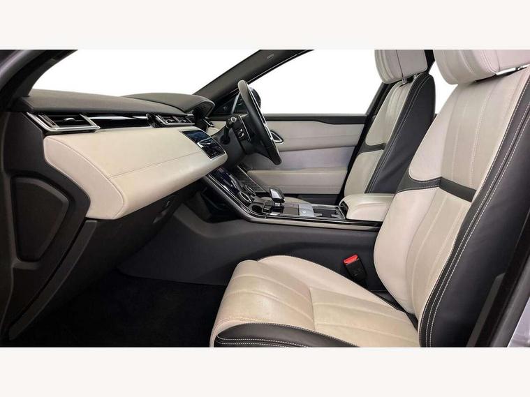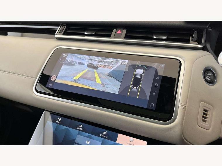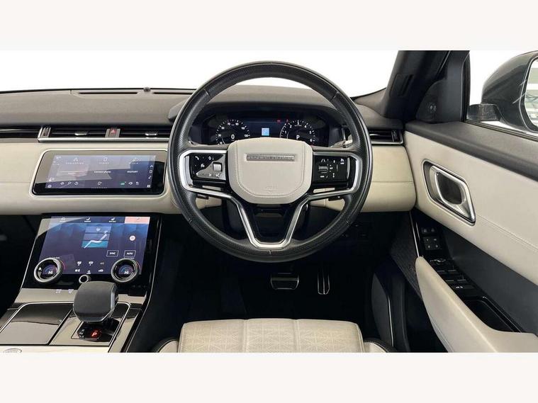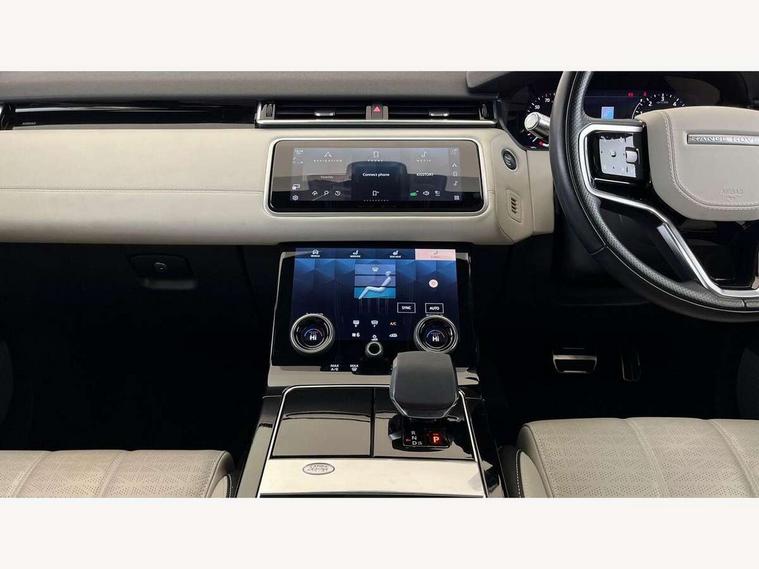 10" deployable touchscreen, Adaptive cruise control with steering assist, Android Auto, Apple car play, Blind spot assist, Bluetooth connectivity, Brake pad wear indicator warning light, Driver condition monitor, eCall emergency call system, InControl remote, Interactive Driver display instrument cluster, Land Rover InControl apps, Lane keep assist, Pivi pro with connected navigation, Push button start, Rear collision monitor, Rear traffic monitor, Service indicator, Speed proportional electronic power assisted steering (EPAS), Traffic sign recognition with adaptive speed limiter, Trip computer, Voice control system, 8 speed automatic transmission, AC/DC charging, Adaptive dynamics, All terrain progress control, Coil suspension system, Home charging cable, Open differential with torque vectoring by braking, Public charging cable, Single speed transfer box, Digital Audio Broadcast radio-DAB, Steering wheel mounted controls, Acoustic laminated windscreen, Adaptive front lighting system, Auto dimming interior rear view mirror, Automatic headlamp levelling, Automatic headlights, Body coloured bumpers, Boot protection plate, Electric heated/power fold door mirrors with approach lights and auto dimming driver side, Electric windows with one touch open/close and anti trap, Flush deployable exterior door handles, Follow me home headlights, Heated rear window with timer, Heated washer jets, Heated windscreen, LED 3rd brake light, Metal load space scuff plates, Rain sensor windscreen wipers, Rear animated directional indicators, Rear fog lights, Rear side wing doors, Rear wash/wipe, Tailgate/boot lid spoiler, Trailer stability assist, Velar and R-dynamic badge, 3 seat bench in 2nd row, Ambient lighting, Bright metal pedals, Driver/passenger sunvisors with illuminated vanity mirrors, Electric adjustable steering column, Isofix system on outer rear seats, Loadspace cover, Overhead lighting console, Overhead stowage for sunglasses, Passive front headrests, Rear air vents, Rear centre headrest, Satin chrome gearshift paddles, Single front passenger seat, Twin front cupholders, Twin sliding front centre armrest, Online pack with data plan - Velar, 380mm front brakes and 325mm rear brakes, 3x3 point rear seatbelts, Anti-lock braking system (ABS), Cornering brake control, Curtain airbags, Customer configurable autolock, Door side intrusion beams, Driver airbag, DSC - Dynamic Stability Control, Electronic brake force distribution, Electronic parking brake, Electronic traction control, Emergency brake assist, Emergency braking, Front and rear seatbelt reminder, Hill descent control, Hill launch assist, Low traction launch, Passenger airbag, Power operated child locks, Rear airbags, Roll stability control, Side airbags, Tyre pressure monitoring system, Unpainted brake calipers, Global lock and unlock switch on driver door, Immobiliser, Intrusion sensor, Keyless entry, Lock only switch on front passenger door, Locking wheel nuts, Perimetric alarm, Remote central locking,