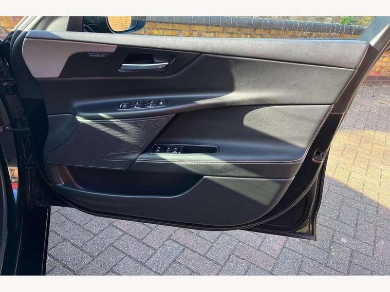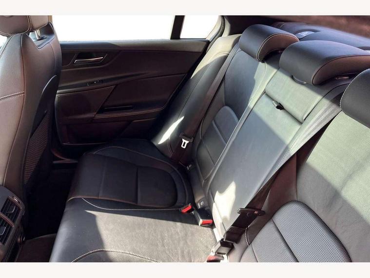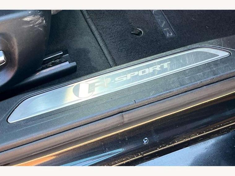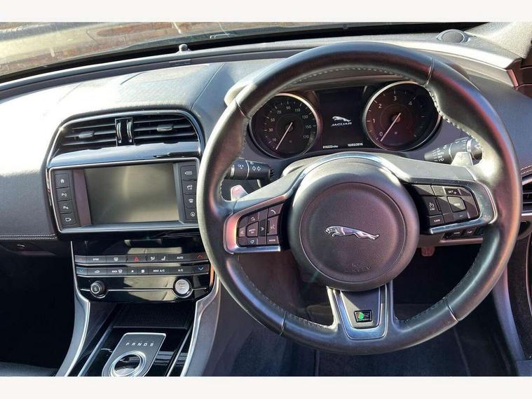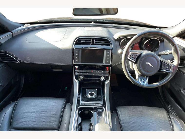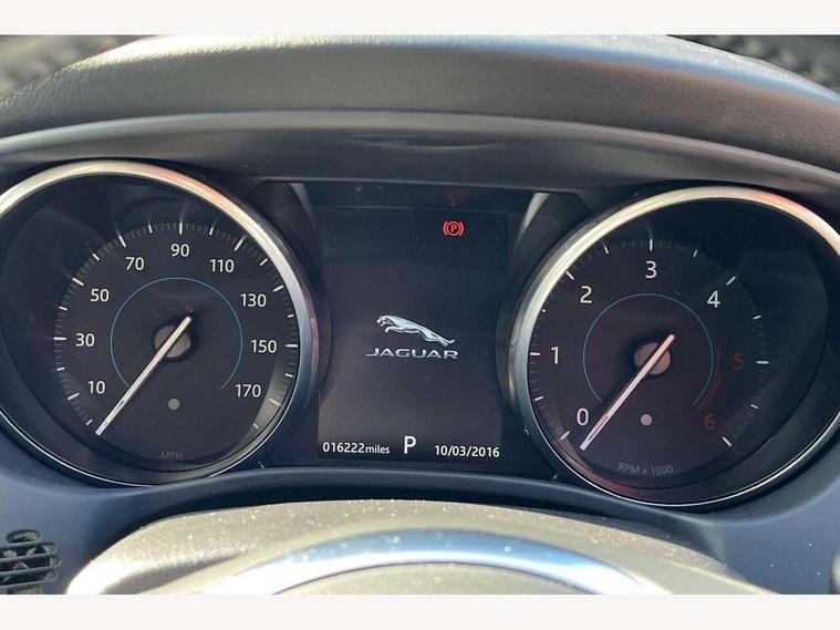 Bluetooth telephone connectivity, InControl remote, Lane departure warning system, Outside temperature gauge, Push button starter, Rear parking sensor, Satin chrome surround on touch screen, Service interval indicator, Servotronic PAS, Traffic sign recognition, Trip computer, Voice control system, Sports suspension, Bluetooth audio streaming, DAB digital radio module, Dynamic volume control, InControl app, InControl protect, USB/iPod connection, Approach lamps, Auto dimming rear view mirror, Automatic headlights, Body colour bumpers, Body colour door mirrors, Body coloured side sills, Electric front/rear windows with one touch/auto up/down, Green tinted heat insulating glass, Headlight washers, Heated rear windscreen, High beam assist, LED rear lights, Rain sensor windscreen wipers, Rear spoiler, Trailer stability assist, Variable front intermittent wipers, 12V power point front/rear, 3 rear seat head restraints, Dual zone automatic climate control, Front and rear reading lights, Front centre armrest with storage compartment, Front map lights, Illuminated glovebox, Illuminated trunk, Isofix child seat preparation, JaguarDrive selector, Lockable glovebox, Luggage tie-down hooks, Multi function steering wheel, Overhead console with sunglasses holder, Perforated grained leather upholstery, Rear air vents, Rear armrest with cupholder, Shopping hook in boot, Softgrain leather steering wheel, Sports seats, Storage compartment in front doors, Storage compartment in rear doors, Sunvisors with illuminated vanity mirrors, Twin front cupholders, ABS, All surface progress control (ASPC), Anti-whiplash front headrests, Autonomous emergency braking, Brake pad warning light, Driver/Front Passenger airbags, DSC - Dynamic Stability Control, Electronic parking brake, Emergency brake assist, Front and rear seatbelt reminder, Front passenger seat occupancy sensor, Front side airbags, Hill start assist, Power child locks, Side curtain airbags, Three 3 point rear seatbelts, Torque vectoring brake, Traction control, Tyre pressure monitoring system, Driver's central locking switch, Immobiliser, Locking wheel nuts, Perimeter alarm, Remote central locking, Smart key start system, Leather dashboard, Leatherette facia,