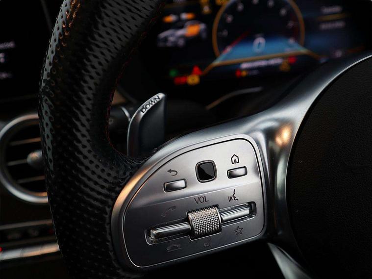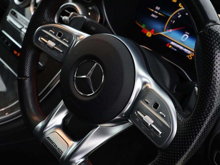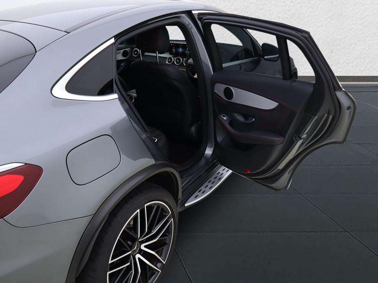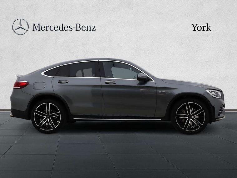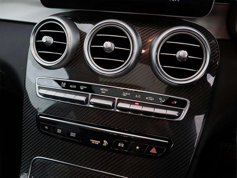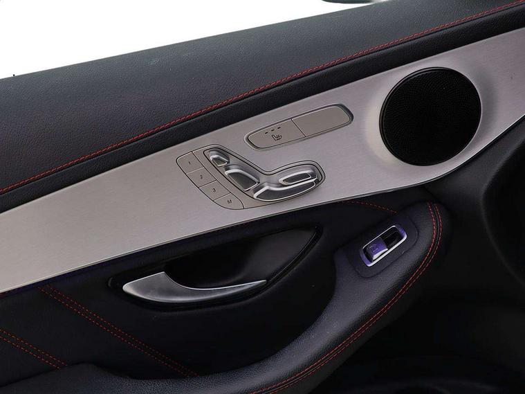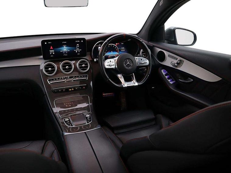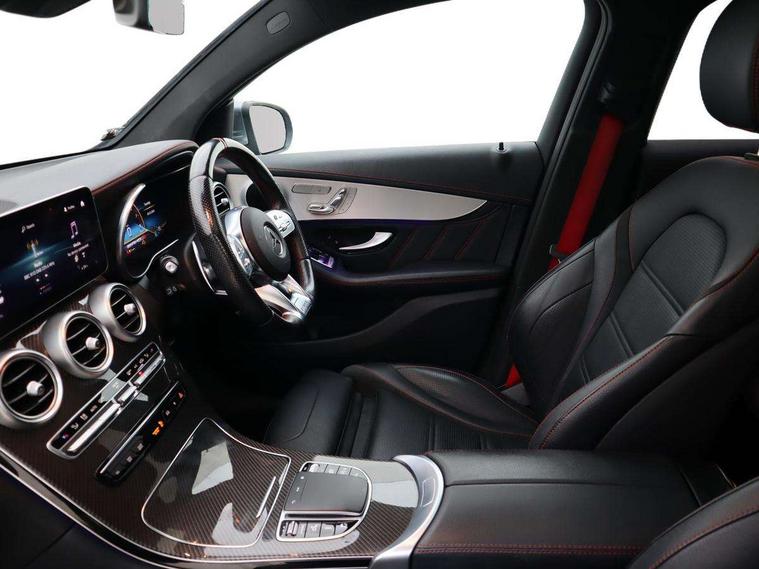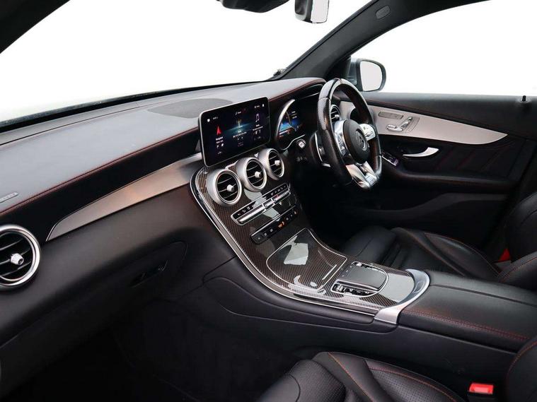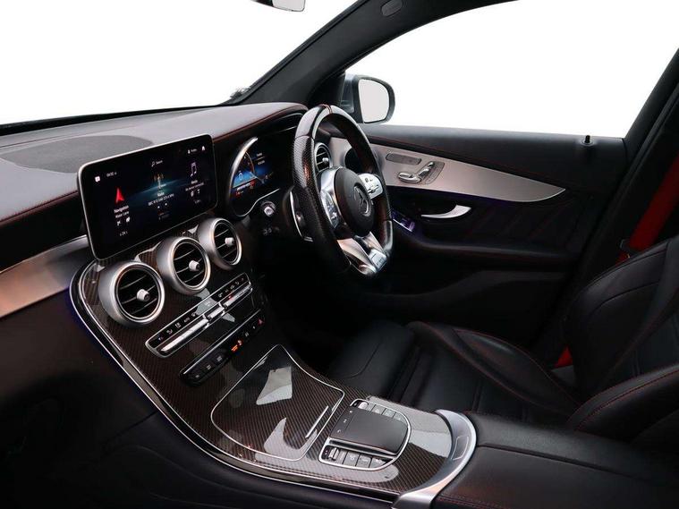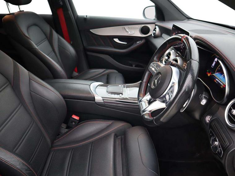 360 degree view camera, Active parking assist with parktronic system, Attention assist, Bluetooth interface for hands free telephone, Collision prevention assist plus, Cruise control with speedtronic variable speed limiter, Direct steer speed sensitive steering, DYNAMIC SELECT with a choice of driving modes (ECO, Comfort, Sport, Sport+ and Individual), Easy pack automatic powered tailgate, eCall emergency call system, ECO start/stop function, Hard disk navigation, Hey Mercedes Voice activation, Instrument cluster with12.3-inch digital instrument cluster display. High resolution instrument cluster screen with choice of three display styles, MBUX Interior assistant, Mercedes connect me with remote online services, Multi function trip computer, Outside temperature display, rear seatbelt status indicator, Remote boot release, Service indicator (ASSYST), Smartphone integration with Apple CarPlay and Android auto, Traffic sign assist, 66 litre fuel tank, AMG electronic rear axle limited slip differential lock, AMG performance 4MATIC+, AMG ride control air suspension for front and rear axles with continuously adjustable damping, AMG SPEEDSHIFT TCT 9G 9-speed automatic transmission with steering column gear selector, DIRECT SELECT steering wheel gearshift paddles, Petrol Particulate Filter (PPF), Advanced sound system, MBUX multimedia system with DAB digital radio and touchpad, Media display 10.25-inch touchscreen display, Pre installation for Mercedes Benz Link, USB ports x 2 in centre console, Adaptive brake lights, Adaptive high beam assist, AMG bodystyling front apron in jet wing design with silver chrome front splitter, AMG bodystyling with 2 black louvres in outer air intakes, AMG bodystyling with rear apron and diffuser fins, AMG bodystyling with side sill panels, AMG Performance exhaust, AMG radiator grille with black vertical louvres and trim strip in high gloss chrome, AMG spoiler lip, Body colour door mirrors, Body coloured bumpers, Electric sliding glass sunroof, Electric windows one touch open/close, Electrically adjustable and heated door mirrors, Front, side and rear exterior chrome trim, Headlamp assist automatic headlamp activation, High level LED brake light, LED high performance headlamps with integrated LED daytime running lights, LED tail lamp, Motor way mode function and locator lighting, Privacy glass with dark glass from B pillar backwards, Rain sensor windscreen wipers, Range adjustable headlights, Rear side wing doors, Rear wiper, Roof spoiler, Running boards, Tinted glass all round with single layer safety glass, Tinted rear windows, Two chrome plated tailpipe trim elements, Variable front intermittent wipers, 2 way rear head restraints, 3 seat bench in 2nd row, 40:20:40 split folding rear seats, Ambient lighting, AMG floor mats with edging and embroidered AMG lettering, AMG illuminated door sills, AMG sports seats, Artico man-made leather upper dashboard with contrast topstitching, Automatic child seat recognition sensor, Black roof lining, Dividing net - rear, Double cup holder in centre console, Easy-pack removable load compartment cover, Electric height/reach adjustable steering column, Flat bottomed multifunction sports steering wheel in black nappa leather, embossed in central grip, with silver chrome steering with red topstitching, Front armrest with storage box, Front door sills with Mercedes Benz lettering, Front head restraints, Front passenger seat, Heated front seats, Heated steering wheel, Illuminated and lockable glove compartment, Leather upholstery, Rear top tether child seat ISOFIX attachment, Sports pedals with stainless steel surfaces and rubber studs, Steering wheel with touch control buttons, THERMOTRONIC 3 zone automatic climate control, Interior lighting pack - GLC, Memory pack - GLC, Mirror pack - GLC, Storage pack - GLC, 3 rear 3 point seatbelts, Active bonnet, Adaptive brake system with HOLD function and brake drying in the wet, ASR, Brake calipers with Mercedes-Benz lettering + perforated brake discs, Child proof door locks, Dual-stage airbags - driver and front passenger, driver knee bag and window bags for driver, front passenger and rear passengers, Electronic parking brake, Electronic stability programme (ESP) with curve dynamic assist and cross wind assist, Front and rear seatbelt reminder, Front passenger seat occupancy sensor, Hill hold function, MANUFAKTUR seat belts in red, Tyre pressure monitoring system, Warning triangle and first aid kit, Alarm system/interior protection/immobiliser, Automatic door locking, Keyless Go entry and starting function, Remote central locking, AMG carbon-fibre with light longitudinal grain aluminium trim, 21" AMG 5 twin spoke design alloy wheels painted in black with high sheen finish, Summer tyres, Tirefit tyre sealant kit,