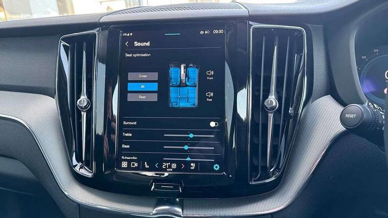 12.3" Progressive Driver Display, 360 degree surround view parking camera with side proximity sensors, 9" centre console touch screen, Adjustable steering wheel force, Apple carplay (wired), Bluetooth handsfree system, Driver alert control with lane keeping aid, Driver assistance (pilot assist and adaptive cruise control), Emergency services call system, Front and rear park assist, Google Automotive Services, Oncoming Lane Mitigation, PAS, Service interval indicator, Speed limiter, Speed sensitive steering, Trip computer, Volvo on call with App, Wireless/Inductive Mobile Phone Charging, 8 speed automatic transmission with start/stop + manual change functions, Dynamic chassis, DAB Digital radio, Premium Sound by Harman Kardon, dirac unison, dolby pro logic II surround sound, 13 speakers/600W output and fresh air subwoofer, Steering wheel remote infotainment controls, Adaptive brake lights with high level LED brake lights, Auto dimming interior + exterior mirrors, Automatic headlight levelling system, Automatic LED Headlights + Active high beam incorporating daytime running lights, Electric adjustable/heated/auto power folding door mirrors, Electric front+rear windows, Front aluminium tread plates, Heated front windscreen, High gloss black door mirrors and window surround, High gloss black front and rear bumper decoratives, High gloss black mesh front grille with high gloss black surround, Home safe and approach lighting, Integrated roof rails in high gloss black, LED front fog lights, Puddle lights, Rain sensor with automatic windscreen wiper activation, Rear side wing doors, Rear wiper, Roof antenna, Roof spoiler, Tinted windscreen, Visible VIN plate, 12V socket in front tunnel console and luggage compartment, 3 seat bench in 2nd row, 4 Zone electronic climate control, A-pillar parking ticket holder, Air purifier particulate matter (PM) 2.5 filter, B Pillar ventilation, Bright metal luggage threshold, Centre console cupholders and storage, Charcoal floor mats, Front and rear courtesy lights, Front and rear door pocket illumination, Front cupholder illumination, Front footwell illumination, Front reading lights, Front seat cushion extensions, Glovebox compartment with illumination, Head restraints for all seats, Heated front seats, Heated steering wheel, Height/reach adjustable steering column, Illuminated luggage compartment, Illuminated vanity mirrors + ticket holder, ISOFIX attachment on outer rear seats, Load cover, Load protection net, Multi directional lumbar support, Power driver seat with memory + exterior mirrors memory, Power height adjustable passenger seat, Rear armrest with cupholder, Rear footwell and front and rear side step illumination, Rear seat concealed storage, Single front passenger seat, Tailgate illumination and ambient door lighting, Underfloor stowage compartment, Versatile split folding rear seat - 60/40, 5 three point seatbelts, City safety with steering support with Pedestrian + cyclist + front collision warning with full auto brake and rear auto brake, Drivers knee airbag, Dual stage driver/passenger airbags, Electronic parking brake with auto hold, First aid kit, Front seats SIPS airbags, Hill descent control - Off-road drive mode, Hill start assist, IC (Inflatable Curtains) - Full Length, Passenger airbag cut-off device, Power child locks on rear doors, Road sign information display, Run off Road Mitigation, Run off Road Protection, Seatbelt reminder and pretensioners, SIPS (Side Impact Protection System), Slippery road and hazard light alert, Stability and Traction Control with Spin control, Engine Drag Control and Corner Traction Control, Tyre pressure monitoring system, Vehicle deceleration control with Anti-lock Brake System, Electronic Brake Distribution and Emergency Brake Assist, Warning triangle, WHIPS whiplash protection system - front, Anti-theft alarm including immobiliser/volume sensor + level sensor, Care key with user defined top speed, Key integrated remote control central locking + fuel flap with deadlocking system and auto open/close power windows, Keyless Drive (includes Keyless Entry and Keyless Start) with Handsfree Tailgate Opening/Closing, Locking wheel nuts, Private locking for tailgate,