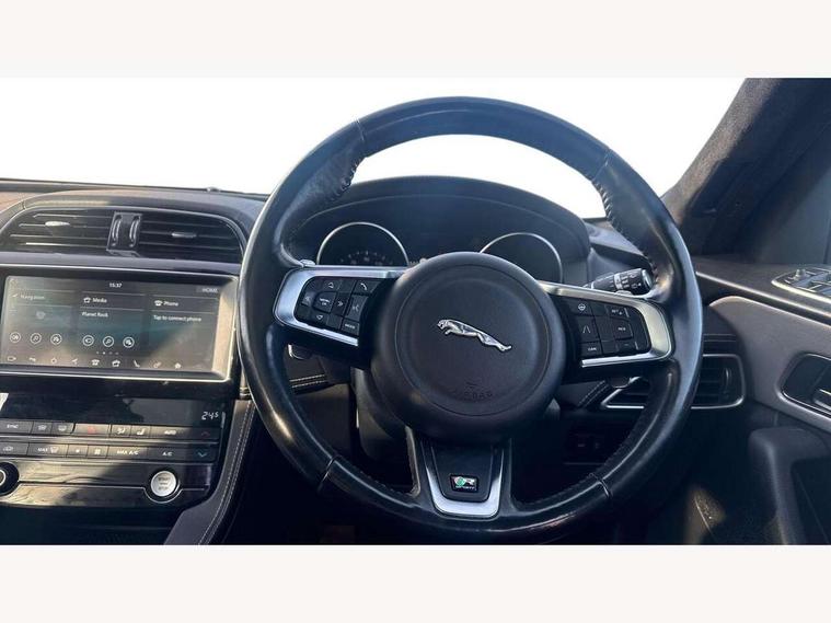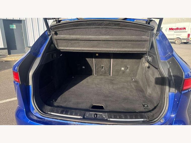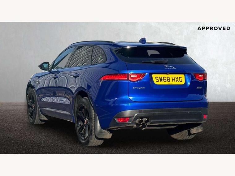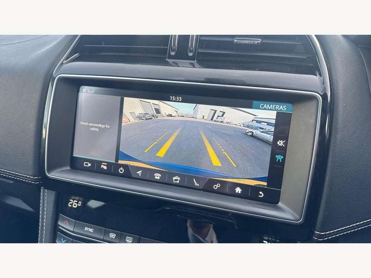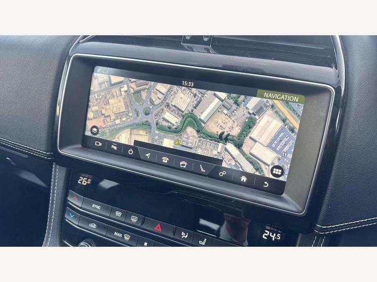 Analogue dials with 7" central TFT display, Auto speed limiter, Driver condition monitor, Eco driving style assistant, Front parking aid, Lane departure warning system, Lane keep assist with driver alert control, Outside temperature gauge, Push button starter, Rear parking aid, Satin chrome surround on touch screen, Service interval indicator, Servotronic speed sensitive power steering, Start up sequence with movement in dials and lighting, Traffic sign recognition, Trip computer, Voice control system, All terrain progress control, AM/FM radio, Bluetooth connectivity including audio streaming, DAB Digital radio, Dynamic volume control, InControl protect, USB/iPod connection, 3 flash lane change indicators, Approach Illumination, Auto dimming rear view mirror, Automatic headlights, Body colour bumpers, Body colour door mirrors, Dual tailpipe, Electric front/rear windows with one touch/auto up/down, F-Pace badge, Front fog lights, Green tinted heat insulating glass, Headlight washers, Heated rear window with timer, LED tail lights, Non acoustic front windscreen, R-sport body kit, R-Sport front bumpers, R-Sport rear bumpers, Rain sensor windscreen wipers, Rear fog lights, Rear metal tread plates, Rear wiper, Trailer stability assist, Variable front intermittent wipers, 12V power point front, 12V power point in luggage area, 2nd row air vents, 3 rear headrests, 40:20:40 split folding rear bench seat, Bright metal foot pedals, Centre armrest console, Door sill tread plates, Fold flat front seats, Front centre armrest with storage compartment, Illuminated glovebox, Illuminated luggage compartment, Interior front door handles with separate locking switches, ISOFIX on outer rear seats, Jaguar sense, JaguarDrive selector, Leather steering wheel, Multifunction steering wheel, Overhead lighting console, Perforated grained leather upholstery with contrast stitching, Premium carpet mats, Rear armrest with 2 cupholders, Reversible boot floor, Satin chrome gearshift paddles, Shopping hook in boot, Sunvisors with illuminated vanity mirrors, Tie down hooks in luggage area, Twin front covered cupholders, Connect pro pack - F-Pace, 3x3 point rear seatbelts, ABS, Anti-whiplash front headrests, Autonomous emergency braking (AEB) with forward facing camera, Brake pad warning light, Driver/Front Passenger airbags, DSC - Dynamic Stability Control, Electronic parking brake, Front and rear curtain airbags, Front and rear seatbelt reminder, Front passenger seat occupancy sensor, Front side airbags, Grey brake calipers, Hill start assist, Power child locks, Torque vectoring brake, Traction control, Tyre pressure monitoring system, Immobiliser, Keyless start, Perimeter alarm, Remote central locking, Valet mode, Luxtec door trim, Luxtec wrapped instrument panel, Satin chrome centre console surround,