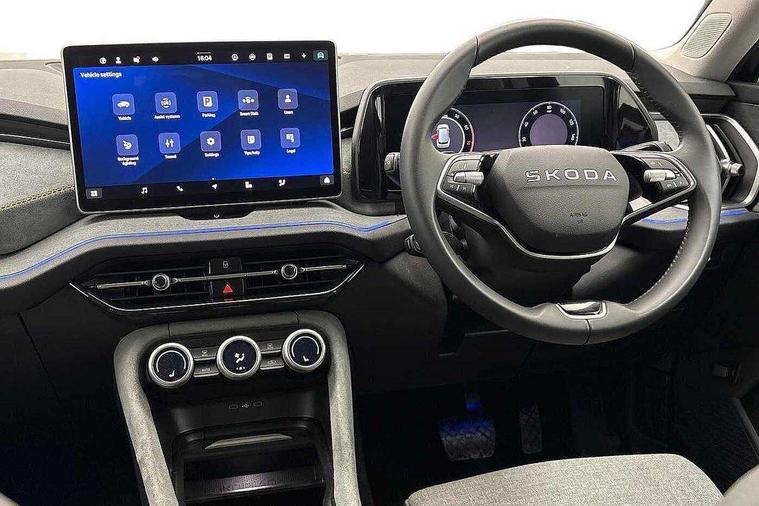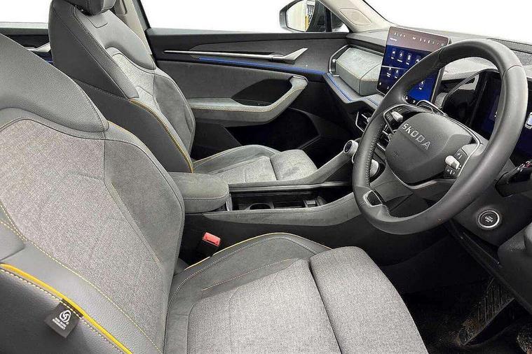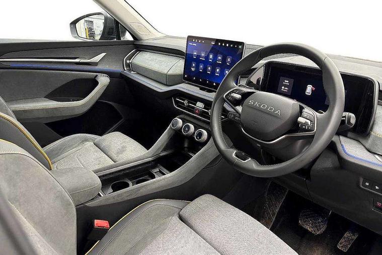 13" satellite navigation touchscreen display, Blind spot detection with door exit warning, Bluetooth system, ChatGPT functionality, Driver alert - Fatigue and drowsiness monitor, Dry display cleaner, Emergency call, Front and rear parking sensors, Front cross traffic assist, Lane assist, PAS, Rear traffic assist, Rear view camera, Tailgate unlocking from outside, Traffic sign recognition, USB C Port x 2 in front centre console, Virtual Cockpit - 10.25" digital display, Voice control system, Wireless charging for two smartphones (15W) with cooling function, Wireless SmartLink for Apple CarPlay and Android Auto, Stop/start function, 2x USB-C in the rear, 8 Speakers, DAB Digital radio, Aero front windscreen wipers with intermittent function, All weather light, Auto dimming rear view mirror, Black wheel arch surrounds, Body colour bumpers, Body colour door mirrors and handles, Cornering light and poor weather light, Electric folding /adjustable/separted heated/folding door mirrors, auto dimming with boarding sports and memory function, Electric front and rear windows, Exterior black decorative trims, Heat insulating glass in windshield, Heated rear window, Ice scraper in fuel tank cap, Invisible tailpipe, LED daytime running lights, LED front fog lamps, LED Headlights, LED rear fog light, LED rear lights, LED third brake light in rear spoiler, Light assistant with automatic headlight control and coming home feature, Logo projection in door mirrors, Rear roof spoiler, Rear side wing doors, Rear window wiper, Safety reflectors on front and rear doors, Unique dark chrome design logo on alloy wheels, Window control switches with black trim, Windscreen wipers with rain sensor, Without engine designation, 1.5l bottle holder points in all door, 1x centre rear reading light, 2 seat bench in 3rd row, 3 configurable smart dials with 32mm coloured display, 3 seat bench in 2nd row, 4 foldable roof handles with rear coat hooks, Ambient interior lighting - Dashboard, front-door stowage compartments, front and rear door panels and footwell lighting, Automatic gear selector on steering column, Chrome interior door handles, Driver/front passenger reading lights, Fabric headlining, Fixed bench 40:60:40 split folding backrests, Front and rear floor mats, Front centre armrest with jumbo box storage compartment, cup holder and 12V socket, Height adjustable front headrests, Isofix child seat fittings in outer middle row rear seats and front passenger with top tether, Manual height adjustment for front passenger seats and thigh support extender, Manual lumbar support for front passenger seat, Manually adjustable steering column, Pollen filter, Rear centre armrest with cupholders, Rear seat boot backrest release, Single front passenger seat, Skoda lettering on steering wheel, Storage pocket including mobile phone pockets on the backs of the front seats, Sunvisors with illuminated vanity mirrors, Three rear height adjustable headrests, Ticket holder on A Pillar, Tri zone climate control, Umbrella in door panel x1 made from sustainable materials, Upper and lower glovebox with card holder and coin compartment, USB C port by rear view mirror for charging only (15W), Variable boot floor, Auto door release and activation of warning lights in the event of an accident, Driver and front passenger airbag with knee airbag and front passenger airbag deactivation, Electric child locks, Electronic parking brake, ESC (incl. ABS+EMD+MSR+ASR+EDL+HBA+DSR+RBS+ESBS+MCB+TSA+XDS), Front assist with braking reaction to vehicles, pedestrians and cyclists, Front disc brakes, Fuel cut off safety device, Height adjustable front 3 point seatbelts + pretensioners, Hill hold assist, Junction assist with automatic emergency braking, Rear disc brakes, Safety vest holder in door, Seat belt reminder for all seats, Three point rear seat belts, Two tone horn, Tyre pressure monitor, Alarm with interior monitoring and tilt sensor with safe function, Anti-theft wheel bolts, Immobiliser, Remote central locking with 2 keys, Breakdown kit, Tool kit,
