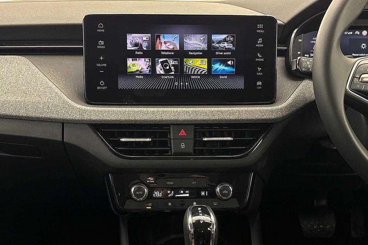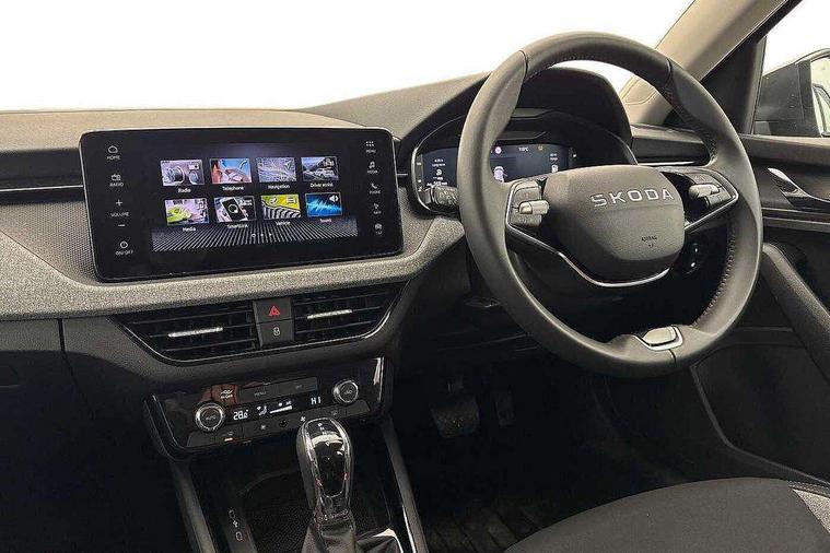 Advanced driver attention and drowsiness monitor, Bluetooth, e-Call (emergency call), Front assist system, PAS, Rear parking sensors, Rear view camera, Speed limiter, Tailgate, Traffic sign recognition, Virtual Cockpit - 10.25" digital display, Voice control system, Wireless smartlink, 4 USB C ports, 8 Speakers, 9.2" Skoda navigation display, DAB radio, Auto dimming rear view mirror, Automatic headlamp activation with Coming home and Leaving home feature, Automatic high/low beam, Body colour bumpers, Body colour door mirrors and handles, Chrome moulding around grille, Front and rear electric windows, Full LED headlights, Heated rear window, LED 3rd brake light, LED brake lights, LED daytime running lights, LED front turning lights, LED high beam, LED low beam, LED taillights, Rear LED fog light, Rear side wing doors, Rear wiper, Tinted windows, Unique dark chrome design logo on alloy wheels, 12V socket in luggage compartment, 3 seat bench in 2nd row, Black / Grey armrest stitching, Black hotstamping, Cargo elements, Chrome inner door handles, Door inserts in satin black, Driver and passenger sun visors with vanity mirror, Dual zone climate control, Front and rear roof lights, Front centre armrest, Front head restraints, Glasses storage in roof liner, Height adjustable driver seat, Height adjustable passenger seat, Ice scraper, Illuminated glove compartment, Inner circulation control with pollen filter, ISOFIX for front passenger seat, Isofix preparation for back seats, Leather gearknob and handbrake lever, Loft cloth upholstery, Luggage net under rear parcel shelf, Manual lumbar support for front seats, Net package and top tether hooks in boot space, Pearl grey ceiling, Pocket on the back of both front seats, incl. mobile phone pockets, Single front passenger seat, Skoda lettering on steering wheel, Textile floor mats, Third rear headrest, Ticket holder, Top tether for front passenger seat, Umbrella in driver's door, 3x3 point rear seatbelts, ABS, Child locks, Curtain airbags and front side airbags, Disc brakes, Driver and front passenger airbags, ESP, Hill hold control, Manual leather parking brake, One tone horn, Passenger airbag switch off function, Seatbelt reminder for driver and front passenger, Tyre pressure monitoring system, Anti theft alarm system with interior monitoring, backup horn and towing protection, Anti-theft wheel bolts, Remote central locking with 2 remote folding keys, SAFE function for remote central locking, Decord pad, door inserts Kota uni,