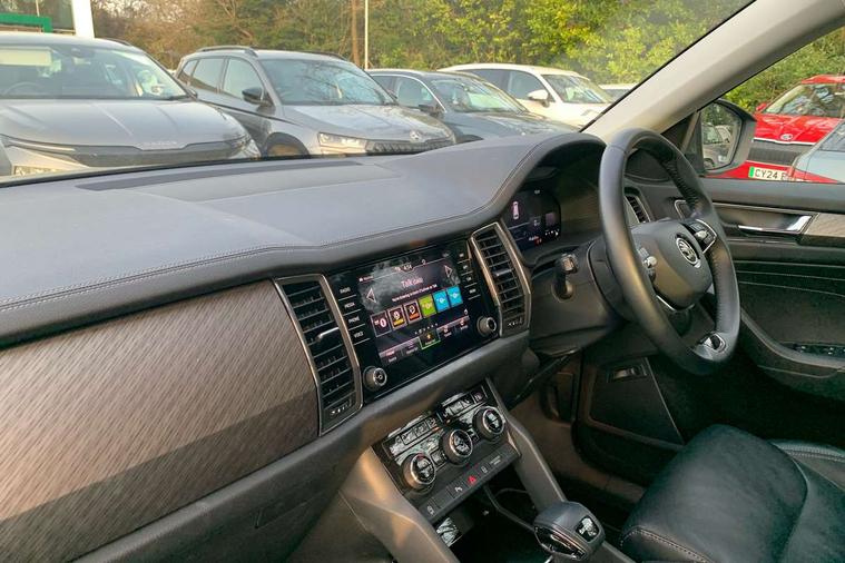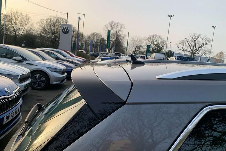 Bluetooth system, Digital voice enhancement, e call+, ECO Stop/start function, Exterior temperature indicator, Rear view camera, Smartlink wireless for apple carplay and wired for android auto, Speed limiter, Tailgate unlocking from outside, USB C Port x 2 in front centre console, Virtual Cockpit - 10.25" digital display, Wireless charging, 8 Speakers, DAB Digital radio, Aero front windscreen wipers with intermittent function, Aero rear window wiper, Auto dimming rear view mirror, Black wheel arch surrounds, Body colour bumpers, Body colour door mirrors and handles, Chrome front grille, Chrome roof rails with chrome window surround, Daytime running lights, Electric adjustable/heated/folding door mirrors, driver side auto dimming with boarding sports and memory function, Electric front and rear windows, Extended rear spoiler with finlets in gloss black, Front fog lights, Full LED matrix headlights with AFS (adaptive front light system), cornering function and AWL (all weather lighting system), Headlight washers, Heated rear window, Invisible tailpipe, LED rear fog light, LED third brake light in rear spoiler, Light assistant (coming/leaving home/tunnel light), Off-road style lower front bumper element, Privacy glass, Rain and light sensors, Rear LED lights (high functionality) with welcome effect and dynamic indicators, Rear side wing doors, Safety reflectors on front and rear doors, Window control switches with black trim, 12V socket in boot, 2 rails with 2 hooks, 2 seat bench in 3rd row, 3 seat bench in 2nd row, 4 foldable roof handles with rear coat hooks, 60:40 foldable rear seat with sliding adjustment and backrest angle adjustment, Bottle holders in door panel in the 1.5 litre front and 1 litre rear, Cargo storage compartments, Chrome headlight control button, Chrome interior door handles, Coat hooks on B pillar, Covered storage compartment on driver side, Decorative door sill covers, Front and rear door armrest with black adductor trim, Front centre armrest with storage compartment, cup holder and 12V socket, Front courtesy lights, Gear shift lever with chrome frame and black gloss insert, Grey stitching in front and rear armrests and door armrests + door inserts, Height adjustable front headrests, Illuminated and cooled glovebox, Illuminated luggage compartment, Isofix child seat fittings in outer rear seats with top tether, Manually adjustable steering column, Net programme in boot (1x horizontal Net, 2x vertical Nets), Overhead glasses storage compartment, Pollen filter, Rear centre armrest with cupholders, Single front passenger seat, Sliding trunk cover, Small Bags on the inner sides of the front backrests, Sunvisors with illuminated vanity mirrors, Three rear height adjustable headrests, Ticket holder on A Pillar, Umbrella in door panel, Variable boot floor, Auto door release and activation of warning lights in the event of an accident, Child locks on rear doors, Driver and front passenger airbag with knee airbag and front passenger airbag deactivation, Electronic parking brake with hill start assist, Emergency rear braking signal, ESC (incl. ABS+MSR+ASR+EDS+HBA+DSR+RBS+MKB), Front assist with autonomous emergency braking, Front side airbags with curtain airbags, Fuel cut off safety device, Height adjustable front 3 point seatbelts + pretensioners, Hill hold control, Rear disc brakes, Safety vest holder in door, Seat belt reminder for all seats, Three point rear seat belts, Two tone horn, Tyre pressure monitor, Alarm with interior monitoring and tilt sensor with safe function, Anti-theft wheel bolts, Immobiliser, Keyless entry and start system (KESSY), Remote central locking with 2 keys, Grey stitching in dashboard, Linear diamonds decorative inserts, Temporary spare wheel (space saver),