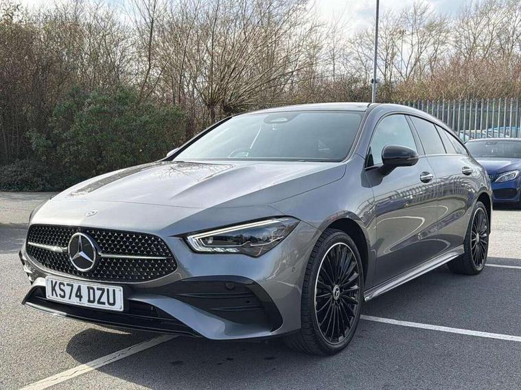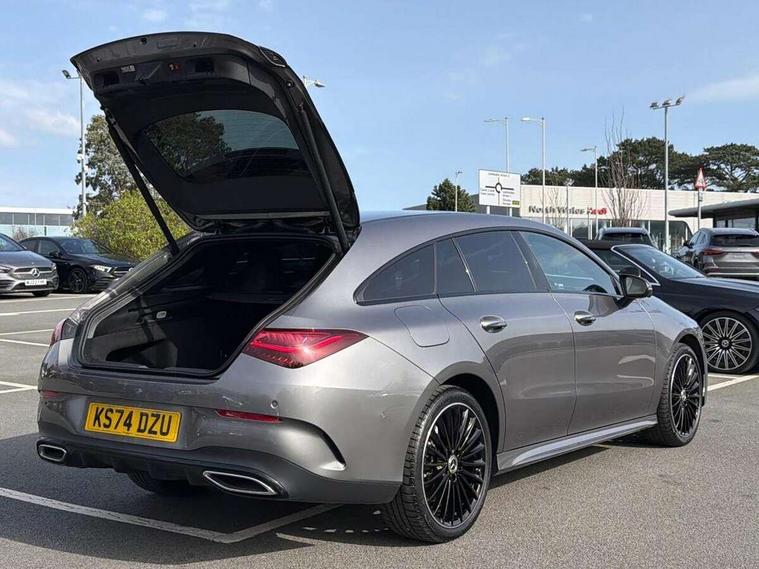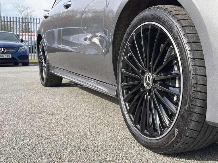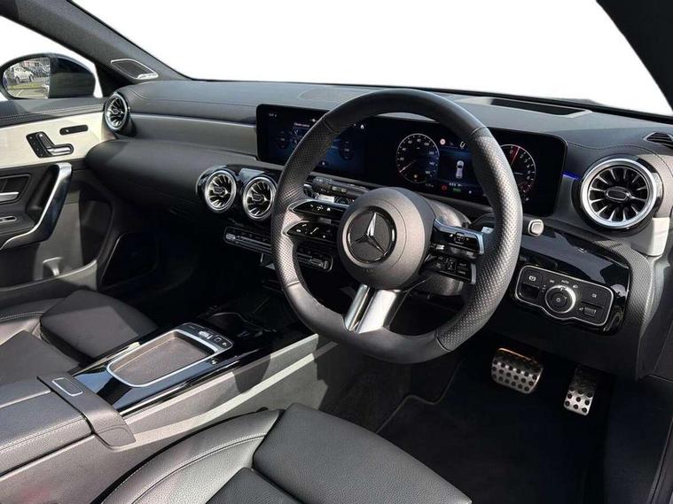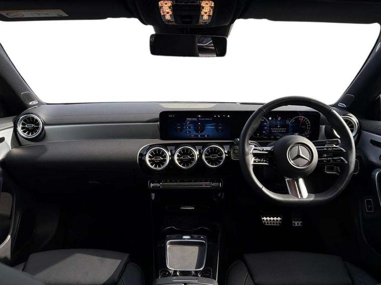 10.25 inch Instrument display with digital cockpit, 10.25 inch touchscreen central media display, Acoustic ambient protection, Active lane keeping assist, Attention assist - Monitors steering behaviour and long journey fatigue, Bluetooth connection, Car wash mode, Cruise control with limiter, Direct steer system, DYNAMIC SELECT with a choice of driving modes (ECO, Comfort, Sport and Individual), ECO start/stop function, Fingerprint sensor, Fluid level warning indicator for fuel, oil, coolant and washer fluid, Hard-disk navigation, Head up Display, Hey Mercedes Voice activation, Lamp failure indicator, MBUX augmented reality for navigation, Mercedes me connect including emergency call system, accident recovery, breakdown and maintenance management, Mercedes me remote and charging services plus, Outside temperature gauge, Owners manual in English, Pre-installation of private car share, Radio aerial integrated into front and rear windshields, Service indicator (ASSYST), Smartphone integration with Apple CarPlay and Android auto, Tailgate, Traffic sign assist, Trip computer in multifunction display with current consumption indicator, Wireless charging in the front centre console, Charging system - AC charging system rated at 11kW, Charging system - DC charging system rated at 22kW, Comfort suspension, Mode 3 charging cable for wallbox and public charging stations with 5m upto 11kW, Rear axle torsion beam, Burmester lettering on the speakers, Burmester surround sound system (710W) with dolby atmos, speakers - 1 central, 1 woofer, 1 tweeter, 1 subwoofer with 60W, 2 in C pillar, DAB digital radio tuner, MBUX multimedia system, Pre installation for Mercedes Benz Link, Adaptive brake lights, AMG body styling with AMG front apron and rear apron and visible exhaust tailpipe in chrome trim elements, Body colour door handles, Electric panoramic sunroof with automatic tilt and convenience closing fuinctions, rain sensor auto closing and electronic roller sunblind, Electric windows, Electrically adjustable and heated door mirrors with integrated LED indicators, Exhaust system with 2 Visible tailpipe trim elements and rear apron with trim in chrome, Hand free access, Headlamp assist automatic headlamp activation, Heated glass rear windscreen + timer control, High level LED third brake light, Integrated LED daytime running lights, Interior mirror with black reading lamps and frameless, LED tail lamp, Multibeam LED headlamps with adaptive highbeam assist plus, Privacy glass with dark tinting on rear side windows and rear window, Radiator grille with Mercedes-Benz pattern in chrome and central Mercedes star, single louvre in high-gloss black with chrome inserts, Rain sensing windscreen wipers with two sensitivity settings, Rear fog lamp, Rear side wing doors, Rear wiper, Variable front intermittent wipers, 3 seat bench in 2nd row, 3 twin spoke flattened multifunction steering wheel in nappa leather - horizontal twin spoke in high gloss black, vertical twin spoke in silver chrome, 40:20:40 split folding rear seat backrests, Air conditioning - Two zone thermotronic luxury automatic climate control with display, Air vents with surround in silver chrome, Automatic child seat recognition sensor, Black roof lining, Brushed stainless steel sports pedals with rubber studs, Charging socket, Electrically adjustable front memory seats including 4 way lumbar support, Floor mats with stitched AMG lettering, Fluorescent jacket, Front centre armrest with stowage, Galvanished gear shift paddles in silver chrome, Illuminated front door sills with Mercedes Benz lettering and changeable cover, Interior lighting - 64 colour Ambient lighting, Luggage net on driver/front passenger seat backrest, Manually height and reach adjustable steering column, Pre-entry climate control, Rear armrest with two integral cup holders for drinks, Rear head restraints, Single front passenger seat, Sport seats with fixed head restraints, Stowage compartment in centre console with retractable cover, Sunvisors with illuminated vanity mirrors, Twin front cupholders, Two outer rear seat isofix and top tether child seat fixing points, Drive parking assist pack with 360 degree camera - CLA, Keyless go comfort pack - CLA with easy pack tailgate, Light and sight pack - CLA, Mirror pack - CLA, Night package - CLA, Seat comfort pack - CLA, USB package plus - CLA, Winter pack - CLA, Active bonnet pedestrain safety measure which detects an impact and raises bonnet by 65mm, Adaptive brake assist with hold function and hill start assist, Anti lock braking system (ABS) with brake assist, Black seat belts, Bonnet with power domes, Brake calipers with Mercedes-Benz lettering, Brake pad wear warning indicator, Childproof locks manually operated for rear doors and electrically operated for rear power windows, Crash responsive emergency lighting, Driver and front passenger head and sidebags, Driver and front passenger windowbags, Drivers knee airbag, Dual stage driver and front passenger airbags, Electric parking brake, Electronic stability programme with acceleration skid control, ESP curve dynamic assist, Exit warning, Front and rear seatbelt reminder, Front passenger seat occupancy sensor, Perforated front brake discs, Radar-based recuperation, Sports braking system, Three point rear seat belts, Tyre pressure monitoring system, Warning triangle and first aid kit, Alarm system with immobiliser and interior protection -Thatcham category 1, Guard 360 deg vehicle protection - tow away protection with visual, acoustic warning, interior monitoring, preinstallation for parking damage, Remote central locking and crash sensor with emergency opening function, Light aluminium with longitudinal grain interior trim, 19" AMG multi-spoke black painted light alloy wheels with high sheen rim finish, Summer tyres, Tirefit tyre sealant kit,