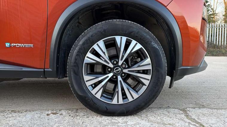 Android auto/Apple CarPlay (Wired), Blind spot warning, Drive modes (sport, normal, eco, snow, off-road), e-Pedal step, Electric speed sensitive power steering, Emergency and breakdown call, Front and rear parking sensors, Full Digital 12.3" TFT Digital Combimeter, Google maps services - search, weather, 3D maps and Google street view, Idle stop/start system, Intelligent around view monitor, Intelligent Cruise control (ICC), Intelligent driver alert system, Intelligent forward collision warning, Intelligent lane departure warning, Intelligent lane intervention, Intelligent lane keep assist, Maximum speed limiter, Moving object detection, Nissan connect 12.3 inch touchscreen infotainment system, Nissan connect nav with TomTom traffic, Push button starter, Rear cross traffic alert, Rear view camera, Remote control services - door locks, lights, horn and car locator, Telematics - notifications and connectivity services, TomTom live traffic services, Traffic sign recognition with legal speed adjustment, Trip computer, Virtual personal assistant and firmware over the air capability, Wireless apple carplay, 6 speakers, AM/FM audio system with DAB, Bluetooth audio streaming, Front USB connections (Type-A and Type-C), Rear USB charging only ports (Type-A and Type-C), 3rd brake light, Auto dimming rear view mirror, Auto rear wiper when reversing, Body colour mirror caps, Body coloured door handles, Bodyside mouldings, Chrome side window finisher, e-4ORCE badging, e-POWER badging, Electric auto folding door mirrors, Electrically adjustable and heated door mirrors, Follow me home headlights, Headlights auto levelling system, High beam assist, Intelligent auto headlights, LED daytime running lights, LED Headlights, LED rear lights, One touch front and rear electric windows with remote opening and closing, Partially body coloured bumpers, Rain sensing wipers, Rear privacy glass, Rear reversing light (bulb lighting), Rear roof spoiler, Rear side wing doors, Rear styling plate, Shark fin antenna, Splash free wipers, Super UV and infrared cut glass, Three blink turn signal, 12v power socket in dashboard and luggage, 3 bench rear seats in 2nd row, 3 rear headrests, 60/40 split folding rear seat bench, Butteryfly console, Chrome interior door handles, Cloth monoform upholstery, Driver and front passenger sunvisors with illuminated vanity mirrors, Driver seat back pocket, Dual zone automatic climate control with pollen filter, Front centre console and armrest, Front cupholders, Front door with bottle holders, Height adjustable driver's seat, Height adjustable front headrests, Height adjustable passenger seat, Leather shift knob, Leather steering wheel, Luggage board system, Luggage space lighting, Multifunction steering wheel, Passenger seat back pocket, Rear armrest with 2 cupholders, Rear door bottle holders, Single front passenger seat, Tilt/telescopic adjustable steering wheel, Two rear isofix child seat anchorage points with top tether, 3x3 point rear seatbelt pretensioners + load limiters, ABS with EBD and brake assist, Active brake limited slip, Auto hold function, Child locks on rear doors, Curtain and front side, far side airbags, Driver and passenger airbags, Driver, passenger and 2nd row rear seat belt reminder, Electronic parking brake, Front seatbelt pretensioners + load limiters, Height adjustable front seatbelts, Hill start assist, Intelligent blind spot intervention, Intelligent front emergency braking with pedestrian, cyclist recognition and junction assist, Intelligent rear automatic braking, Tyre pressure monitoring system, Vehicle dynamic control, Engine immobiliser, Intelligent Key, Remote central door locking with deadlocking, Thatcham Cat.1 alarm, 18" Diamond cut alloy wheels, Tyre puncture repair kit,