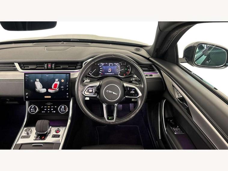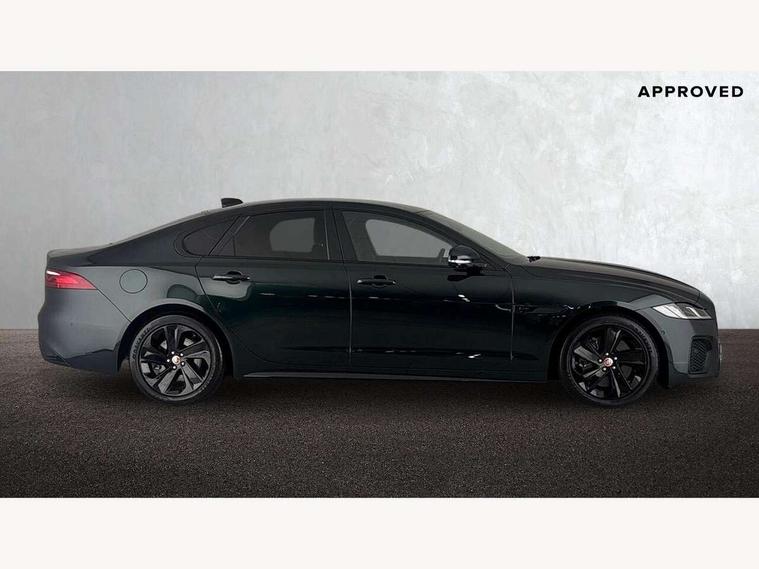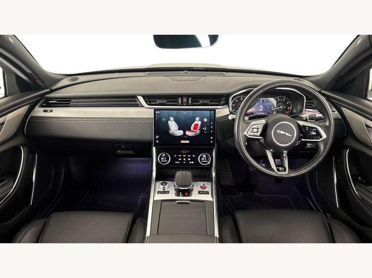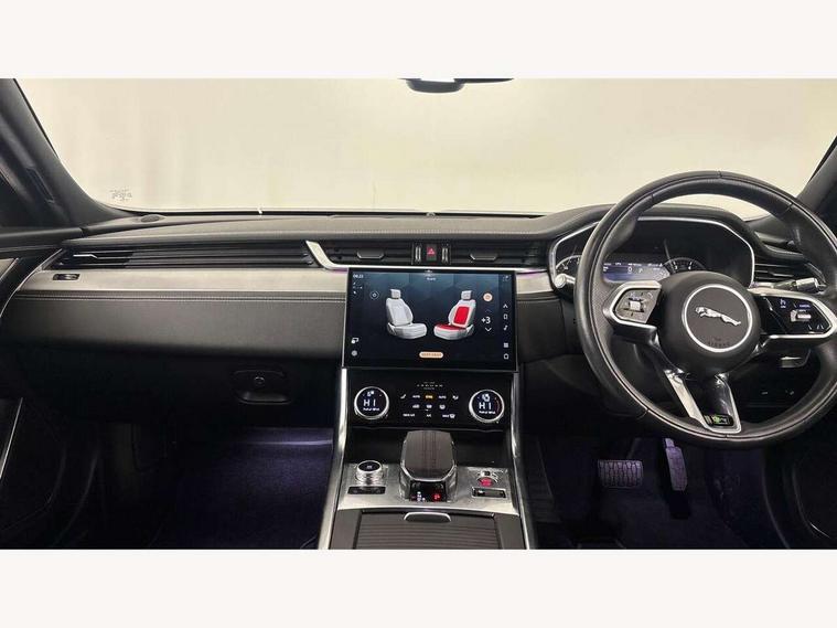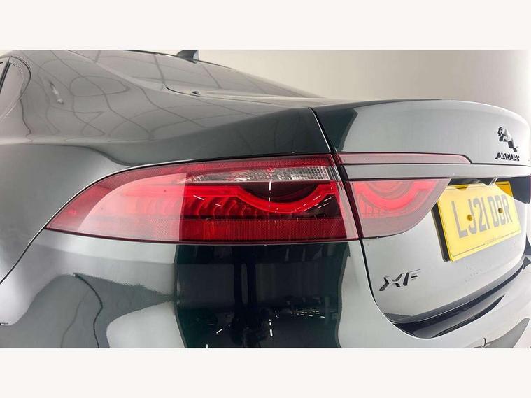 3D surround camera, Android Auto, Apple car play, Bluetooth connectivity, Driver condition monitor, Electric power assisted steering, JaguarDrive control, Lane keep assist includes oncoming vehicle detection and edge detection, Outside temperature gauge, Pivi pro connected navigation system with 11.4" touch screen, Power tailgate/boot lid, Push button starter, Service interval indicator, Speed proportional steering, Traffic sign recognition with adaptive speed limiter, Trip computer, DAB Radio (Digital Audio Broadcasting), Remote app, USB and auxiliary socket, Acoustic windscreen, Automatic headlights, Black lower front bumper hoops, Body colour door handles, Body colour door mirrors, Electric windows with one touch open/close and anti trap, Frameless auto dimming interior rear view mirror, Front bumper's lower chin and rear lower bumper is finished in gloss black, Heat insulated glass, Heated front windscreen, Heated washer jets, Jaguar script and leaper, LED tail lights, R Dynamic badge, Rain sensor windscreen wipers, Trailer stability assist, XF badge, 2nd row air vents, 3 rear seat head restraints, Cabin lighting - 10 colour configurable ambient, zone control, dynamic start-up sequence, Centre armrest console, Front armrest, Front door and rear door storage space, Interior front door handles with separate locking switches, ISOFIX on outer rear seats, Overhead stowage for sunglasses, Passive front head restraints, Premium carpet mats, R-Dynamic branded leather steering wheel, Rear armrest with twin cupholders, Sunvisors with illuminated vanity mirrors, Twin front cupholders, Online pack with data plan - XF, ABS+EBA, All surface progress control (ASPC), Brake pad warning light, DSC - Dynamic Stability Control, Electronic parking brake, Emergency brake assist, Front airbags with passenger seat occupant detector, Front side airbags, Full length side window curtain airbag, Hill launch assist, Pedestrian contact sensing, Power operated child locks, Seatbelt warning, Three 3 point rear seatbelts, Torque vectoring brake, Traction control, Tyre pressure monitoring system, Immobiliser, Locking wheel nuts, Perimeter alarm, Remote central locking with deadlocks and drive away locking,
