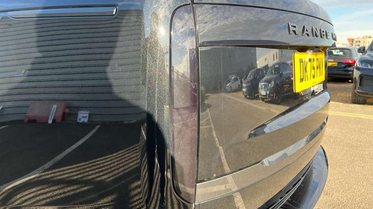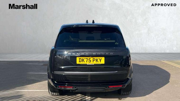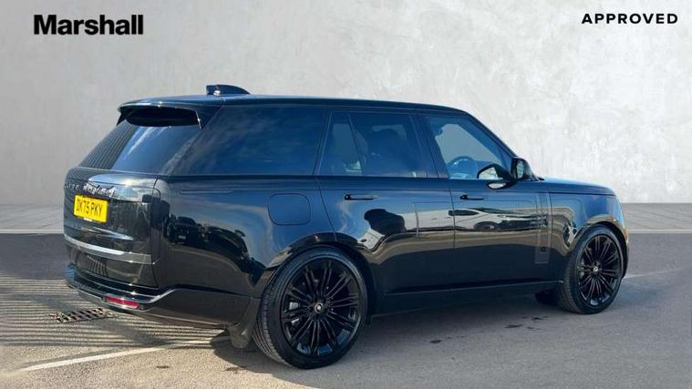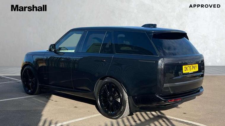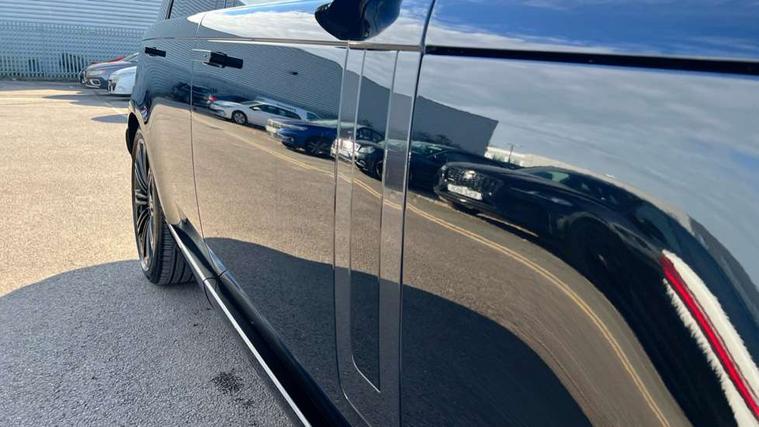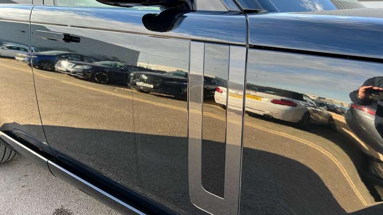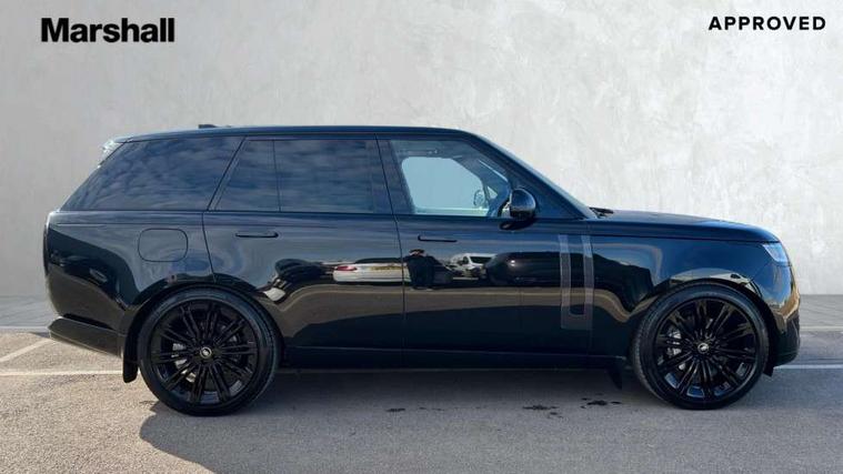 13.1" Touchscreen, 3D surround camera inc frwd traffic detection, vehicle clearance guidance, 3D view, clearsight ground view, manoevure light, 360 parking aid, wade sensing, Adaptive cruise control with steering assist, All Terrain Info Centre, All wheel steering, Android Auto, Apple car play, Blind spot assist, Bluetooth connectivity streaming, Driver condition response, Eco mode, Electric power assisted steering (EPAS), Emergency call service, Front and rear parking aid, Interactive driver display, Lane keep assist, Park assist, Powered upper and lower tailgate, Rear collision monitor, Rear traffic monitor, Remote, Traffic sign recognition with adaptive speed limiter, Wi-Fi Enabled with data plan, Wireless device charging with phone signal booster, 8 speed automatic transmission, Active damper technology system, Adaptive dynamics, All terrain progress control, All Wheel Drive (AWD), Automatic access height, Electronic air suspension, Open differential with torque vectoring by braking, Terrain Response 2 Auto, Twin speed transfer box, Digital Audio Broadcast radio-DAB, Meridian 400W sound system, No rear seat entertainment system, Pivi pro including smart settings, Connected navigation pro, nuance speech, USB socket, Acoustic laminated windscreen, Animated directional indicators, Auto dimming interior rear view mirror, Automatic headlights, Automatic levelling headlights, Body coloured roof, Centre high mounted stop light, Electric windows with one touch open/close and anti trap, Engine cover, Flush deployable exterior door handles, Front and rear recovery eyes, Front fog lights, Headlamp power wash, Heated rear window, Heated washer jets, Heated windscreen, Illuminated aluminum treadplates with Range Rover script, Laminated front and touchened rear side glass, LED tail lights, No badges, No towing, Pixel LED headlights with signature DRL, Power fold, auto-dimming, heated door mirrors with approach lights, Privacy glass, Rain sensing windscreen wipers, Rear boot, Rear fog lights, Rear side wing doors, Side repeater indicators in mirror, Sliding panoramic sunroof includes and auto sunblind, Trailer stability assist, Winter wiper park position, 12V power sockets, 20 way heated electric front seats with power recline heated rear seats, 3 seat bench in 2nd row, Air quality sensor, Bright metal pedals, Cabin lighting, Carpet mats, Centre console with armrest, Customer configurable single point entry, Driver and passenger front seat armrests, Easy boot loading, Ebony Carpet, Ebony morzine headlining, Extended leather upgrade, Front and rear cupholders, Front and rear grab handles, Front head restraints, Gearshift paddles, Heated steering wheel, Hook in load space, Loadspace cover, Loadspace light, Luggage tie down in loadspace, Multifunction steering wheel, Perforated Windsor leather upholstery, Rear centre armrest, Rear head restraints, Rear ISOFIX, Single front passenger seat, Soft close doors, Soft grain leather steering wheel, Sunvisor dual driver and single passenger, Three zone climate control, Upper and lower glovebox, Non-smoker package, Online pack with data plan - Range Rover, Shadow exterior pack - Range Rover, 3x3 point rear seat belts, Anti-lock braking system (ABS), Black brake calipers, Brake hold function, Cornering brake control (CBC), Customer configurable autolock, DSC - Dynamic Stability Control, Electronic brake force distribution, Electronic parking brake, Electronic traction control, Emergency braking, Front airbags with passenger seat occupant detector, Front side airbags, Hill descent control, Hill launch assist, Low traction launch, Occupant protection assist, Power operated child locks, Roll stability control, Tyre pressure monitoring system (TPMS), Immobiliser, Intrusion sensor and alarm, Keyless entry, Locking wheel nuts, Remote central locking, Secure tracker pro, Gloss grand black veneer, Noble chrome controls, 23" Gloss black alloy wheels - Style 1075, Reduced section alloy spare wheel,