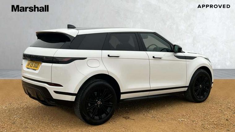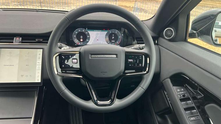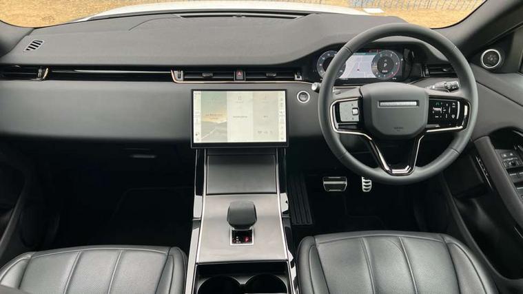 11.4" touch screen, 3D 360 degree surround camera with wade sensing, Adaptive cruise control, Android Auto, Apple car play, Blind spot assist, Bluetooth connectivity, Brake pad wear indicator warning light, Driver condition monitor, eCall emergency system, Eco mode, Electronic power assisted steering (EPAS), Front and rear parking aid, InControl remote, Interactive driver display, Land Rover InControl apps, Lane keep assist, Pivi pro connected includes diamond pivi variant, smart settings, connected navigation pro, nuance speech licence, Powered tailgate/boot lid, Rear collision monitor, Rear traffic monitor, Tailgate, Traffic sign recognition with adaptive speed limiter, Voice control system, Wireless device charging, All terrain progress control, Diesel exhaust fluid (DEF) large tank, Efficient Driveline, Large fuel tank, Terrain Response 2, Digital Audio Broadcast radio-DAB, Steering wheel mounted controls, Acoustic laminated windscreen, Auto headlights, Auto high beam assist, Automatic headlight levelling, Electric windows with one touch open/close and anti trap, Flush deployable exterior door handles, Front and rear recovery eyes, Heated rear window with timer, Heated washer jets, Heated windscreen, LED headlights with signature DRL and LED tail Lights, Power fold, auto-dimming, heated door mirrors with approach lights and auto dimming driver side, Rain sensing windscreen wipers, Rear animated directional indicators, Rear fog lights, Rear side wing doors, Rear wiper, Side repeater indicators in mirror, Tailgate spoiler, Third brake light, Winter wiper park position, 12 way driver memory and 10 way passenger electric front seats with 2 way manual headrest + 4 way lumbar support, 40:20:40 split folding rear seats with centre headrest and armrest, Ambient interior lighting, Bright metal pedals, Carpet mats, Chrome tread plates with range rover branding Includes stainless steel loadspace scuff plate with etched graphic, Customer configurable single point entry, Front and rear cupholders, Heated front seats, Heated steering wheel, Isofix system on outer rear seats, Manually adjustable steering column, Overhead lighting console, Overhead stowage for sunglasses, Passive front head restraints, Rear air vents, Rear head restraints, Satin chrome gearshift paddles, SE Grained leather upholstery, Single passenger seat, Standard steering wheel with Moonlight Bezel, Sunvisors with illuminated vanity mirrors, Twin sliding front centre armrest, Power socket pack 2 - Evoque, 3 rear 3 point seatbelts, Anti-lock braking system (ABS), Brake hold function, Customer configurable autolock, DSC - Dynamic Stability Control, Electronic brake force distribution, Electronic parking brake, Electronic traction control, Emergency braking, Front and rear seatbelt reminder, Hill descent control, Hill launch assist, Low traction launch, Occupant protection assist, Passenger seat occupant detector, Power operated child locks, Roll stability control, Six airbags - Driver and passenger airbags/driver knee airbag/front side airbag and curtain airbags, Torque vectoring brake, Tyre pressure monitoring system, Alarm, Immobiliser, Intrusion sensor, Keyless entry, Locking wheel nuts, All season tyres,