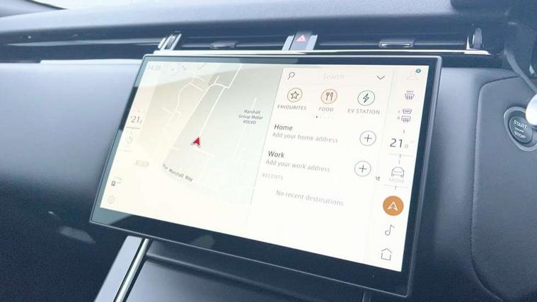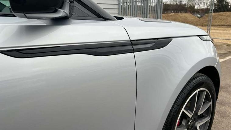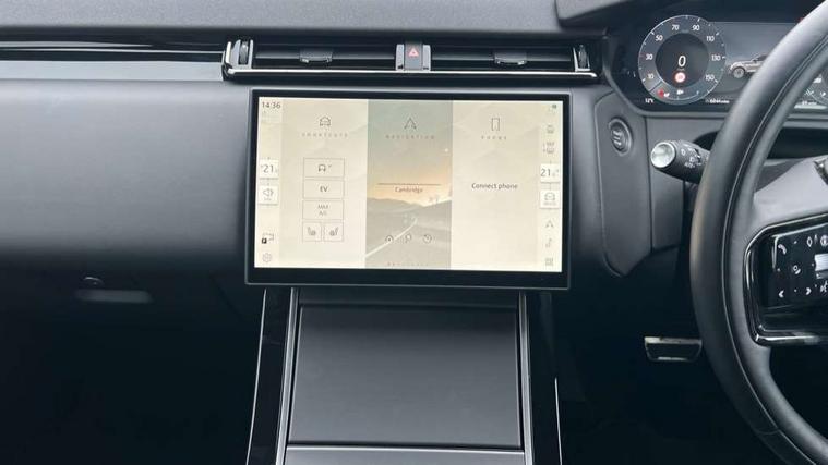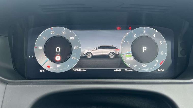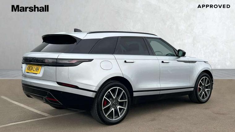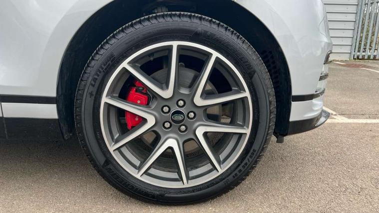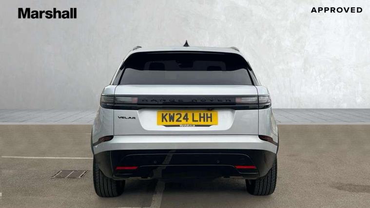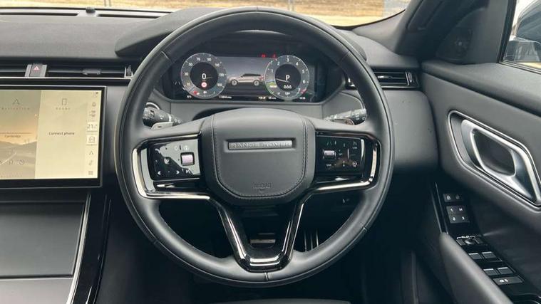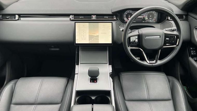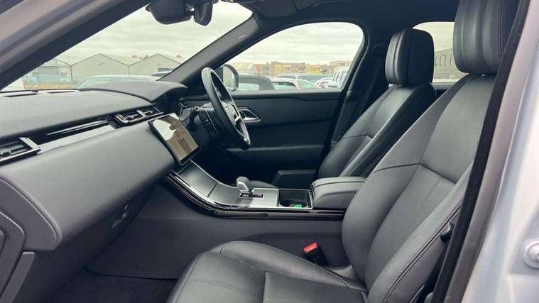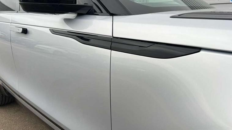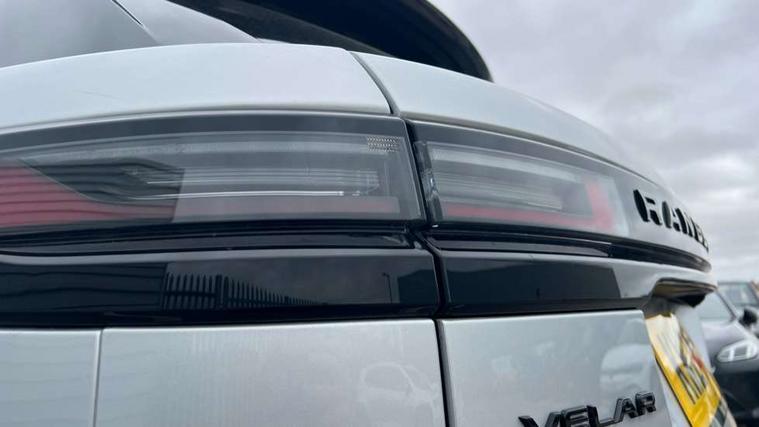 Adaptive cruise control with steering assist, Android Auto, Apple CarPlay, Blind spot assist, Bluetooth connectivity, Brake pad wear indicator warning light, Driver condition monitor, eCall emergency call system, Front and rear parking aid, InControl remote, Land Rover InControl apps, Lane keep assist, Pivi pro with connected navigation, Rear collision monitor, Rear traffic monitor, Service indicator, Speed proportional electronic power assisted steering (EPAS), Traffic sign recognition with adaptive speed limiter, Trip computer, Voice control system, Wireless device charging, 7kw on board charger, 8 speed automatic transmission, AC/DC charging, Adaptive dynamics, All terrain progress control, Coil suspension system, Home charging cable, Open differential with torque vectoring by braking, Public charging cable, Single speed transfer box, DAB radio, Steering wheel mounted controls, 3rd brake light, Acoustic laminated windscreen, Auto dimming interior rear view mirror, Automatic headlamp levelling, Automatic headlights, Body coloured bumpers, Boot protection plate, Electric windows with one touch open/close and anti trap, Flush deployable exterior door handles, Follow me home headlights, Heated rear window with timer, Heated washer jets, Heated windscreen, Metal front tread plates, Metal load space scuff plates, Pixel LED headlights with signature DRL, Power fold, auto-dimming, heated door mirrors with memory and approach lights, Rain sensor windscreen wipers, Rear animated directional indicators, Rear fog lights, Rear side wing doors, Rear wash/wipe, Tailgate/boot lid spoiler, Trailer stability assist, Velar badge, 3 seat bench in 2nd row, Ambient lighting, Bright metal pedals, Carpet mats, Driver/passenger sunvisors with illuminated vanity mirrors, Ebony morzine headlining, Electrically adjustable steering column, Extended leather upgrade, Heated steering wheel, Isofix system on outer rear seats, Loadspace cover, Overhead lighting console, Overhead stowage for sunglasses, Passive front headrests, Rear air vents, Rear centre headrest, Single front passenger seat, Twin front cupholders, Twin sliding front centre armrest, Online pack with data plan - Velar, Power socket pack 2 - Velar, 380mm front brakes and 325mm rear brakes, 3x3 point rear seatbelts, Anti-lock braking system (ABS), Cornering brake control, Curtain airbags, Customer configurable autolock, Door side intrusion beams, Driver airbag, DSC - Dynamic Stability Control, Electronic brake force distribution, Electronic parking brake, Electronic traction control, Emergency braking, Front and rear seatbelt reminder, Hill descent control, Hill launch assist, Low traction launch, Passenger airbag, Power operated child locks, Rear airbags, Roll stability control, Side airbags, Tyre pressure monitoring system (TPMS), Unpainted brake calipers, Global lock and unlock switch on driver door, Immobiliser, Intrusion sensor, Keyless entry, Lock only switch on front passenger door, Locking wheel nuts, Perimetric alarm, Remote central locking, All season tyres,