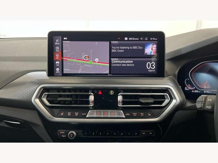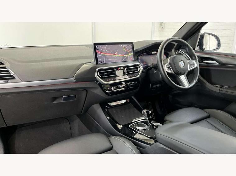 Active Guard, Attentiveness assist, BMW Live Cockpit Professional nav system including 12.3" instrument display + 12.3 high resolution control display, BMW Online services, BMW Teleservices, Brake pad wear indicator in front and rear, Check Control warning system for monitoring of lights and door/luggage compartment open warning, Condition based service - BMW service history, electronic service booklet, integrated owner's handbook, Connected drive services, Electric boot lid, Front/rear Parking distance control, iDrive touch controller with 8 favourite buttons, Instrument cluster with speedometer with mph readout, tachometer, fuel gauge and oil temperature gauge, Lights on warning by audio warning signal when ignition is switched off, Oil sensor for level and grade, warning by check control system, On board computer - average speed+fuel consumption, service interval, clock/date, odometer/trip meter, outside temperature display and ice warning, Optimum shift indicator, Personal Profile - automatic lock when driving away selectable, Run flat indicator, Stop/start system, Variable sports power steering with drive performance control Sport+ mode, Automatic transmission with gearshift paddles, Diesel particulate filter, Incorrect fuelling protection, Larger capacity fuel tank, M sport suspension, Multi-link rear suspension, BMW professional radio/CD/MP3, DAB tuner, Acoustic glazing, Automatic windscreen wipers and automatic headlight, Black finish on B pillars, Body colour door handles, Body colour electric adjust heated aspherical door mirrors, Body colour roof mouldings, Body coloured bumpers, Direction indicator, side repeaters, integrated in exterior mirrors, Dynamic brake lights, Exhaust tailpipes - dual, round, split left and right with chrome finisher, Fingertip control / anti-trap function on electric window, Folding wing mirrors with auto dimming, Follow me home headlights, Front and rear bumper system with replaceable deformation elements, Front and rear electric windows, Gloss chrome tailpipes finishers, Green tinted heat insulating glass, Heated windscreen washer jets, High beam assistant, High gloss black shadow line roof rails, High gloss shadowline exterior trim in decorative moulding side frame/recess cover/guide rail/B, C pillars/mirror frame and triangle with mirror base, High level 3rd brake light incorporating LED Technology, Interior rear view electrochromatic mirror with automatic anti dazzle function, LED tail lights, Lightweight engineering, M aerodynamic bodystyling, M Sport entry door sill strips, Model designation, Rain sensor, Rear side wing doors, Rear wing door, Rear wiper, Shark fin antenna, Side exterior M designation badges, Visible VIN plate, Welcome lighting, Windscreen wipers with adjustable interval, 12V power point in luggage area, 12V power socket in front centre console, 2 x USB Type C ports for charging and data transmission (front centre console) and 2 x USB Type C ports for charging (rear centre console), 3 rear headrests, 3 seat bench in 2nd row, 3 zone automatic air conditioning, 4 lashing points to secure luggage, 40:20:40 split folding rear seat with loading system, Ambient lighting, Anthracite headlining, Automatic interior light when door is opened/ignition switched off or via remote key, Floor mats in velour, Foldable storage floor with compartment, Four grab handles integrated in roof lining, Front and rear bottle holders integrated into door trim storage compartments, Front and rear side armrests integrated into door trim, Front centre armrest with storage compartment, Front footwell lights, Front head restraints, Front passenger seat, Front sports seats, Front/rear courtesy lights with soft on/off dimming, Front/rear reading lights, Heated front seats, Isofix rear child seat preparation, Leather gear knob, Lockable glove compartment, Luggage area underfloor compartment, Luggage compartment lighting, M sport leather steering wheel, Multifunction steering wheel, Parcel shelf removeable and storable under boot floor, Reach and rake adjustable steering column, Rear centre armrest with 2 cupholders, Removable / retractable luggage cover, Slope adjustable rear seats, Storage compartment in rear centre console and front/rear door trims, Sun visors with vanity mirrors and ticket pocket, Toolkit located in luggage compartment, Two front cupholders with removable oddments tray/lid, Connected pro pack - X3, ADB - Automatic Differential Brake, Anti-lock braking system (ABS) with brake assist, Automatic Stability Control (ASC), Battery safety cut-off, BMW emergency call, Brake drying, Brake energy regeneration, Braking pre-tensioning, Child locks on rear doors, Cornering brake control (CBC), Crash Sensor - activation of central locking release, hazard warning light and interior lighting, Deactivation of fuel pump in the event of a crash, Driver and front passenger front and side airbags with passenger deactivation and ITS front and rear head airbags, Driver and front passenger knee airbag, DSC+, Dynamic brake control, Dynamic Traction Control - DTC, Electromechanical parking brake, Hill descent control, Hill start assist, Seatbelt security check for front seats, Side impact protection, Three point seatbelts to all seats with front and outer rear pyrotechnic belt tensioners and seat belt force limiters, Two tone horn, Tyre pressure sensor, Ventilated front and rear disc brakes, Warning triangle and first aid kit, Central locking switch for all doors, fuel filler cap and luggage compartment, Electronic engine immobiliser, Locking wheel nuts, Remote control including two integrated key - one button for open/close all lockable content, windows and separate button for open luggage compartment, Remote control Thatcham category 1 alarm, Start/stop button with Comfort Go keyless engine start and auto Start/stop deactivation button, Low rolling resistance tyres,