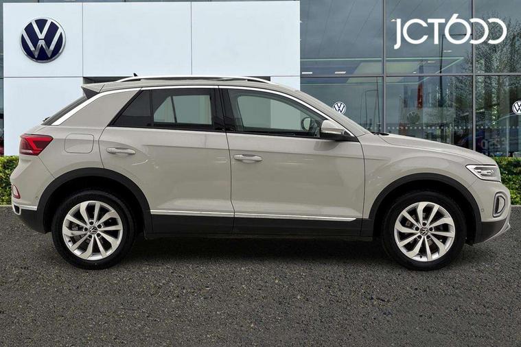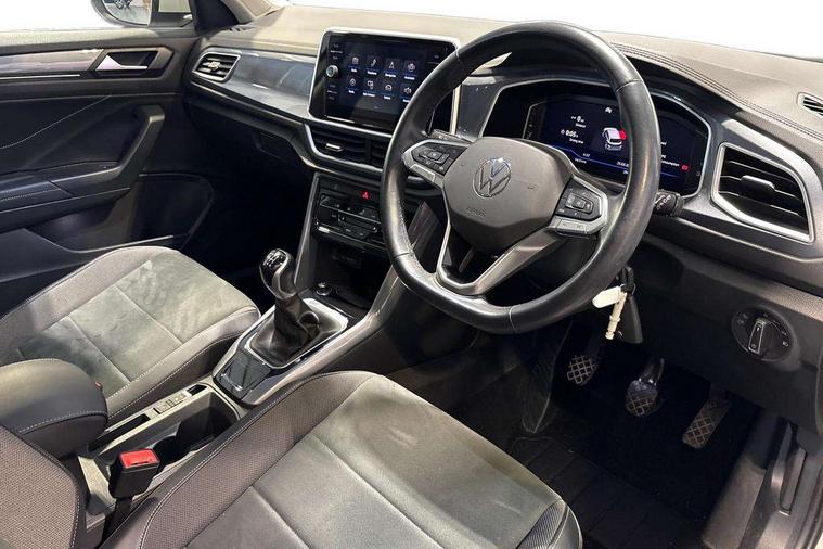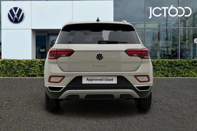 10.25" Digital cockpit pro, Bluetooth mobile phone interface, Driver alert system with fatigue detection, Driver tips and journey analysis, Dynamic road sign display, Emergency call service, Lane keeping system Lane Assist, Modified key software - reduce switch off time for key status change to Long no motion, Online services, Park assist including front and rear parking sensors, Power assisted speed sensitive steering, Service interval indicator, Tailgate/trunk lid release from outside, Think blue trainer driver tips and journey analysis, Warning sound and light for front seatbelts unfastened, Wireless app connect, Battery regeneration during braking, Front shock absorption, Rear shock absorption chassis with increased ride height, Start/stop function with battery regeneration, Diversity antenna for FM reception, Music playback - MP3, WMA and AAC files, Premium USB cable in choice of either Apple or Android smartphone compatibility, SD card slot, Simultaneous pairing of 2 compatible mobile devices, Title and cover art display, We Connect and We Connect Plus functionality, 3rd brake light, Auto dimming interior rear view mirror, Automatic hazard lights activation under emergency braking, Automatic headlight control with LED separate daytime running lights with coming/leaving home function, Body colour sports bumpers with silver metallic underbody fascia, Dynamic headlight range control with self adjusting whilst driving, Extended roof spoiler, Exterior mirrors aspherical on driver side, convex on front passenger side, External USB type C socket and charging sockets, Front windscreen wiper with intermittent wipe and 4 position delay, Heated rear window, LED rear combination lamps, LED rear number plate lights, LED tail lamp rear comination lamps, Light mode for poor weather, rain, fog or snow, Power windows with comfort operation and circuit breaker, Rain sensor, Rear exhaust tailpipe, Rear fog light on one side and reversing lights on both sides, Rear side wing doors, Rear wash/wipe with intermittent wipe setting, Remote electrically foldable door mirrors, puddle lights and reverse activated passenger's door mirror, 12V power socket in centre console, 3 rear head restraints, 3 seat bench in 2nd row, 4 load lashing points in luggage compartment, Air care climatronic air conditoning system with active combination filter and 2-zone temperature control, Chrome plated radiator grille inserts, air vent surrounds and light switch surrounds, Door and side trim panel with leatherette insert, Drawer under drivers seat, Front + rear carpet mats, Front centre armrest, Front comfort sports seats, Front cupholders x 2, Front footwell illumination, Instrument lighting, white adjustable panel illumination, Interior ambient lighting and surround lighting, Interior light delay, Isofix child seat preparation, Leather gearshift handle, LED interior light with switch off delay/dimmer and 2 front/rear LED reading lights, Load-through provision with cup holder when folded down ('Unsplit rear seat bench, split folding backrest, with centre armrest), Luggage compartment lighting, Non-folding front passenger seat backrest, Single front passenger seat, Storage compartment in left and right luggage area, Storage compartment in rear doors, Storage compartments in driver and front passenger doors, Sunvisors with illuminated vanity mirrors, Variable boot floor, height adjustable and removable, Driver assistance pack without proactive passenger protection - T-Roc, 3 point height adj front seatbelts + pretensioners, 3 point seatbelts in outer rear with ECE label, ABS, Child locks on rear doors, Driver and front passenger airbag with front passenger airbag deactivation, Driver and front passenger safety-optimised head restraints, Drivers seatbelt reminder, Electronic parking brake, Electronic Stability Control (ESC) inc EDL (Electronic Differential Lock) and ASR (Traction Control), Front and rear passengers curtain airbag system including front side airbags, Front assist with city emergency braking and pedestrian monitoring, Front disc brakes, Front seat side impact airbags, Predictive pedestrian protection, Rear disc brakes, Single tone horn, Tyre pressure loss indicator, Volkswagen roadside assistance, Anti-theft alarm system with interior monitoring, backup horn, and towing protection, Remote central locking with SAFELOCK, radio remote control with 2 remote control folding keys, Trims for alloy wheels,