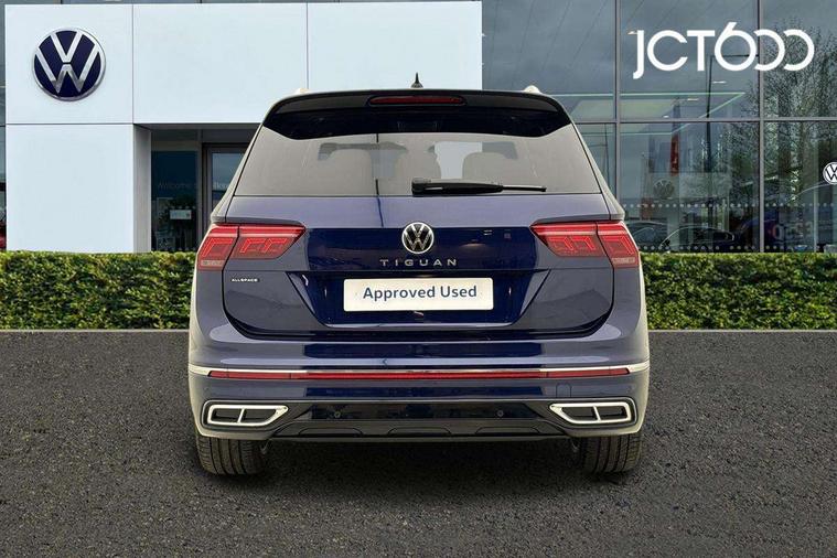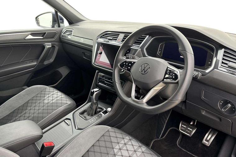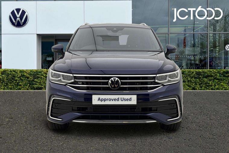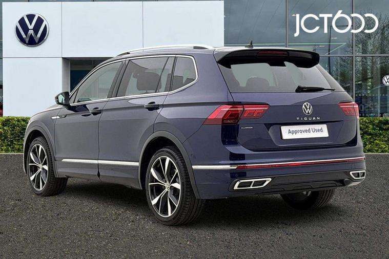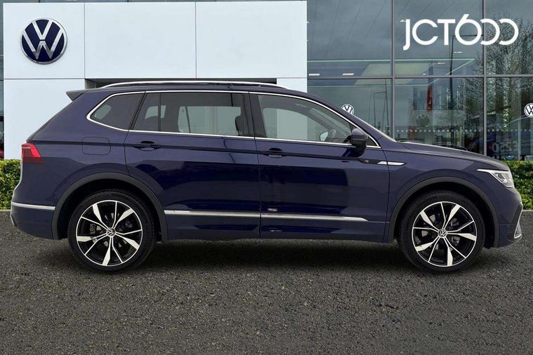 Adaptive cruise control, Advanced driver attention and drowsiness monitor, App-Connect, Digital cockpit pro, Driver profile selection, eCall emergency call service, Electric boot lid, Lane change assist, Lane keeping system Lane Assist, Mobile phone interface comfort with inductive charging feature, Multifunction front facing camera, Progressive steering, Speedo and rev counter, electronic odometer, trip, service interval display and exterior temperature gauge, Front wheel drive, Start-stop system with battery regeneration (recuperation - energy recovery during braking), 2 USB-C ports in the front, 1 USB-C charging socket on the center console in the rear, DAB Digital radio, Diversity antenna for FM reception, Auto dimming interior rear view mirror, Automatic headlight control system, Chrome mouldings on side window, Coming/leaving home lighting function, Exterior badge deletion, Rain sensor, Rear fog light, Rear side wing doors, Rear spoiler in R style, Rear wiper, Silver roof rails, Third brake light, 12-volt outlet in centre console rear and luggage compartment, 12V socket in centre console, 3 head restraints in rear, 3 individual folding 2nd row seats, 3rd row 2 individual seats, Air Care Climatronic 3 zone automatic climate control with enhanced air filter and controls in the rear, Black roof lining, Door and side trim panel with leatherette insert, Drawers under front seats, Driver + front passenger lumbar support, Driver and front passenger seat height adjustment, Foldable front passenger seat backrest, Front + rear carpet mats, Front centre armrest, Front footwell illumination, Illuminated scuff plates, ISOFIX anchorage points for mounting 2 child seats on rear seats and i-Size child seats, Leather gearshift handle, Leather wrapped multi function sports steering wheel with touch control and shifting paddles, LED interior light with switch off delay/dimmer and 2 front/rear LED reading lights, Stainless steel pedals, Sun visors with illuminated vanity mirrors, Top comfort sports seats in front with 'R' Logo, Ambience pack - Tiguan Allspace R Line, Driver assistance plus package - Tiguan Allspace, Park assist pack - Tiguan Allspace, 3 point seat belt for centre rear seat, 3 rear three point seatbelts, ABS+EBD+Brake assist, Driver and front passenger safety-optimised head restraints, Driver's and front passenger's airbag with front passenger's airbag deactivation switch, Electronic parking brake, Electronic Stability Control (ESC) inc EDL (Electronic Differential Lock) and ASR (Traction Control), Height adjustable front 3 point seatbelts + pretensioners, Manual rear child locks, Pedestrian monitoring, Rear disc brakes, Side airbag in front and rear with curtain airbag, Two tone horn, Warning buzzer for seatbelts if unfastened, Anti theft alarm system with interior monitoring, backup horn and towing protection, Anti-theft wheel bolts, Remote central locking with 2 remote folding keys,