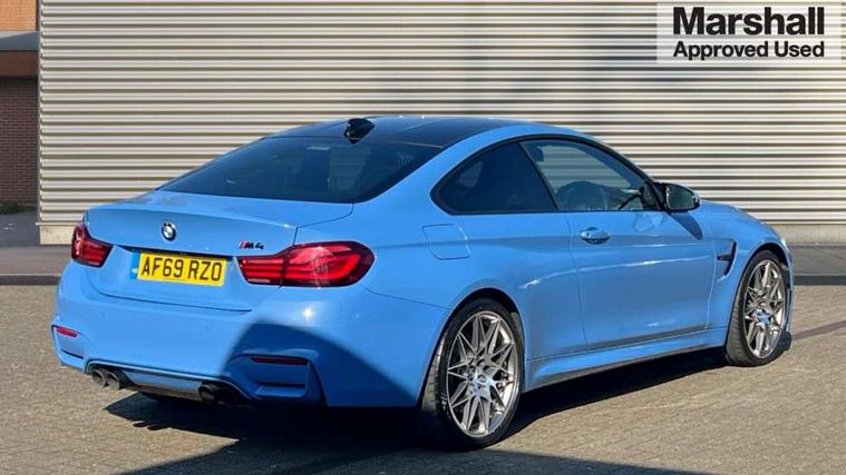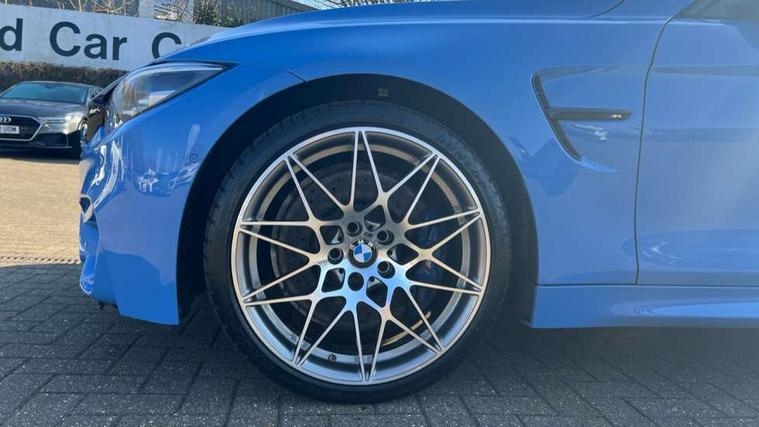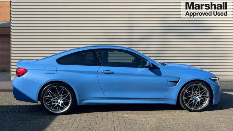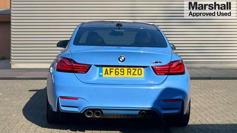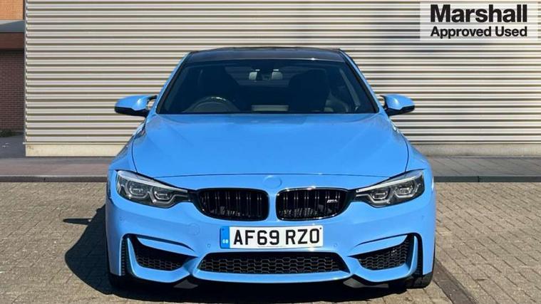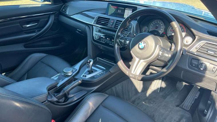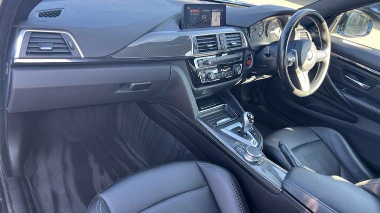 BMW service history, Brake pad wear indicator warning light, Check Control warning system for monitoring of lights and door/luggage compartment open warning, Condition based service, Controller and Control Display+8.8" monitor, Cruise control with brake assist, Electric Power Steering (EPS) with Servotronic, Enhanced bluetooth with wireless charging, iDrive touch controller with shortcut buttons, Instrument cluster with speedometer with miles per hour read out, tachometer and fuel gauge, Integrated owner's handbook, Lights on warning by audio warning signal when ignition is switched off, M drive manager for individual set up, Oil temperature gauge, On-Board Computer (OBC) comprising: average speed, average and current fuel consumption, and range, outside temperature display with acoustic warning, Optimum shift indicator, Service interval indicator, Wireless charging cradle in front centre armrest storage compartment, Adaptive M Sport suspension, Aluminium front suspension, Drive Performance Control, Five link rear suspension, M differential lock, 8 programmable favourite buttons, Auxiliary point for auxiliary devices, Bluetooth audio streaming, BMW professional radio/CD/MP3, DAB Digital radio, Electronic service booklet, Wi-Fi hot spot, Air breather, Auto dimming rear view mirror, Body colour bumpers, Body colour door handles, Body colour door mirrors, Carbon fibre reinforced plastic roof, Daytime running lights, Direction indicator, side repeaters, integrated in exterior mirrors, Door sill finishers, Dynamic brake lights, Electric adjustable heated door mirrors, Electric front and rear windows with fingertip open/close + anti-trap facility and comfort closing function, Exterior mirrors - electrically folding with anti-dazzle, Follow me home headlights, Green tinted heat insulating glass, Headlight beam throw control, Heated windscreen washer jets, High gloss black kidney grille, High gloss black M side strakes, High level third brake light, Illuminated M badge and model name with black high-gloss surround, Individual high gloss shadow line, LED direction indicator lenses, LED eyebrow light, M aerodynamic bodystyling, M rear spoiler integrated bootlid, M Sport exhaust finish with black chrome tailpipe finishers, Rain sensor including auto headlights activation, Shark fin antenna, Two part LED tailights in L-shape with components in smoked glass, brake light, LED turn indicator and rear fog light, Two speed adjustable intervals windscreen wipers, Visible VIN plate, Welcome lighting, 12V sockets in front centre console and passenger footwell, 3 spoke leather M sport multifunction sports steering wheel, 4 grab handles, Anthracite headlining, Armrest front sliding with folding storage compartment, Driver and front passenger seat heating, Dual zone climate control, Electrically adjustable front seats - driver seat with memory, Front and rear bottle holders integrated into door trim storage compartments, Front and rear side armrest integrated into door trim, Front interior light, Front seat backrest width adjustment, Full black panel display, Gearshift lever with M designation, Glovebox with lid, Integrated rear head restraints, ISOFIX child seat preparation+airbag deactivation, Lashing eyelets in boot, Leather gear and handbrake lever, Lightweight M sport seats with breakthrough elements in the seat back, Luggage compartment lighting, M specific running gear, M specific seats for driver and passenger lightweight construction with integrated headrests, M-specific rear seats with integrated two headrests, Reach + rake adjustable steering column, Rear backrest foldable and dividable 60:40, Storage compartment in rear centre console, Sunvisors with illuminated vanity mirrors and ticket pocket, Toolkit located in luggage compartment, Two front cupholders with removable oddments tray/lid, Velour floormats, Extended lights package - M Series, Media pack - Professional - M4, ABS/EBD, Automatic Stability Control (ASC), Battery safety cut-off, Brake assist, Brake drying, Brake energy regeneration, Braking pre-tensioning, Childproof rear door locks, Compound brake discs - inner vented, Cornering brake control (CBC), Crash Sensor - activates hazard/interior lighting + unlocks doors, Driver/Front Passenger airbags, DSC+, Dynamic brake control, Dynamic Traction Control - DTC, Front passenger airbag deactivation, Front pyrotechnic belt tensioners and belt force limiter, rear coaded belt buckles, Front side airbags, Hill start assist, ITS head airbags for front/rear, M dynamic mode, M sport seatbelt, Seat belt security check for driver, Side impact protection, Twin horns, Tyre pressure monitor, Warning triangle and first aid kit, Automatic drive away locking facility, Central locking switch for all doors, fuel filler cap and luggage compartment, Electronic immobiliser, Keyless start, Remote central locking, Remote control including integrated key with inset in chrome two, Remote control Thatcham category 1 alarm, Start/stop button with Comfort Go keyless engine start and auto Start/stop deactivation button, M mobility system (flat-tyre repair system),