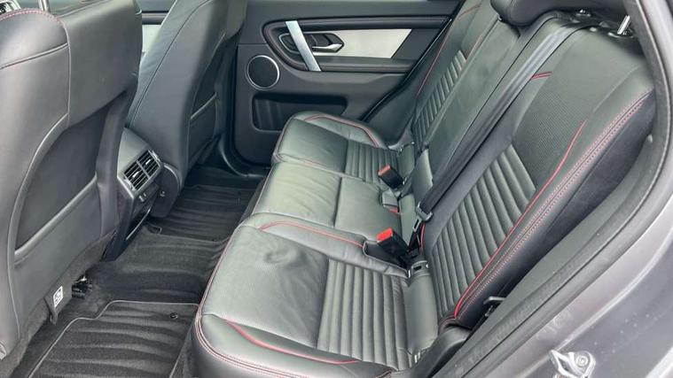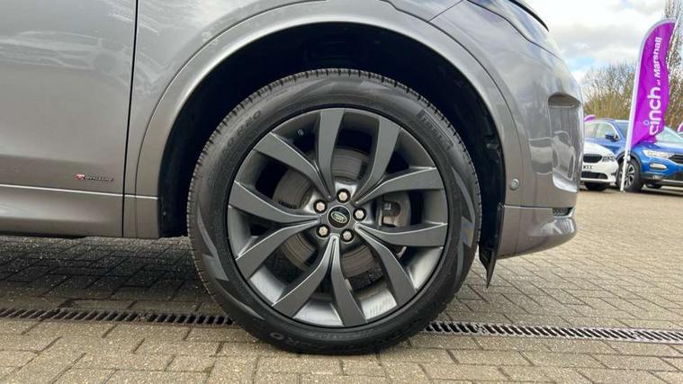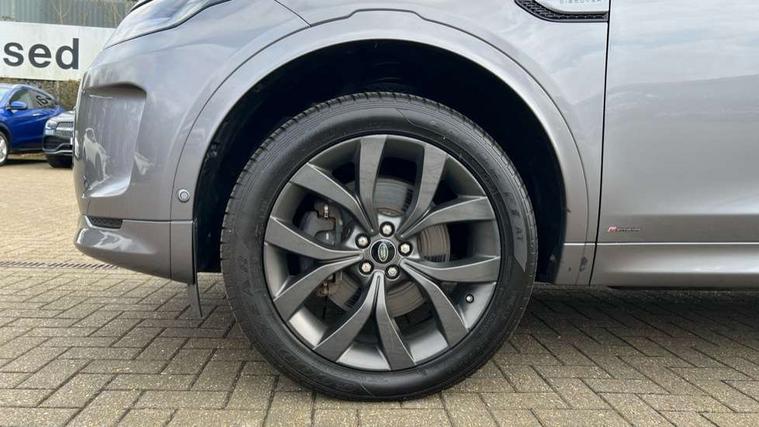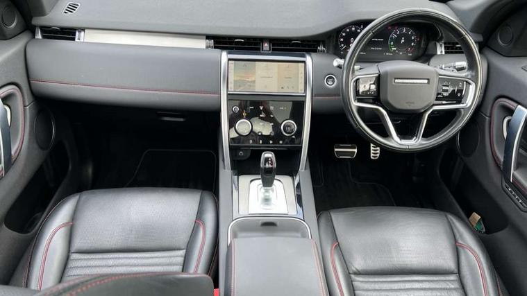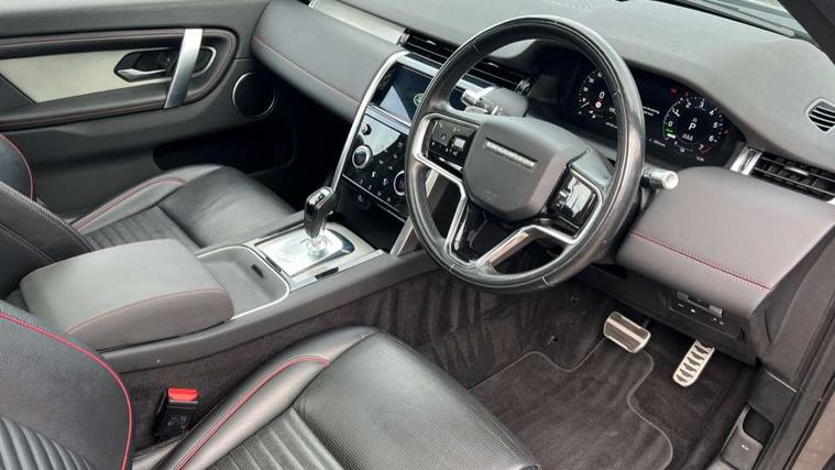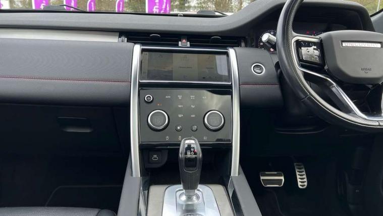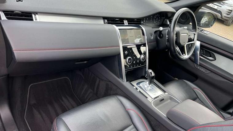 10" touch screen, 3D Surround Camera with 360 View, 180 Rear View, Front Traffic Detection, Forward Vehicle Guidance, Tow Hitch Assist and clear sight Ground View, Android Auto, Apple CarPlay, Blind spot assist, Clear exit monitor, Driver condition monitor, Front and rear parking aid, InControl remote premium, Interactive driver display, Lane keep assist, PAS, Pivi Pro connected navigation system with upgraded Infotainment, Powered tailgate/boot lid, Rear traffic monitor, Rear view camera, Service interval indicator, Traffic sign recognition with adaptive speed limiter, Trip computer, Wade Sensing, 7 kW onboard charger, All terrain progress control, Coil suspension system, Public charging cable, Terrain Response 2, Bluetooth connectivity including audio streaming, Digital Audio Broadcast radio-DAB, Steering wheel mounted audio controls, Automatic headlight levelling, Automatic headlights, Door mirror memory, Electric front/rear windows, Fixed panoramic sunroof with powered sunblind, Power fold, auto-dimming, heated door mirrors with approach lights, Rain sensing windscreen wipers, Rear fog lights, Rear side wing doors, Rear wiper, Bright metal pedals, Centre console with armrest, Front passenger isofix child seat attachment, Rear headrests, Satin chrome gearshift paddles, Sunvisors with illuminated vanity mirrors, Tilt/reach adjustable steering wheel, Black exterior pack - Discovery sport, Online pack - Discovery sport, 3 point seatbelts on all seats, ABS, Brake hold function, Collision mitigation braking system, Cornering brake control (CBC), Driver/Front Passenger airbags, Drivers knee airbag, Electronic brake force distribution, Electronic parking brake, Emergency brake assist, ESP + traction control, Hill descent control, Hill launch assist, Pedestrian airbag system, Rear seat ISOFIX, Side and curtain airbags for front and 2nd row seats, Trailer stability control, Tyre pressure monitoring system, Battery Back Up System (BBUS) with tilt sensor, Intrusion sensor, Locking wheel nuts, Centre stack rails in noble chrome,