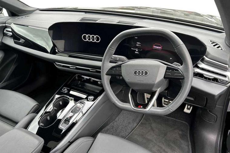 Adaptive cruise control, Advanced driver attention and fatigue montior, Audi application store, Audi assistant, Audi connect emergency call and service, Audi drive select, Audi smartphone interface, Audi virtual cockpit plus with 11.9" OLED colour display, Automatic start/stop system with coasting functionality, Camera based traffic sign recognition, Intersection assist, Lane departure warning, MMI navigation plus with high resolution 14.5" OLED touchscreen colour display, Park assist plus, Parking system plus with 360 display, Progressive steering with servotronic, Rear view camera, Swerve assist and turn assist, Traffic sign based speed limiter, Sports suspension lowered by 20mm, 2 USB-C ports in both the front and rear, Audi sound system impressive sound with 10 loudspeakers including centre speaker and subwoofer, 6-channel amplifier with a total output of 180 watts, DAB digital radio reception, Smartphone compartment with wireless charging, Aluminium roof rails, Aluminium window trims, Auto dimming rear view mirror, Body colour door mirrors, Door mirrors - electrically adjustable, heated, folding and auto dimming on both sides, Front and rear electric windows, Front door sill trims with aluminium inlays, illuminated with 'S' logo, High beam assist, LED headlights Plus incl. digital daytime running lights, turning light, all-weather light, motorway light, manouevring light and intersection light, LED rear lights pro incl. dynamic rear indicators and illuminated light strip with animated coming and leaving home function, LED third brake light, Privacy glass, Rear and side windows with heat insulating glass, Rear side wing doors, Rear wash/wipe, S Line badges on the front wings, S line bumpers, radiator grille and diffuser in phantom black and diffuser insert in matt anthracite, White rhombus logo projection light in exterior mirrors, Windscreen with acoustic glazing, 3 rear headrests, 3 seat rear bench, 3 spoke leather steering wheel with multi-function buttons with touch control, flattened on top and bottom, with S badging and contrast stitching, 3-zone automatic climate control, 40:20:40 split folding rear seat bench with centre armrest and cup holders, Comfort front centre armrest, Front and rear floor mats, Front seats with manual adjustment for position and 4-way electric lumbar support, Front sport seats with integrated headrest and S embossed logo, Headlining in black cloth, Heated front seats, i-Size child seat mounting on the front passenger side and outer rear seats, i-Size and top tether on the outer rear seats, Luggage compartment lid, electrically opening and closing, Manual steering column height and depth adjustment, Single front passenger seat, Stainless steel pedals and footrest, Steering wheel grips in perforated leather and shift paddles, Ambient lighting package plus - A5, 3x3 point rear seat belts, Driver airbag, Electric child safety locks, First aid kit with warning triangle and vests, Front emergency brake assist, Front passenger airbag, Front passenger airbag deactivation, Front side airbags with head airbag system and front interaction airbag, Hill hold assist, Seat belt monitoring with rear seat occupant reminder, Tyre pressure loss indicator, Anti theft alarm, Anti-theft wheel bolts, Keyless Go, Accent surfaces and control buttons in gloss black, Black dashboard with contrast stitching, Inlays in matt brushed aluminium with linear embossing, anthracite, Softwrap in leatherette with contrast stitching, Upper and lower interior elements in leatherette, Tyre repair kit,