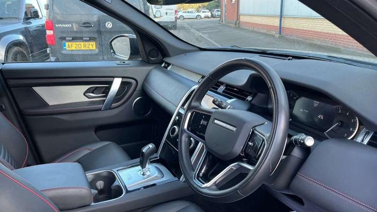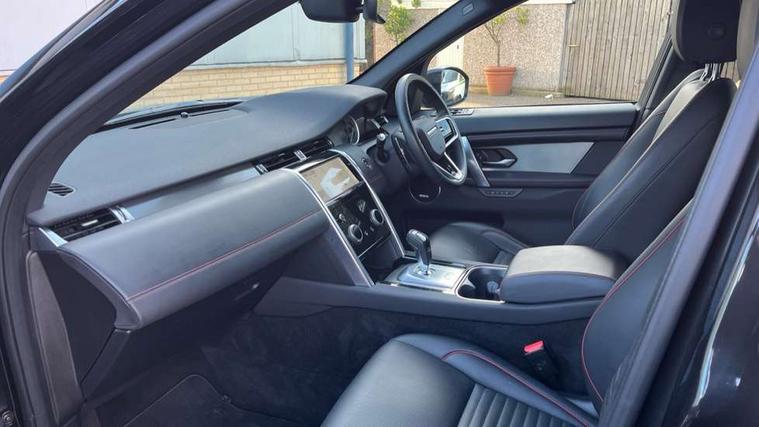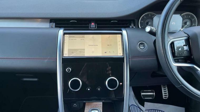 10" touch screen, Adaptive cruise control, Android Auto, Apple CarPlay, Blind spot assist, Clear exit monitor, Driver condition monitor, eCall emergency call system, Front and rear parking aid, InControl remote premium, Lane keep assist, Locking fuel flap, PAS, Pivi Pro connected navigation system with upgraded Infotainment, Powered tailgate/boot lid, Push button start, Rear collision monitor, Rear traffic monitor, Service interval indicator, Traffic sign recognition with adaptive speed limiter, Trip computer, Wade Sensing, 7 kW onboard charger, All terrain progress control, Coil suspension system, Configurable dynamics, Dynamic stability control, Home charging cable, Public charging cable, Terrain Response 2, Bluetooth connectivity including audio streaming, Digital Audio Broadcast radio-DAB, Steering wheel mounted audio controls, 3rd brake light, Automatic headlight levelling, Automatic headlights, Electric front/rear windows, Electric heated/power fold door mirrors with approach lights and auto dimming driver side, Front and rear recovery eyes, Front fog lights, Heated rear window, Heated windscreen including heated washer jets, Illuminated metal front treadplates with R dynamic branding, P300e badge, Privacy glass, R Dynamic badge, Rain sensing windscreen wipers, Rear fog lights, Rear side wing doors, Rear wing door, Rear wiper, 5 standard seating configuration, Bright metal pedals, Centre console with armrest, Configurable cabin lighting, Electrically adjustable steering column with memory, Footwell lights, Front and rear grab handles, Front passenger isofix child seat attachment, Heated steering wheel, Loadspace cover, Loadspace light, Overhead lighting console, Overhead stowage for sunglasses, Rear headrests, Satin chrome gearshift paddles, Sunvisors with illuminated vanity mirrors, Tilt/reach adjustable steering wheel, Black exterior pack - Discovery sport R-Dynamic SE/HSE, Online pack with data plan - Discovery, 3 point seatbelts on all seats, ABS, Brake hold function, Child locks on rear doors, Collision mitigation braking system, Cornering brake control (CBC), Driver/Front Passenger airbags, Drivers knee airbag, Electronic brake force distribution, Electronic parking brake, Emergency brake assist, ESP + traction control, Hill descent control, Hill launch assist, Pedestrian airbag system, Rear seat ISOFIX, Roll stability control, Side and curtain airbags for front and 2nd row seats, Trailer stability control, Tyre pressure monitoring system, Battery Back Up System (BBUS) with tilt sensor, Global lock and unlock switch on driver door, Intrusion sensor, Keyless entry, Locking wheel nuts, Centre stack rails in noble chrome,
