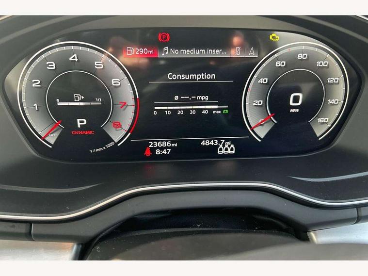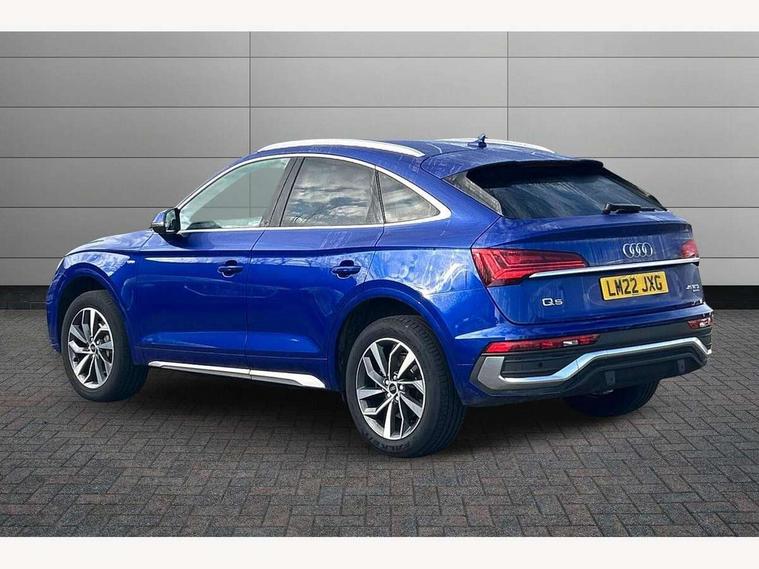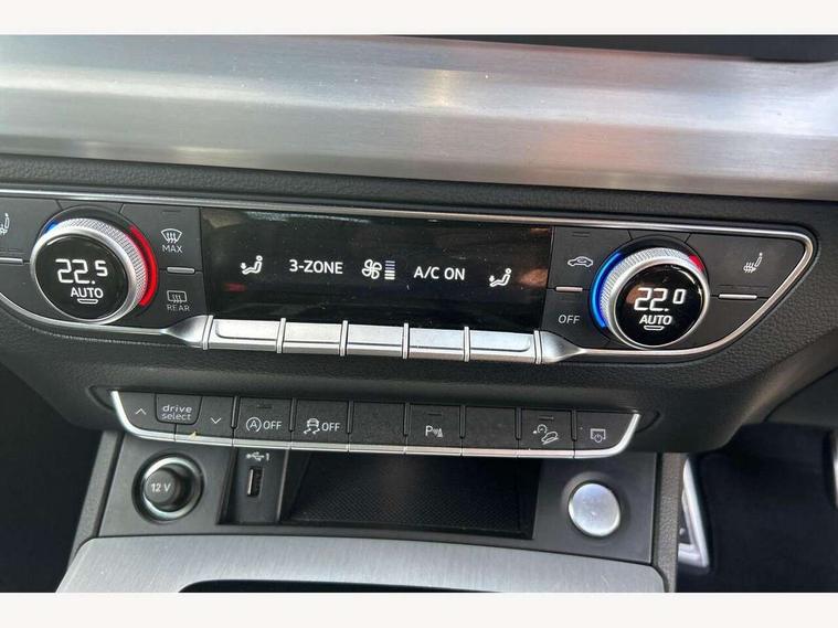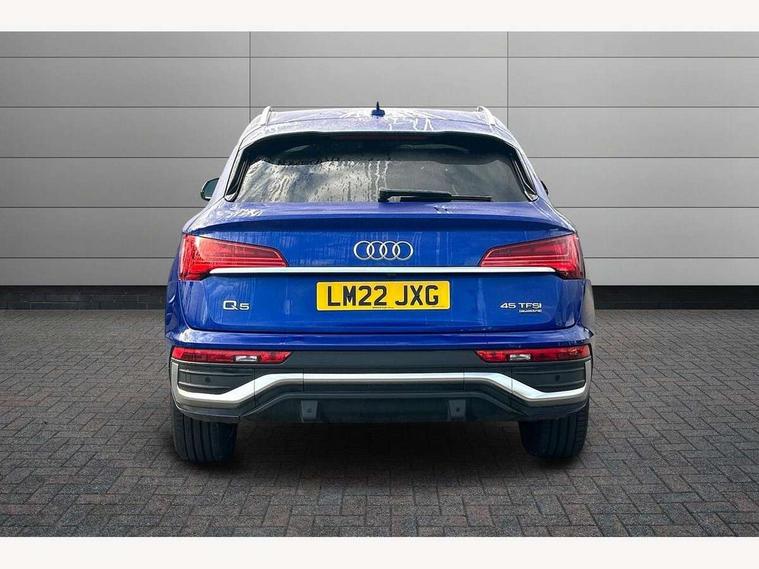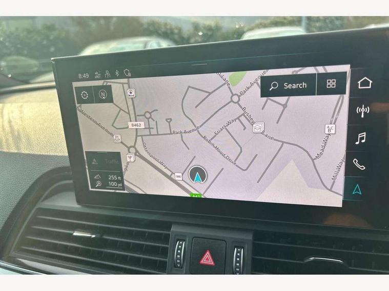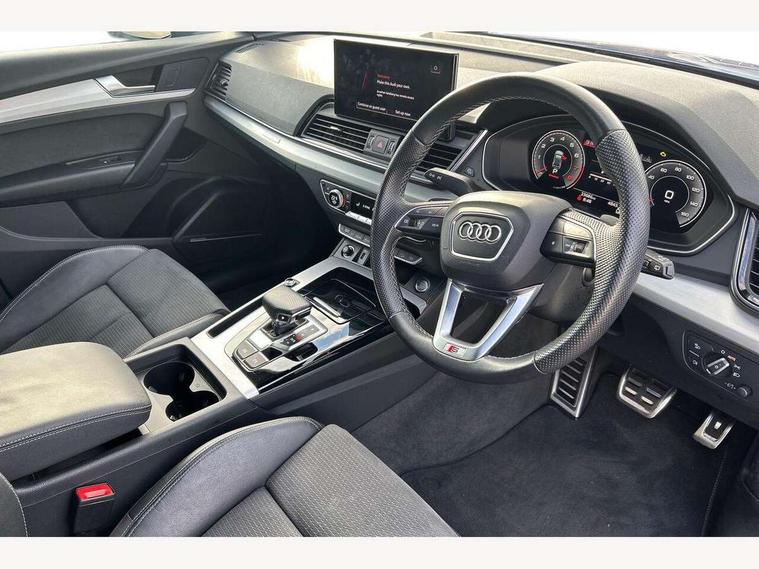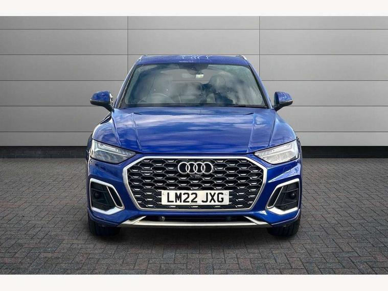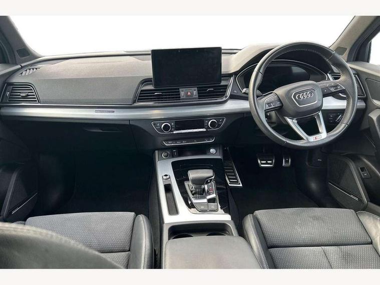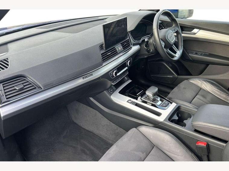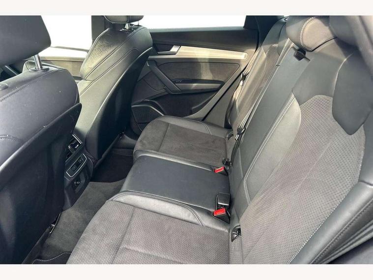 Audi connect safety and service (e-call), Audi connect with Amazon Alexa Integration, Audi drive select, Audi virtual cockpit plus with 12.3" screen and three different layout designs, Audi wireless smartphone interface, Automatic start-stop system with coasting functionality and efficiency programme, Bluetooth interface, Electro - mechanical power assisted steering, MMI navigation plus with 10.1" touch screen, Power tailgate, Reversing camera, Service interval indicator, Voice control system with Audi hotword activation "Hey Audi", Quattro on demand, S line sports suspension, 2 x USB charging port with aux input socket, DAB Digital radio, Acoustic windscreen, Aluminium roof rails, Audi matrix LED headlights with dynamic front and rear indicators, Auto dimming door mirrors, Auto dimming rear view mirror, Automatic headlights and windscreen wipers, Body colour door mirrors, Body colour rear diffuser with matt aluminium silver surrounds, Body colour underbody protection, Chrome plated exhaust trims, Daytime running lights, Door sills in Selenite silver, Electric adjustable/heated/folding door mirrors, Front air inlet surrounds in aluminium, Front and rear electric windows, Front radiator grille in honeycomb design, Headlight washers, High level LED brake light, Lower bumpers painted in contrast Manhattan grey, Rear chrome trim strip below lights, Rear privacy glass and rear side windows, Rear side wing doors, Rear wiper, Roof bars, S Line badges on the front wings, S Line front and rear bumpers, S Line rear spoiler, S Line side skirts, 3 rear headrests, 40:20:40 split folding 3 rear bench seat in 2nd row with rear centre armrest, Black cloth headlining, Comfort front centre armrest, Contrast stitching on seats, steering wheel and gear lever gaiter, Deluxe 3 zone electronic climate control, Front head restraints, Front/rear floor mats, Gear lever in black leather, Heated front seats, Height/reach adjustable steering column, Illuminated door sill trims with S logo, ISOFIX child seat mounting and top tether, Manual seat adjustment with 4-way electric lumbar support, Removable luggage compartment floor, Single front passenger seat, Stainless steel pedals, Sunvisors with vanity mirrors, Trunk roller cover, High gloss pack - Q5, LED interior light pack - Q5, 3 point seatbelts on all seats, 6 airbags - Driver, front passenger, curtain and side airbags, Electrically operated child locks on rear doors, Electromechanical parking brake, Electronic stabilisation control including ABS, ASR and EDL, Front passenger airbag deactivation, Hill descent control, Hill hold assist, Multi collision brake assist, Pop-up bonnet for pedestrian protection, Pre sense city, Seat belt force limiter, Seatbelt monitoring, Tyre pressure warning, Warning triangle and first aid kit, Anti theft alarm, Anti-theft wheel bolts, Keyless Go access/ignition system, Remote central locking, Matt brushed aluminium inlays,