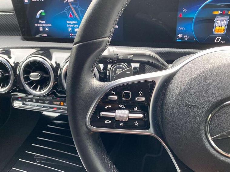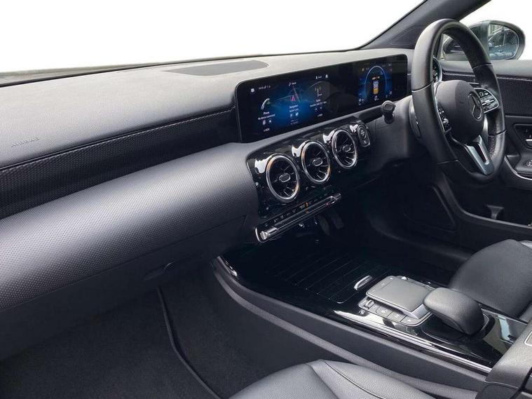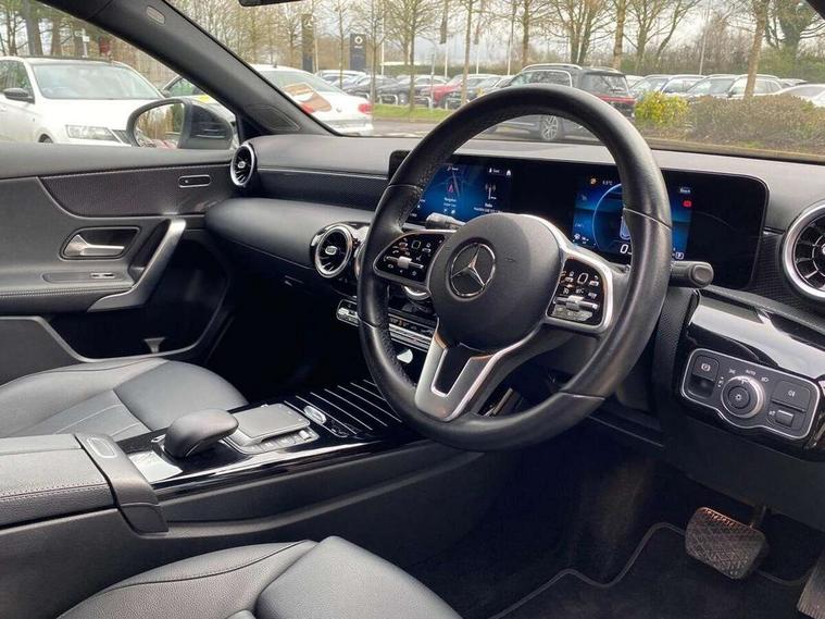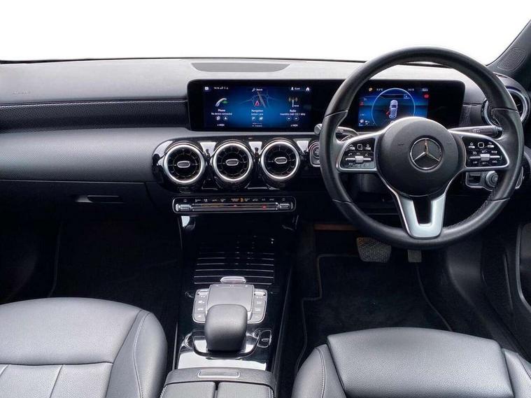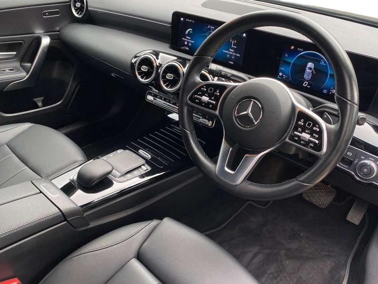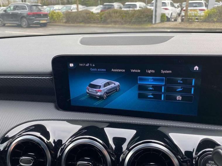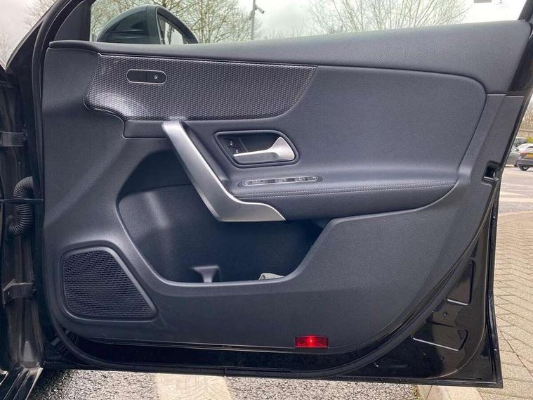 10.25" media display, 180 degree rear view camera with parking guidelines, 7" colour screen in instrument panel, Active parking assist with visual and audible warning of detected obstacles, Attention assist, Brake pad wear indicator warning light, Car wash mode, Cruise control + speed limiter, Direct steering, Dual bluetooth interfaces, DYNAMIC SELECT with a choice of driving modes (ECO, Comfort, Sport and Individual), ECO start/stop function, Fluid level warning indicator for fuel, oil, coolant and washer fluid, Hard-disk navigation, Hey Mercedes Voice activation, Lamp failure indicator, Lane keeping system, Mercedes me connect including emergency call system, accident recovery, breakdown and maintenance management, Mercedes me remote services, Outside temperature gauge, Owners manual in English, Pre-installation for private car sharing, Preinstallation for Mercedes Benz link, Service indicator (ASSYST), Smartphone integration with Apple CarPlay and Android auto, Speed sensitive power steering, Trip computer, Ultrasonic sensors positioned in the front and rear bumpers, Lowered comfort suspension, Rear axle torsion beam, 2 USB ports (type C) in rear stowage compartment and one in front of center console, 6 speakers, DAB Digital radio, MBUX multimedia system with DAB digital radio and touchpad including satellite navigation, Mercedes-Benz sound system - 100W, 4 Electric Front and Rear windows, Adaptive brake lights, Automatic headlights, Black weather strip, Body colour bumpers, Body colour door handles, Body colour side skirt, Body coloured door mirrors, Chrome beltline trim, Diamond radiator grille with black pins with one louvre in silver + chrome insert, Electric adjustable and heated door mirrors with integrated LED side indicators, Exhaust system - Twin visible tailpipes in polished stainless steel, Headlamp assist automatic headlamp activation, Heated glass rear windscreen + timer control, LED High level third brake light, LED high performance headlamps with integrated LED daytime running lights, LED tail lamp, Privacy glass, Radio aerial, Rain sensing windscreen wipers with two sensitivity settings, Rear fog lights, Rear side wing doors, Rear wiper, Window line trim strip in chrome, 3 seat bench in 2nd row, 3 Spoke leather multi function steering wheel, 40:20:40 split folding rear seats, Artico man-made leather upholstery, Auto Mercedes-Benz child seat recognition sensor, Black air vents with surround in silver chrome, Black roof lining, Controller on centre console with chrome surround, Front centre armrest with storage compartment, Front comfort seats with adjustable head restraints, Front door sills with Mercedes Benz lettering, Front seat backs luggage nets, Front seat cushion length adjustment, Gearshift paddles on steering wheel, Heated front seats, Height/reach adjustable steering column, Interior mirror with reading lamps in black and frameless, Manual height adjustable front seats, Rear head restraints, Seat occupancy sensor for front passenger seat, Single front passenger seat, Stowage compartment in centre console with retractable cover, Sunvisors with illuminated vanity mirrors, Touchpad on center console, Twin front cupholders, Two zone thermotronic luxury automatic climate control, Velour floor mats, Light and sight pack - A Class, Mirror package - A Class, Seat comfort pack - A Class, 3 rear 3 point seatbelts, ABS with Brake Assist, Active bonnet, Active brake assist includes forward collision warning system with autonomous braking, Adaptive brake assist with hold function and hill start assist, Black seatbelts, Childproof locks manually operated for rear doors and electrically operated for rear power windows, Crash responsive emergency lighting, Driver and passenger head and side airbags, Drivers knee airbag, Dual stage driver/passenger airbags, Electronic parking brake, ESP curve dynamic assist, ESP with ASR, Front and rear seatbelt reminder, ISOFIX and top tether child seat fixing points in two outer rear seats, Tyre pressure monitoring system, Warning triangle and first aid kit, Window airbags, Alarm system/interior protection/immobiliser, Keyless Go, Remote central locking and crash sensor with emergency opening function, Urban guard vehicle protection system with immobiliser and interior protection, Dark carbon fibre interior trim, 18" multi spoke light alloy wheels painted in himalayas grey with a high sheen finish, Summer tyres, Tirefit sealant kit,