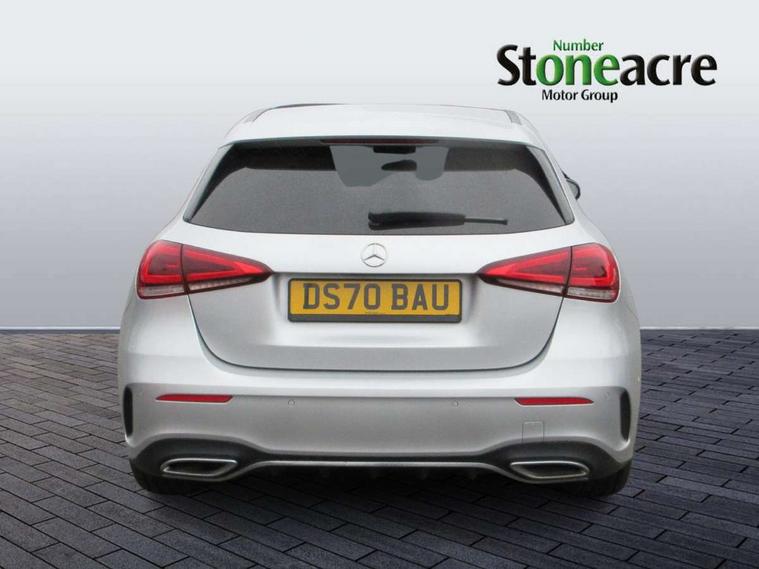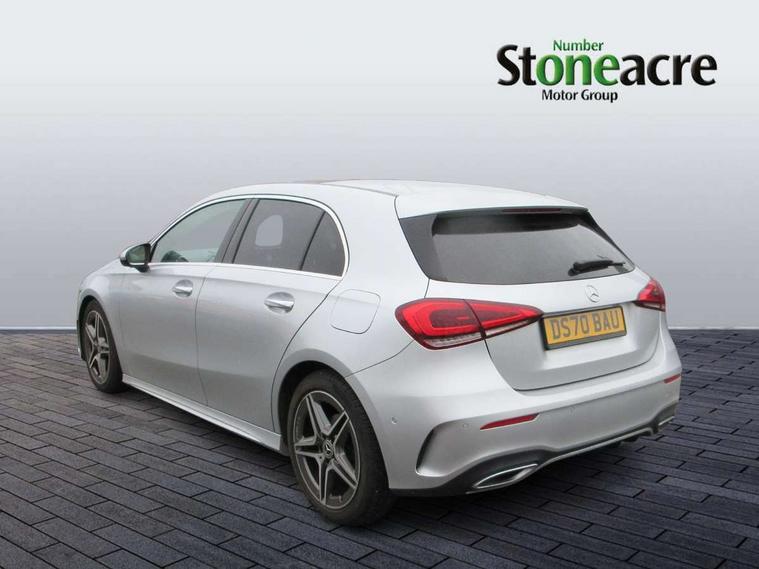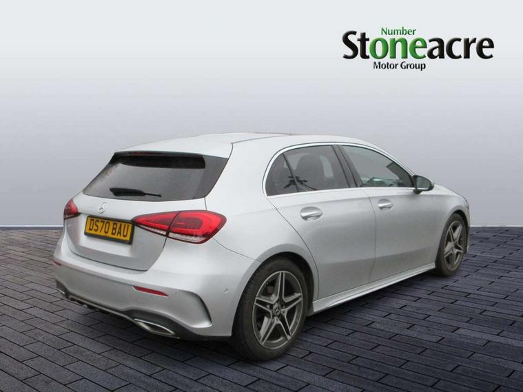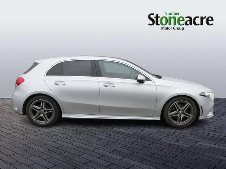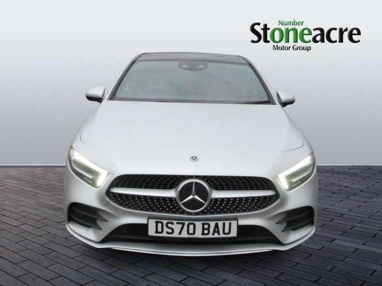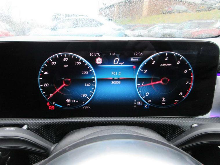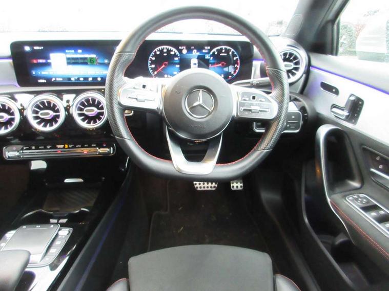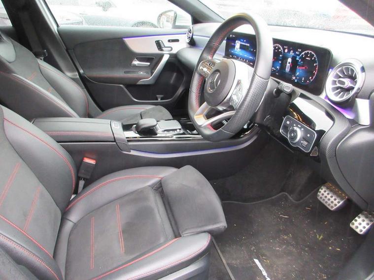 10.25" Digital instrument cluster display screen, 10.25" media display, 180 degree rear view camera with parking guidelines, Active lane keep assist, Active park assist with parktronic system including front and rear parking sensors, Attention assist, Brake pad wear indicator warning light, Car wash mode, Direct steering, Dual bluetooth interfaces, DYNAMIC SELECT with a choice of driving modes (ECO, Comfort, Sport and Individual), ECO start/stop function, Fluid level warning indicator for fuel, oil, coolant and washer fluid, Hard-disk navigation, Hey Mercedes Voice activation, Lamp failure indicator, MBUX augmented reality for navigation, Mercedes me connect including emergency call system, accident recovery, breakdown and maintenance management, Outside temperature gauge, Owners manual in English, Pre-installation for private car sharing, Pre-installation for Vehicle Monitoring, Pre-installation for Vehicle Setup, Preinstallation for Mercedes Benz link, Service indicator (ASSYST), Smartphone integration with Apple CarPlay and Android auto, Traffic sign assist, Trip computer, Wireless charging, Lowered comfort suspension, Rear axle torsion beam, 10 speakers, 2 USB ports (type C) in rear stowage compartment and one in front of center console, DAB Digital radio, MBUX multimedia system with DAB digital radio and touchpad including satellite navigation, Mercedes-Benz advanced sound system - 225W, 4 Electric Front and Rear windows, Adaptive brake lights, AMG bodystyling - Front apron with splitter in chrome, rear apron with chrome trim and chrome visible trim elements in tailpipe, Black weather strip, Body colour bumpers, Body colour door handles, Body colour side skirt, Body coloured door mirrors, Chrome beltline trim, Diamond radiator grille with chrome pins and silver louvre + chrome insert, Electric adjustable and heated door mirrors with integrated LED side indicators, Exhaust system - Twin visible tailpipes in polished stainless steel, Headlamp assist automatic headlamp activation, Heated glass rear windscreen + timer control, Illuminated front door sill panels with Mercedes-Benz lettering, LED high performance headlamps with integrated LED daytime running lights, LED tail lamp, LED third brake light, Multibeam LED with adaptive highbeam assist plus, Panoramic sliding sunroof, Privacy glass, Radio aerial, Rain sensing windscreen wipers with two sensitivity settings, Rear fog lights, Rear wiper, Window line trim strip in chrome, 3 Spoke flat bottom leather multi function steering wheel with perforated leather in grip area, 40:20:40 split folding rear seats, Artico man-made leather/Microfibre Dinamica upholstery with red contrast stitching, Auto Mercedes-Benz child seat recognition sensor, Black air vents with surround in silver chrome, Black roof lining, Brushed stainless steel sports pedals with rubber studs, Controller on centre console with chrome surround, Electrically adjustable front memory seats including lumbar support, Floor mats with stitched edging and AMG lettering, Front centre armrest with storage compartment, Front seat backs luggage nets, Front seat cushion length adjustment, Galvanished gear shift paddles on steering wheel, Heated front seats, Height/reach adjustable steering column, Interior lighting - 64 colour Ambient lighting, Interior mirror with reading lamps in black and frameless, Rear armrest with 2 cupholders, Rear head restraints, Seat occupancy sensor for front passenger seat, Sports seats with integrated headrests, Stowage compartment in centre console with retractable cover, Sunvisors with illuminated vanity mirrors, Touchpad on center console, Twin front cupholders, Two zone thermotronic luxury automatic climate control, Light and sight pack - A Class, Mirror package - A Class, Seat comfort pack - A Class, 3 rear 3 point seatbelts, ABS with Brake Assist, Active bonnet, Adaptive brake assist with hold function and hill start assist, Black seatbelts, Childproof locks manually operated for rear doors and electrically operated for rear power windows, Crash responsive emergency lighting, Driver and passenger head and side airbags, Drivers knee airbag, Dual stage driver/passenger airbags, Electronic parking brake, ESP curve dynamic assist, ESP with ASR, Front and rear seatbelt reminder, Front brake callipers with Mercedes Benz lettering, ISOFIX and top tether child seat fixing points in two outer rear seats, Tyre pressure monitoring system, Warning triangle and first aid kit, Window airbags, Alarm system/interior protection/immobiliser, Keyless entry lock/unlock, Keyless Go, Remote central locking and crash sensor with emergency opening function, Urban guard vehicle protection system with immobiliser and interior protection, Light aluminium with longitudinal grain interior trim, 18" AMG 5 twin spoke light alloy wheels in titanium grey with highsheen finish, Summer tyres, Tirefit sealant kit,
