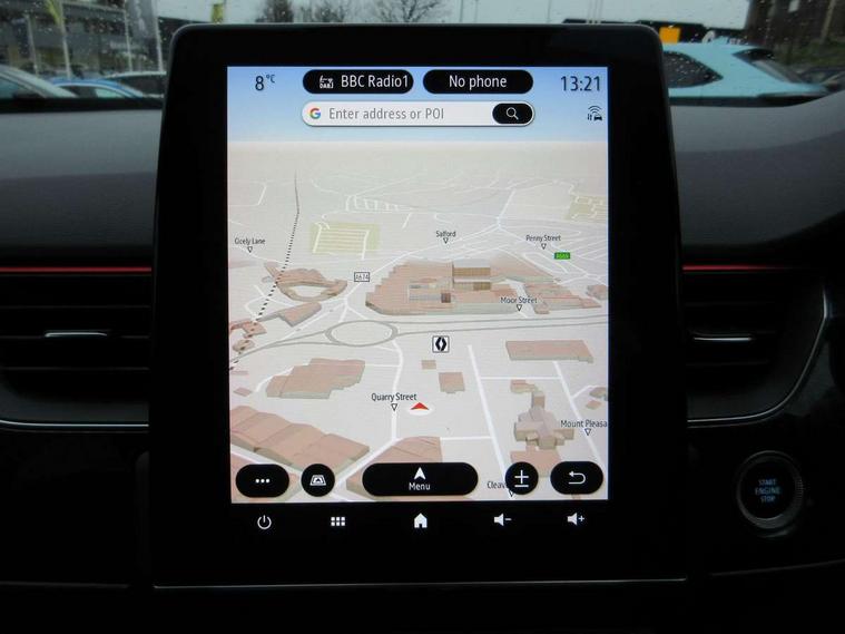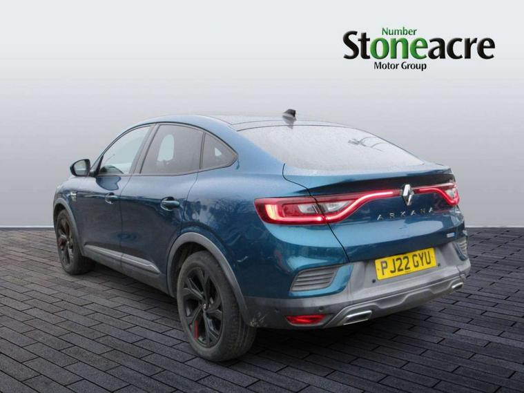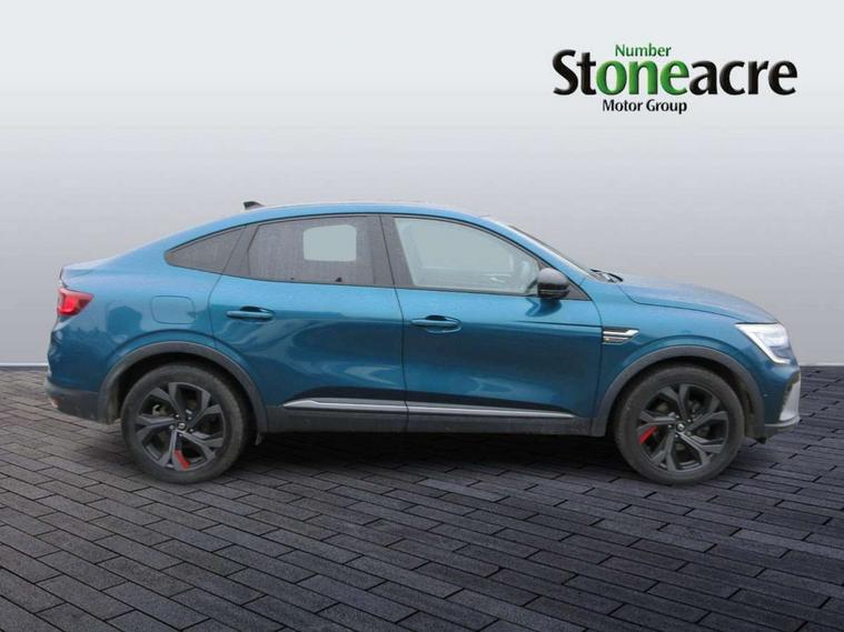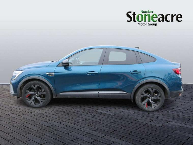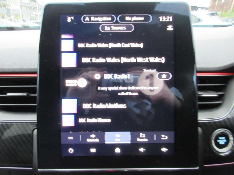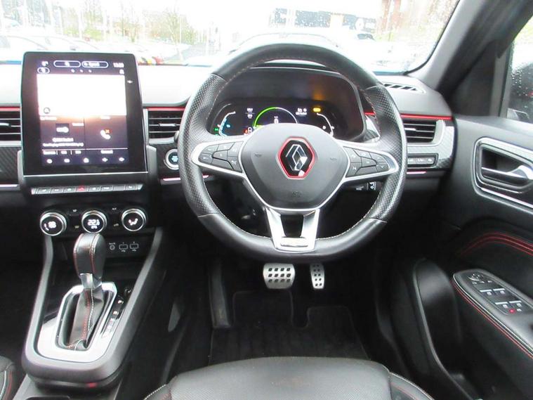 7" TFT Driver information display, Blind spot warning, Bluetooth system, EASY LINK 9.3" portrait touchscreen with navigation, Google search and traffic information, eCall emergency call system, Eco mode, EV button to activate pure mode, Front and rear parking sensors, Gear change indicator, Lane departure warning, Lane keep assist, Multi-sense - 3 driving modes and 8 ambient lighting, Rear cross traffic alert, Rear view camera, Renault automatic emergency assist, Smartphone integration compatible with Apple CarPlay and Android Auto, Traffic sign recognition with over speed prevention, Trip computer, Variable assistance electric power steering, Wireless phone charger, DAB radio, USB port, 3rd brake light, Auto dimming rear view mirror, Automatic headlights, Automatic high / low beam, Automatic windscreen wipers with rain sensor, Black side door protection with gun metal insert, Body coloured bumpers, C-shaped LED front signature lighting, Chrome decopart on wing (fender molding) with R.S. Line badge, Double chromed exhaust tailpipes elements, Extra tinted rear windows and tailgate, Frameless rear view mirror, Front and rear electric windows, Front bumper with F1 blade and honeycomb front grille, Front driver window with one touch facility and anti-pinch function, Front grille with chrome on upper part, Full LED headlights, Glossy black door mirror and lower window lining, Gun Metal front and rear skid plates, Heated rear window, R.S. Line badges on front wing and hatch door, Rain sensor, Rear windscreen wiper, Shiny black shark fin antenna, Side mirrors adjustable electrically, electrically foldable, with defrosting and temperature sensor, automatically foldable at vehicle closure, 3 seat bench in 2nd row, 60:40 split and fixed base rear seats, Aluminium pedals, Automatic climate control with combined filter, humidity sensor and AQS, Black interior roof lining, Carbon style dashboard, Central console with storage, Driver's seat height adjustment, Electrically adjustable front seats, Front and rear head restraints, Height and reach adjustable steering wheel, ISOFIX child seat fixing points on rear outermost seats, LED front and rear roof lights, Passenger seat height adjuster, R.S. line black suede-leather upholstery with red/grey stiching, R.S. Line perforated leather steering wheel with red/black harmony and R.S. Line badge, Rear air vents, Red inserts on air vents, Single front passenger seat, Parking Pack - Hands-free parking & flank protection - Arkana, Winter pack - Arkana, 3x3 point rear seat belts, ABS+EBA, Active emergency braking system, B Brake Mode - One pedal driving with increased regenerative braking, Distance warning alert, Driver airbag, Driver and passenger front and side airbag deactivation, Driver and passenger side airbags, Driver height adjustable seat belt, Electronic parking brake with auto hold, ESC (Electronic Stability Control), Front and rear no seatbelt warning sound, Front curtain airbags, Front head airbags, Hill start assist, Passenger airbag, Tyre pressure warning light, Anti drill door locks and locking fuel cap, Central door locking, Deadlocking system, Hands free keycard with Keyless access and start, RAID (Renault Anti-Intruder Device) automatic door locking, Rear side wing door and window child locking function (front driver door control panel), Superlocking, Thatcham alarm, 18" Silverstone diamond alloy wheels with red inserts,