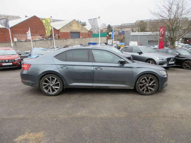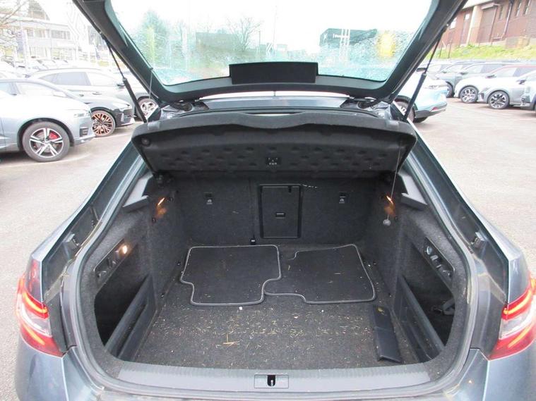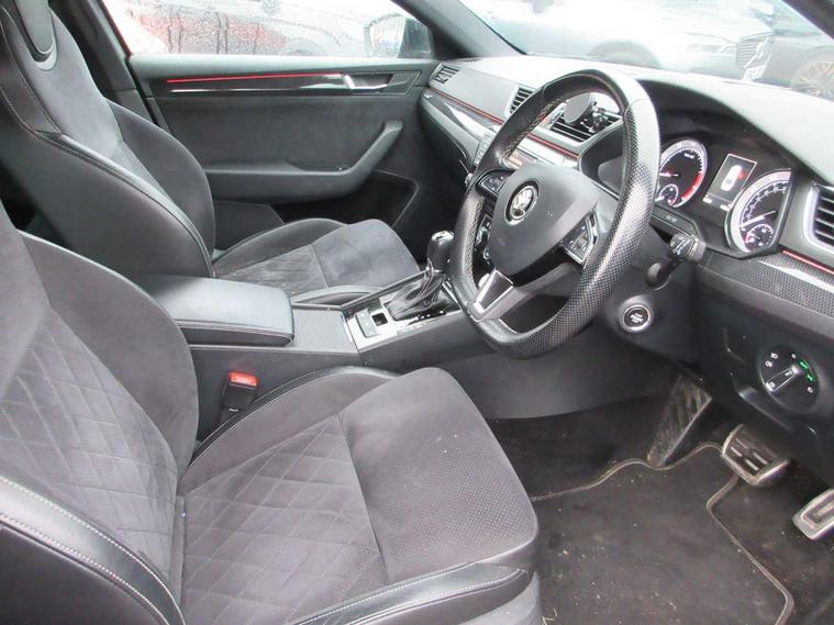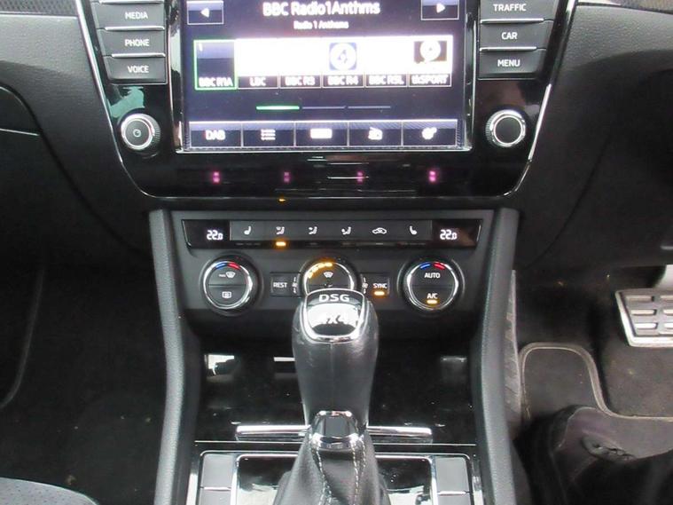 Adaptive cruise control, Colour maxi dot trip computer, Columbus colour 8" touch screen satellite navigation system, Radio/MP3/aux-in/USB, SD card and Wi-fi, Drive mode selector, Dynamic steering response (DSR), Electro-mechanical PAS, External temperature gauge, Fatigue detection system, Front assistant collision mitigation, Remote fuel cap release, Service interval indicator, SmartLink, Speed warning indicator, XDS electronic differential lock, DAB Digital radio, Aero wiper + intermittent function, Auto dimming rear view mirror, Bi-Xenon headlights with AFS + integrated headlight washers + LED daytime running lights, Black gloss door mirror housings, Body colour bumpers, Body colour door handles, Cornering front fog lights, Front and rear electric windows, Gloss black side window surrounds, Gloss black spoiler, LED brake lights, Light assistant (coming home/tunnel light), Rain sensor, Sport front exterior styling with black grille, Sunset glass from b-pillar back, Tinted glass, Twin exhaust tailpipe, 12v power point in centre console, 12V power point in luggage area, 3 rear height adjustable headrests, 3 spoke sports leather steering wheel with silver stitching, Alcantara/leather upholstery, Black roof lining, Driver's electric lumbar adjustment, Driver's seat electric height adjustment, Electric driver's seat with memory, Front and rear cupholders, Front armrest with storage box, Front passenger seat electric height adjust, Gearshift paddles, Height/reach adjust steering wheel, Height/tilt adjustable front headrests, Illuminated air conditioned glovebox, Isofix on 2nd row rear seats, Leather gearknob and handbrake lever, Luggage compartment lighting, Rear centre armrest with cupholders, Removable LED light in boot, Removable rear parcel shelf, Split folding rear seats, Sunglasses storage, Ticket holder, LED package plus - Superb, LED rear pack - superb, 3 point height adj front seatbelts + pretensioners, 3 rear 3 point seatbelts + pretensioners, ABS + EDL + ASR + MSR + ESC, CBC - (Cornering brake control), Curtain airbags, Door open warning, Driver and passenger seatbelts with warning light, Driver/Front Passenger airbags, Driver/front passenger side airbags, Drivers knee airbag, Electromechanical parking brake, HBA (Hydraulic Brake Assist), Hill hold control, Multi-Collision braking, Passenger airbag deactivate switch, Rear door child safety locks, Tyre pressure monitor, Anti theft alarm with interior monitor and tilt sensor, Anti-theft wheel bolts, Immobiliser, Keyless entry and start, Remote central locking with SAFE system, Carbon interior trim, 19" Vega alloy wheels,