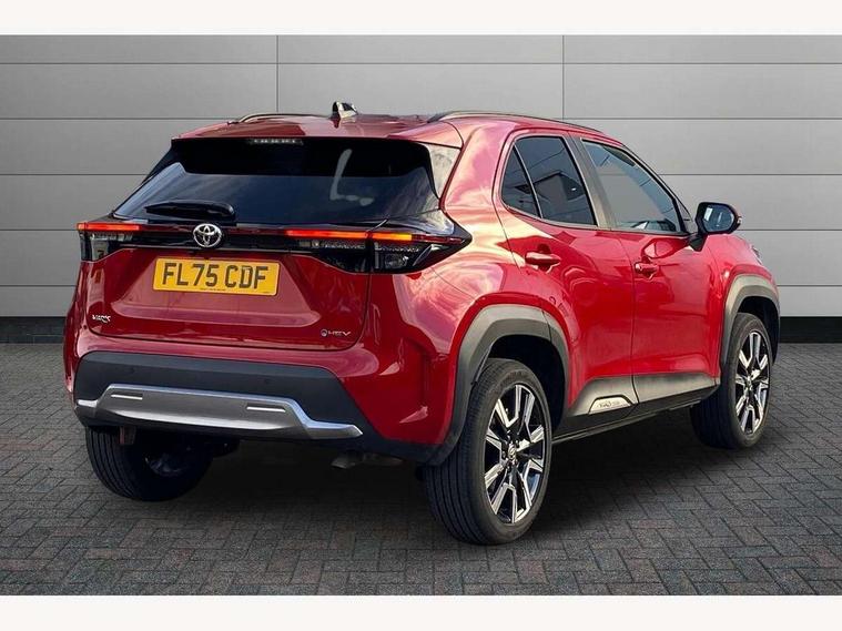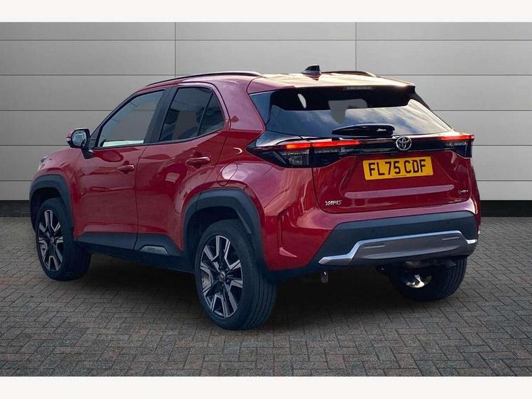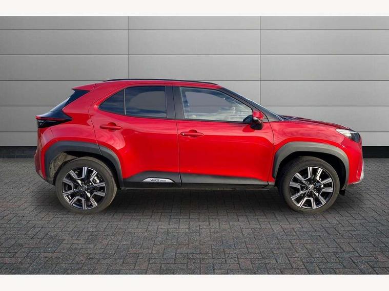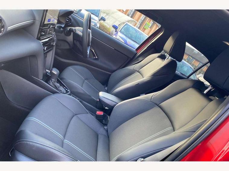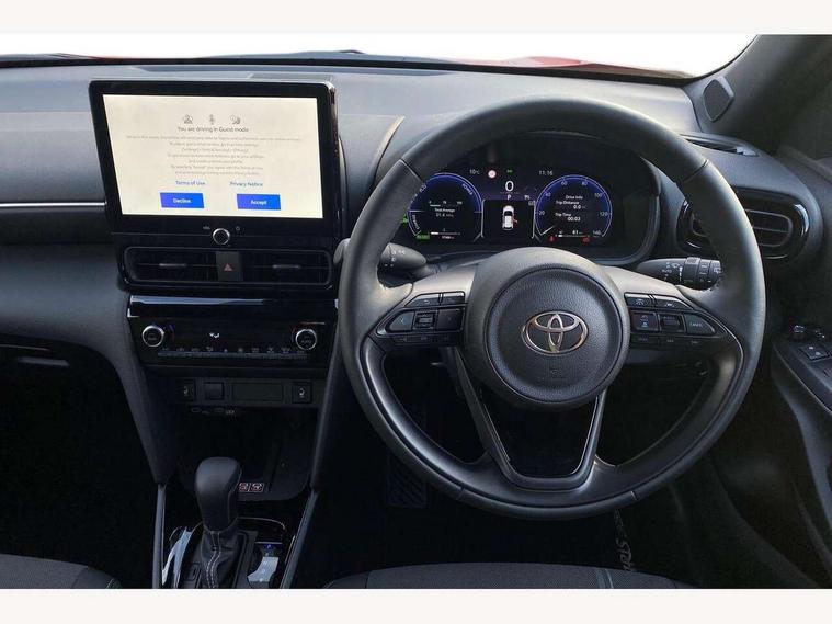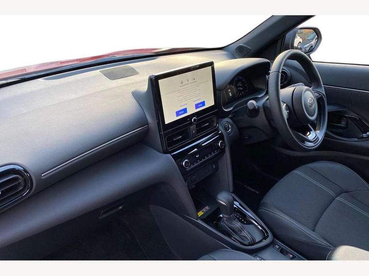 10.5" Multimedia display screen, 10.5" Toyota smart connect+ with navi multimedia system with wireless Smartphone integration incl Apple CarPlay, 360 degree panoramic view monitor, 7" Multi information display screen, Adaptive cruise control, multi info switches on steering wheel, Adjustable speed limiter, Advanced parking assist, Blind spot monitoring, Bluetooth connectivity, Color multi-information display, Digital speedometer, Digital tachometer, Drive mode selector, Driver attention alert system, Dynamic guide lines on reversing camera, eCall emergency system, Electric power steering, Emergency driving stop system, Full range intelligent adaptive cruise control, Hybrid system indicator, Intelligent front and rear parking sensors with clearance sonar and automatic braking, Intersection turn assist, Key reminder warning, Lane change assist, Lane trace assist, My T Connected services, Power tailgate, Pre-collision system enhanced with emergency steering assist, Rear cross traffic alert, Remote boot door release in cabin, Road sign assist - RSA, Safe exit assist, Tailgate, Telephone switch on steering wheel, Wireless Mobile Phone Charger, Steering assisted vehicle stability control, 6 speakers, DAB Digital radio, Front USB Type-C connector, Front USB-C device charger, Acoustic windscreen glass, Anti-jam protection on power windows, Auto dimming rear view mirror, Auto high beam [AHB] with on/off switch, Auto intermittent windscreen wipers, Automatic headlights, Automatic headlights cut-off, Automatically retractable door mirrors, Black door moulding, Black lower front grille, Black protection moulding on side doors, Black roof rails, Black wheel arch mouldings, Body colour door handles, Body colour front bumper, Body colour rear bumper, Electric adjustable heated door mirrors, Follow me home headlights, Front and rear electric windows with auto up/down function, Gloss black upper front grille, Headlight cut off reminder, Indicators integrated on door mirrors, Intermittent rear wiper, Kick activated power back door, LED 3rd brake light, LED daytime running lights guide, LED front fog lights, LED front light guide, LED Indicators, LED projector headlights, LED rear lights with sequential indicators, Manual headlight levelling, Meshed shape upper front grille, Noise reduction layer on windscreen, Pre wiring for towing hook, Privacy glass, Rain sensor, Rear roof spoiler, Rear side wing doors, Rear window defogger, Shark fin antenna, 12v power outlet - front, 12V power point in boot, 2x Rear coat hooks, 3 seat bench in 2nd row, 3 spoke leather steering wheel, 40/60 split deckboard, 40:20:40 split folding rear bench seat, Adjustable rear headrests, Adjustable speed limiter switch on steering wheel, Boot light, Central armrest, Driver and front passenger personal lights, Driver and front passenger Whiplash injury Lesseing seats, Driver and passenger seatback pockets, Dual zone automatic air conditioning, Fabric door trim, Front console box, Front cup holders, Front door pockets, Front head restraints, Front sport seats, Front/rear assist grips, Gear shift indicator, Grey roof lining, Heated driver and passenger seats, Heated steering wheel, Height adjustable driver's seat, Height adjustable front passenger seat, Hooks for luggage holding belts, ISOFIX child restraint system, Lane departure alert switch on steering control, Leather gearshift, LED centre room light, Light on driver and passenger sun visor, Manual telescopic and tilting steering wheel, Mirror on driver and passenger sun visor, Nanoe-X air purifier, Partial synthetic leather upholstery, Pollen air filter, Power adjustable lumbar support on driver seat, Rear cup holders, Rear door pockets, Rear head restraints, Remote air-conditioning system, Single compartment glovebox, Single front passenger seat, Soft tonneau cover, Storage box under boot floor, Voice recognition switch on steering wheel, White ambient lighting in centre console, White ambient lighting in footwell, White ambient lighting on front doors, Yaris cross floor mats, 3x3 point rear seat belts, ABS+EBD+Brake assist, Downhill Assist Control (DAC), Driver and passenger central airbags, Driver and passenger front airbags, Driver and passenger side airbags, Electronic parking brake, Emergency brake light system (EBS), Front seat belt reminder, Hill start assist control (HAC), Passenger airbag on/off switch, Pre-collision system with pedestrian and cyclist detection, Rear door child safety locks, Rear passenger side airbags, Rear seat belt reminder, Traction control, Tyre pressure warning system, Immobiliser, Intrusion alarm, Keyless smart entry with push button start, Power door locks, Power passenger window lock, Remote door lock, Gloss black side air vent surrounds, Tyre repair kit,