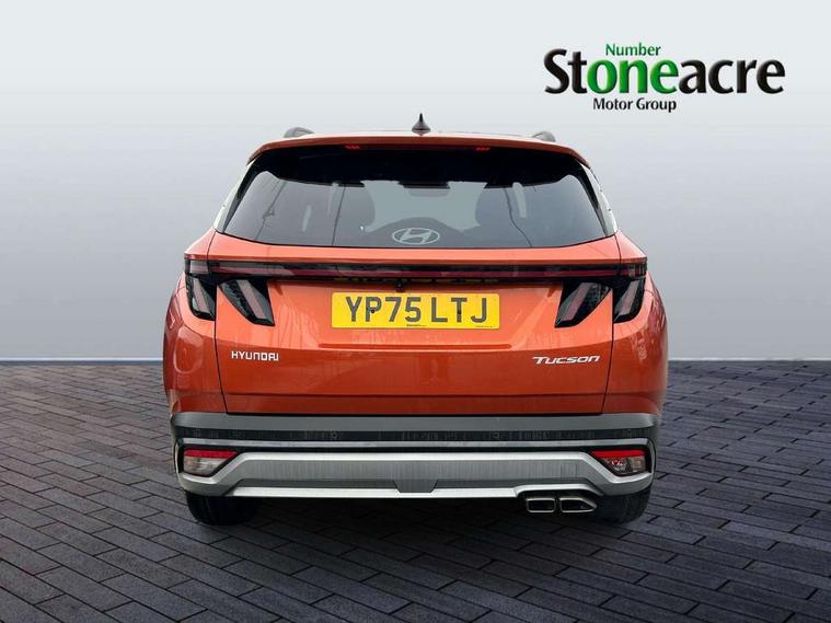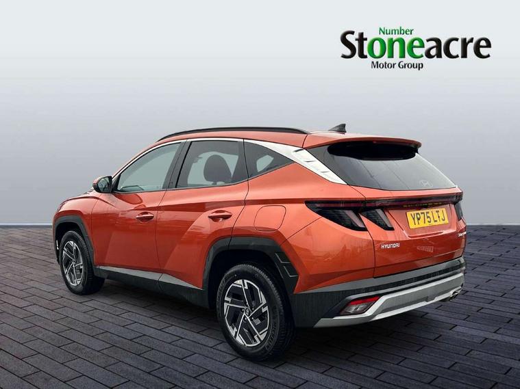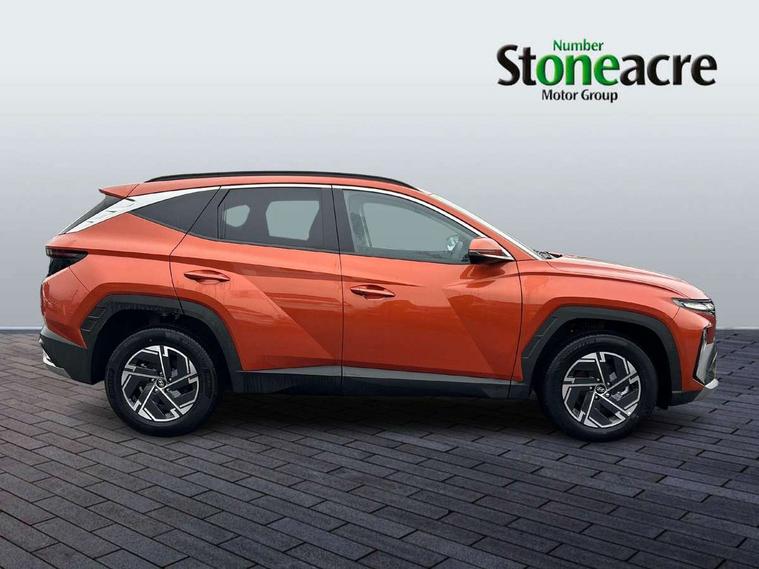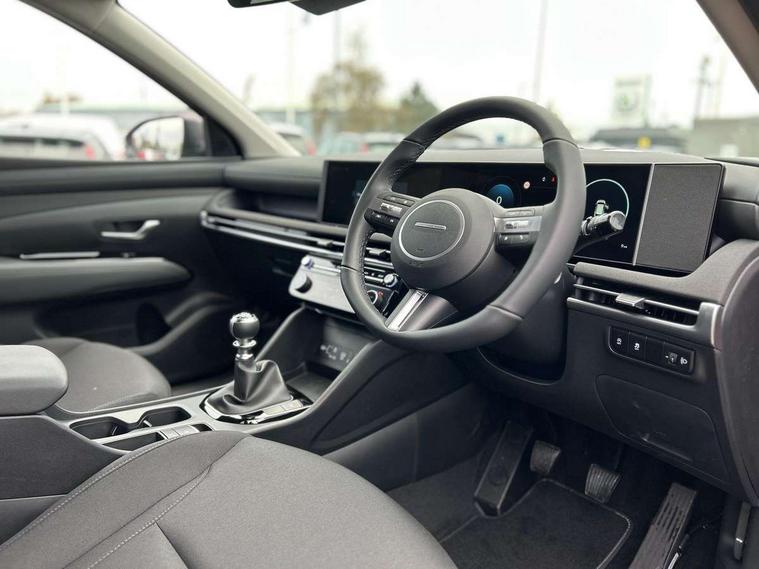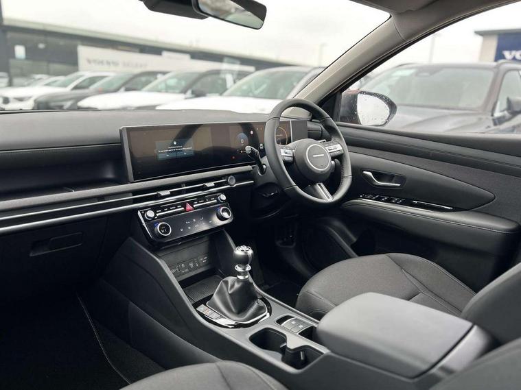 12.3" LCD display with driver's supervision instrument cluster, 12.3" widescreen navigation with bluelink and mapcare, Bluetooth system, Cruise control, Digital clock, Drive mode selector, Driver attention warning, E-call, Emergency stop signalling system, Forward Collision Avoidance Assist (FCA) - Car, Pedestrian and Cycle, Front and rear parking sensors, Hyundai road side assistance, Intelligent speed limit assist, Lane follow assist, Lane keep assist, Over the air updates(OTA), PAS, Rear camera and guidance parking system, Rev counter, Tailgate open warning light, Trip computer, Trip odometer, Voice recognition, Water temperature gauge, Windscreen washer fluid sensor and warning indicator, Wireless Apple CarPlay/Android Auto, Wireless phone charging pad, 2 front and 2 rear speakers with 2 tweeters, 2 front and 2 rear USB-C ports, DAB Digital radio, Steering wheel mounted audio/phone controls, Adjustable intermittent front windscreen wipers with aero wiper blade, Auto dimming rear view mirror, Automatic defog system, Automatic headlights with dusk sensor, Automatic windscreen wipers with rain sensor, Black wheel arches, Body colour bumpers, Body colour door mirrors with integrated indicators, Body colour exterior door handles, Electrically adjustable, heated and power folding door mirrors, Follow me home headlights, Front and rear electric windows with anti-trap mechanism and one touch control, Front fog lights, LED 3rd brake light, LED daytime running lights, LED Headlights, LED rear lights, Positioning Lights - LED, Privacy glass - Rear windows and tailgate, Rear side wing doors, Rear wash/wipe with intermittent wipe setting, Roof rails, Soft touch rear door paneling, Tinted glass with windscreen shade band, Trailer stability assist, 12V power outlets in front console and luggage compartment, 3 seat bench in 2nd row, 40/20/40 split folding rear seat, 64 colours interior ambient lighting, Adjustable head restraints (Up and down), Cupholders in rear armrest, Door courtesy lights, Driver and passenger sunvisors with illuminated LED vanity mirrors, Driver's seat manual height adjust, Dual zone climate control, Front and rear door pockets, Front armrest with storage box, Front centre console and door bottle holders, Height/reach adjustable steering column, Illuminated/air conditioned glove compartment, ISOFIX child seat anchorage points attached on outer rear seats, Leather wrapped steering wheel and gear knob, LED interior lighting, Luggage compartment lighting, Luggage cover, Luggage hooks, Luggage net, Manual height adjustable front passenger seat, Map and reading lights, Premium cloth upholstery, Rear seat remote folding function, Reclining rear seats, Retractable load cover, Single front passenger seat, Sunglasses holder, Touch sensitive climate controls with temperature dials, Underfloor boot compartment, Trailer wiring package - Tucson, 3x3 point rear seatbelts, Active bonnet, Airbag - Front, front side, curtain and centre front airbags, Anti-lock brake system (ABS), Brake assist function, Childproof rear door locks, Curtain airbag roll over sensor, Downhill brake control, Electric parking brake, Electronic stability control, Front and rear seatbelt reminder, Front passenger airbag deactivation switch, Front seatbelt pretensioners, Hill start assist control (HAC), Multi-Collision braking, Outer rear seatbelt height adjustment, Seatbelt height adjustment for front seats, Traction control, Tyre pressure monitoring system with individual tyre pressure display - TPMS, Vehicle stability management, Deadlocks, Immobiliser, Locking wheel nuts, Remote control central locking, Smart key with keyless entry and engine start/stop button, Speed sensitive auto door locking, Thatcham category 1 alarm, 17" Alloy wheels, Tyre repair kit,
