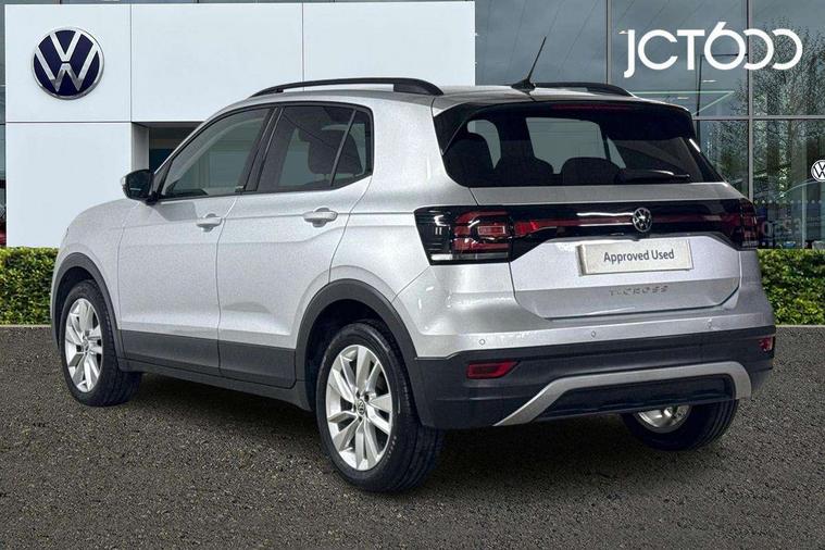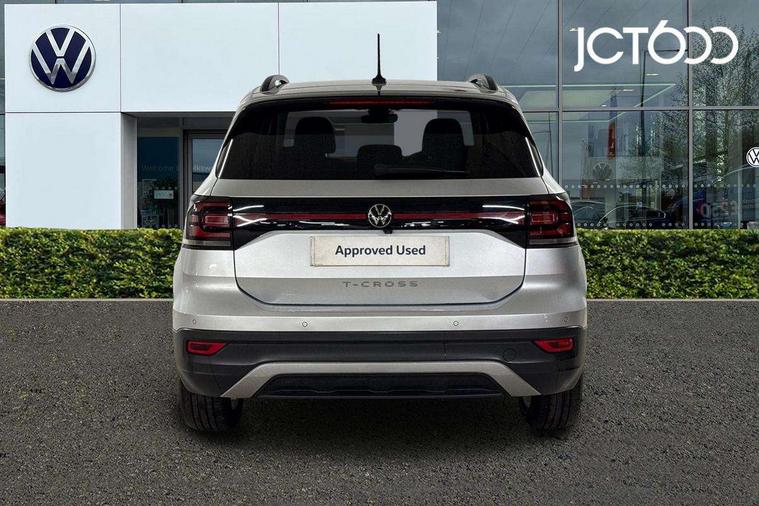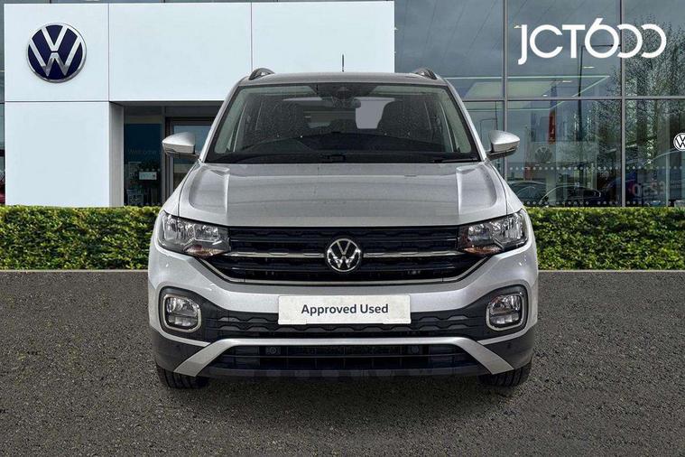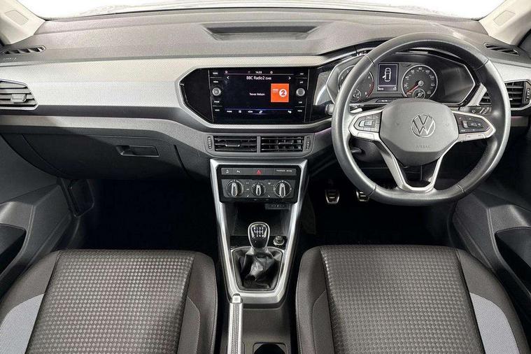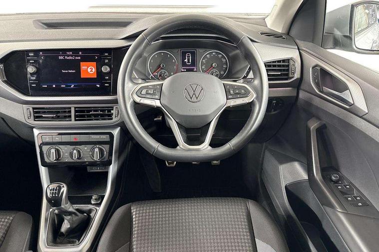 'Lights On' Reminder warning buzzer, Adaptive cruise control including front assist, forward collision warning, autonomous emergency braking, speed limiter, Blind spot monitoring, Bluetooth telephone and audio connection for compatible devices, Car information display, Driver alert system, eCall emergency call system, Lane assist, Low washer fluid warning light, Multifunction computer with visual gear change recommendation for fuel consumption, Operating permit alteration, Power assisted speed sensitive steering, Speedo, rev counter, electronic odometer, trip, service interval display, exterior temperature and fuel gauge, Stop/start system, Warning sound and light for doors and tailgate open, Warning sound and light for front seatbelts unfastened, We Connect Go Dongle, Wireless Car net app connect with Apple CarPlay, combined functionality of Apple CarPlay/Android Auto and MirrorLink, Battery regeneration during braking, Misfuel prevention device, 2x USB connection with USB charging sockets and in rear centre console, DAB Digital radio receiver, Diversity antenna for FM reception, Multi device interface (MDI) with USB connection, Music playback - MP3, WMA and AAC files, Premium USB cable for Apple or Android smartphone compatibility, Simultaneous pairing of 2 compatible mobile devices, Title and cover art display, 3D active badge on B-pillar, Active door sills, Active sill panel trims, Automatic hazard lights activation under emergency braking, Black roof rails, Body colour door handles, Body coloured bumpers, Dusk sensor + automatic driving lights, Electrically foldable, adjustable and heated door mirrors with reverse activated kerb view adjustment on passenger's side, Front and rear electric windows, Front fog lights with static cornering function, Galvanised body, Heated rear window, High level 3rd brake light, Lower door sills and door pillars in black, Radiator grille with high gloss surface and chrome strip, Rear fog light on one side, reversing light on both sides, Rear lights incorporating LED technology, Rear side wing doors, Rear tinted glass 65% approx light absorbing from B pillar backwards, Rear window aerial, Rear windscreen washer and wiper with interval delay, Reflectors in all doors, Tailgate with integrated roof spoiler, Windscreen wipers/ intermittent wipe + 4 position delay, 12V Accessory socket in centre console, 3 rear head restraints and 3 rear three point seat belts with ECE label, 3 seat bench in 2nd row, 60/40 split folding rear seat backrest, Ambient lighting and sourround lighting, Brushed stainless steel pedals, Drawer under drivers seat, Driver and front passenger sunvisor with vanity mirror, Driver's sunvisor with ticket holder, Dust and pollen filter, Front + rear carpet mats, Front and rear reading lights X 2, Front centre armrest with storage compartment, Front seat back storage pockets, Front seats with adj lumbar support, Glovebox, Heating and fresh air system with 4 stage blower, Height/reach adjust steering wheel, Instrument lighting white adjustable panel illumination, Interior light with delay, Isofix child seat preparation for 2 rear child seats, Luggage compartment cover, Luggage compartment lighting, Moveable and foldable Rear bench seat, Single front passenger seat, Storage compartment in drivers and front passengers door, Three spoke multi-function leather trimmed steering wheel and gearknob, Trapeze cloth upholstery, Variable boot floor, Winter pack - T-cross, Anti-lock Braking System (ABS) with Hydraulic Brake Assist (HBA), Automatic post collision braking system, Driver and front passenger safety-optimised head restraints, Drivers and Front Passengers airbags with front passengers airbag deactivation switch, ESC with EDL, ASR, EDTC and trailer stabilisation function, Extended and proactive pedestrian protection, Front and rear curtain airbags, Front seat side impact airbags, Height adjustable 3 point automatic front seatbelts with pretensioners, Hill start assist, Pre crash preventive occupant protection, Rear door child safety locks, Rigid safety cell with front and rear crumple zones, Single torn horn, Tyre pressure loss indicator, Volkswagen roadside assistance, Alarm with interior protection and deactivation via infotainment system, Child security locks in rear doors, Electronic engine immobiliser, Remote tailgate unlocking using key fob, Decorative strips in doors in matt silver/ center console, 17" Clayton alloy wheels + anti theft wheel bolts, Breakdown kit,