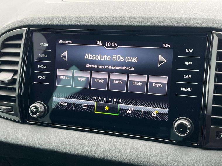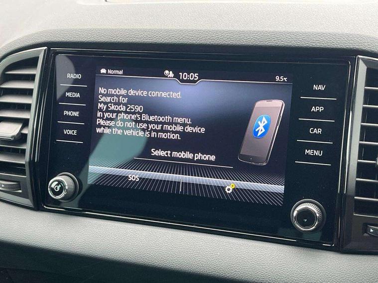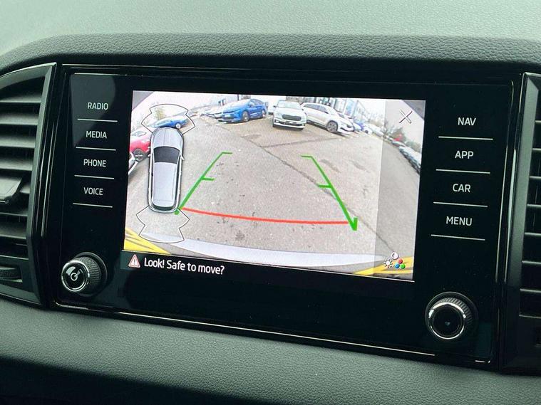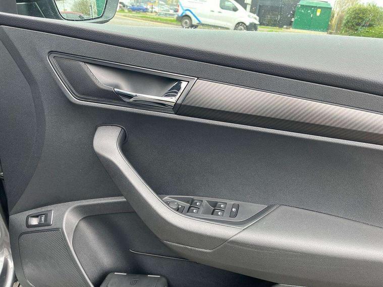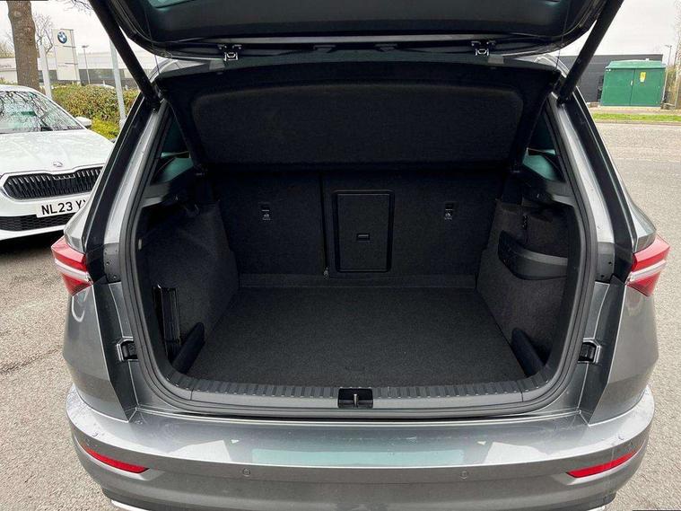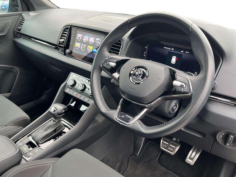 8" Digital display, Care connect, Driver fatigue sensor, Emergency services call system, Outside temperature gauge, Service interval indicator, SmartLink wireless for Apple and wired for Android, Start/stop system with regenerative braking, USB C Port x 2 in front centre console, Virtual cockpit, Virtual pedal with electrically operated boot door, 8 Speakers, DAB radio with Bluetooth, USB connection, Acoustic glass, Aero front windscreen wipers with intermittent function, Auto dimming rear view mirror with light and rain sensors, Black door mirrors, Black electric window control buttons, Black radiator grille, Black roof rails, Body colour door handles, Dynamic headlight range control with cornering light function, Electric front and rear windows with child proof lock, Front door steps with SportLine logo, Heated rear windscreen, LED daytime running lights, LED rear lights with high functionality welcome effect and dynamic indicators, Light assistant (coming/leaving home/tunnel light), Panoramic sliding sunroof, Plastic scuff plates, Privacy glass, Protective door side sills in body colour, Rear diffuser, Rear side wing doors, Rear spoiler, Rear window wiper with washer system and intermittent control, Safety reflectors on front doors, Skoda lettering on tailgate in black, Sportline badge on front fender, Sportline decorative inserts with badging, Sports front and rear bumpers, 1.5 litre bottle holders in driver and front passenger door panels, 12V socket in boot, 12v socket in front centre armrest with storage compartment and rear air vents, 2 Folding hooks and nets in boot, 3 rear height adjustable headrests, 3 seat bench in 2nd row, 3 spoke leather sports multifunction steering wheel and silver stitching with gear shift paddles, 4 foldable roof handles with rear coat hooks, Black floor carpet, Black roof headlining, Chrome inner door handles, Double sided boot floor, Foldable hooks in the boot, Front head restraints, Height adjustable front three point seats belts with tensioners, Height/reach adjust steering wheel, Ice scraper, Illuminated glovebox, Illuminated luggage compartment, Interior noise suppression, Isofix child seat preparation outer rear, Manual lumbar support for front seats, Pen holder, Pollen filter, Rear boot cover, Rear reading lights, Rear seats fixed folding and divided 60:40, Rubbish bin door, Safety vest holder, Single front passenger seat, Storage box in upper central dashboard closed, Sunvisors with illuminated vanity mirrors, Textile floor mats, Ticket holder, Titan black interior ceiling, Welcome animation with sportline logo, Light Pack - Karoq, Parking pack - Karoq, Automatic door unlocking in case of crash, Automatic fuel cut off in case of crash, Child locks on rear doors, Driver airbag, Electronic parking brake with auto hold function, Emergency rear braking signal, ESC including ABS, MSR, ASR, EDS, HBA, DSR, RBS, MKB and traction control, Front side airbags, Hill hold control, Knee airbags, Passenger airbag with switch-off function, Pedestrian monitor, Seatbelt reminder signalisation and pretensioner for all seats, Three point seatbelts rear, Two tone horn, Tyre pressure display, Tyre pressure monitor, Alarm with interior monitoring, back up horn and tilt sensor with safe function, Electronic engine immobiliser, Keyless entry and start/stop, Remote central locking with 2 remote folding keys, Black air vent surround, Black centre console, Satin black dashboard, Satin black door trim, 19" Vega black polished alloy wheels, Anti-theft wheel bolts protection, Matt black aero hub caps, Storage on wheel cover, Tool kit,