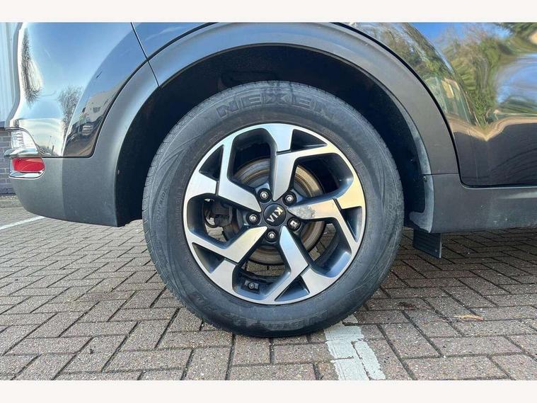 3.5" supervision cluster display, 7" touchscreen satellite navigation with European mapping and traffic messaging channel, Android auto with voice control, Apple car play with voice control, Bluetooth connectivity with voice control, Cruise control + speed limiter, Driver attention warning, Emergency stop signalling system, Kia connected services featuring TomTom live, Lane keep assist, Rear parking sensor, Reversing camera, Speed limit information, Speed sensitive power steering, Trip computer, Windscreen washer level indicator, Intelligent Stop and Go, 6 speaker audio system, Bluetooth audio streaming, DAB Radio with MP3, Rear USB port, Steering wheel mounted audio controls, USB/iPod/auxiliary input connections, All round electric windows with drivers auto up/down function, Auto dimming rear view mirror, Automatic headlights, Automatic lighting control, Bi-Function halogen headlights, Black side sill and wheel arch body mouldings, Body colour door handles with chrome inserts, Body colour door mirrors, Chrome front bumper insert, Chrome grille surround, Chrome window surround, Electrically adjustable/heated/folding door mirrors with LED indicators, High beam assist, High gloss black diamond mesh radiator grille, LED daytime running lights, Privacy glass (rear side windows and rear screen), Projection front fog lights, Rain sensing front wipers, Rear spoiler, Rear wiper, Roof rails, Shark fin antenna, Speed sensitive front wipers, Tinted glass, Trailer stability assist, Welcome and follow-me home light functionality, Wide view drivers door mirror, 12V power in front and rear centre console, 3 x passenger assist grips, 60/40 split folding rear seat, Air filter, All-round height adjustable headrests, Centre cabin light, Centre console storage box, Door armrest in leather, Driver and front passenger side sunvisors with illuminated vanity mirrors, Driver's seat manual height adjust, Drivers seat power lumbar support, Dual zone automatic air conditioning, Front and rear door storage, Front cabin LED map light with sunglasses case, Front door courtesy reflectors, Front seat and rear pockets, Front/rear centre armrests, Gear shift indicator, Glovebox illumination, Heated front and outer rear seats, Ignition key lock illumination, Interior door lock/unlock function, ISOFIX Child seat top tethers and anchor fixings, Leather steering wheel, Leather trimmed gearshift, Light grey headlining, Luggage area light, Luggage area load cover, Luggage net with hooks, Premium cloth upholstery, Rear centre armrest with cupholder, Rear coat hooks, Satin chrome interior door handles, Tilt/telescopic adjustable steering wheel, Ventilation ducts to rear compartment, Active front headrests, All round 3-point seatbelts, Anti-lock braking system with electronic brakeforce distribution, Dual front side airbags, Electronic stability control with downhill brake control, ESP + traction control, Front passenger airbag cut-off switch, Front seatbelt pretensioners + load limiters, Height adjustable front seatbelts, Hill start assist control (HAC), Impact sensing auto door unlocking, Rear door child safety locks, Twin curtain airbags with roll over sensor, Twin front airbags, Tyre pressure monitoring system, Advanced anti-theft system including immobiliser and alarm, Door deadlocks, Locking wheel nuts, Remote central door locking with fold away key, Speed sensitive auto door locking, Visible vehicle identification number, Metallic finish centre fascia, 17" Alloy wheels, Tyre mobility kit,