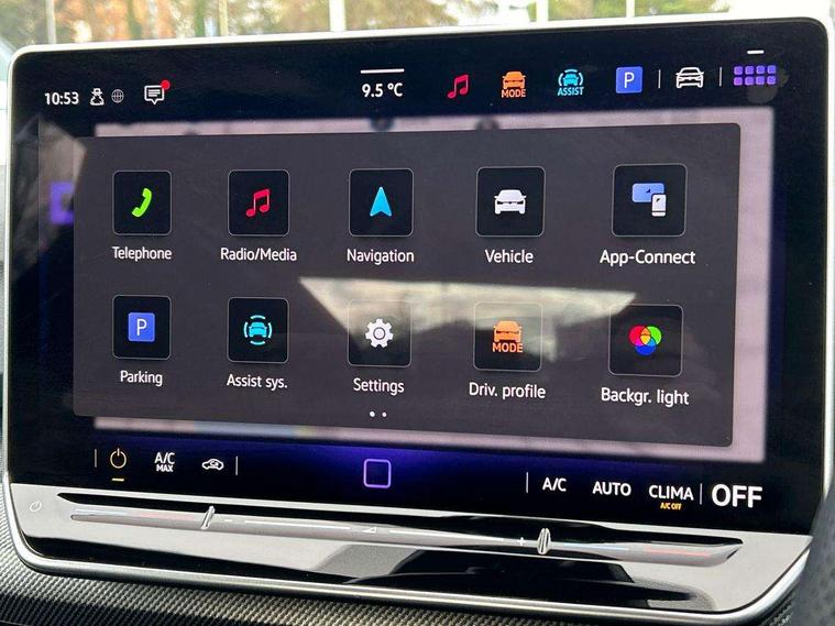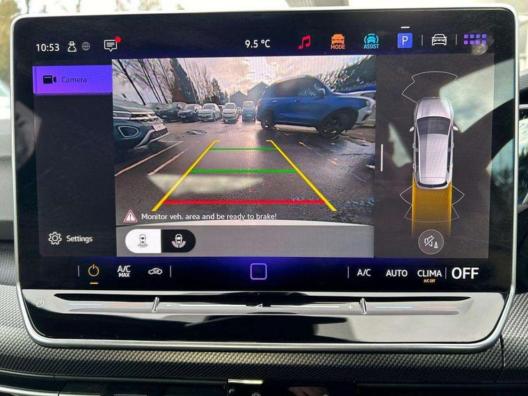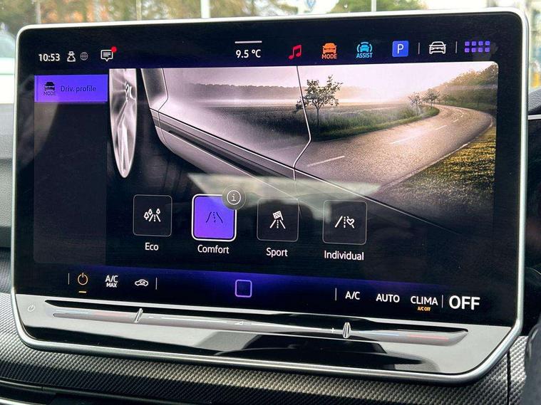 Activated carbon canister, Adaptive cruise control (ACC), Advanced driver attention and drowsiness monitor, Dynamic road sign display, Dynamic steering, E-Sim card for online connectivity, eCall emergency call system, Multi-color Digital cockpit pro, selection of different info profile possible, Multifunction front facing camera for distance control, Navigation system, Oncoming vehicle braking when turning including swerve support, Preparation for light assist system, Speed limiter, Speedo, rev counter, electronic odometer, trip, service interval display, exterior temperature and fuel gauge, Traffic jam assist, Voice enhancer and voice control, Warning signal and warning light for front and rear seatbelts not fastened, We connect plus preparation, We connect preparation, Wireless app connect, Petrol Particulate Filter, Start-stop system with battery regeneration (recuperation - energy recovery during braking), XDS electronic differential lock for improved traction and handling, 2 USB C ports in front, 2 USB charging sockets on the centre console in the rear charging capacity upto 45W, Comfort telephony + wireless charging, without wireless aerial connection, Digital radio reception (DAB), Diversity antenna for FM reception, Gaming platform via car app, Infotainment system with 12.9" display, Mobile phone interface with inductive charging feature, 3rd brake light, Auto headlights, Automatic headlamp activation with Coming home and Leaving home feature, Body colored bumpers in R-Line style, Body colour door handles, Exterior ambient lighting with illuminated door handles, Exterior mirrors convex on the left and aspherical on the right, Front and rear electric windows, Heat insulating windshield made of laminated glass, LED daytime running lights, Rear exhaust tailpipe, Rear fog light on one side and reversing lights on both sides, Rear side wing doors, Rear windscreen washer and wiper with interval delay, Remote electrically foldable door mirrors, puddle lights and reverse activated passenger's door mirror, Welcome light with surround lighting, 12V socket in front centre console, 12V socket in luggage compartment, 3 rear head restraints, 3 seat bench in 2nd row, Ambient lighting with 30 colour including LED light unit in front footwell with selectable light colour, Brushed stainless steel pedals, Carpet mats, front and rear, Chrome plated radiator grille inserts, air vent surrounds and light switch surrounds, Front centre armrest, Integrated front head restraints, ISOFIX anchors for child seats on outer rear bench seats and on front passanger seat compatible for i-Size, Leather gearshift handle, Luggage compartment lighting, Premium sports seats in front, Rear cupholder and loadthough, Single front passenger seat, Soul black instrument panel, Split folding backrest with centre armrest and unsplit rear seat bench, Storm grey roof lining, Sun visors with illuminated vanity mirrors, 3 point height adj front seatbelts + pretensioners, 3 rear three point seatbelts, ABS, Autonomous emergency braking front assist with pedestrian and cyclist monitoring, Child locks on rear doors, Driver and front passenger airbag with front passenger airbag deactivation, Electronic parking brake with auto hold, ESC (Electronic Stability Control), Extended pedestrian protection measures, Rear disc brakes, Two tone horn, Tyre pressure loss indicator, Volkswagen roadside assistance, Anti theft wheel bolts, Preparation for alcohol interlock, Decorative inserts carbon grey for dashboard and front door trim panels,