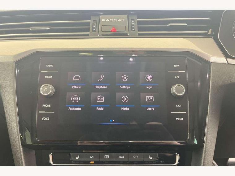 Adaptive cruise control including Front Assist, radar sensor controlled distance monitoring system, City emergency braking system, Driver alert system, Driver profile selection, Exterior temperature gauge with frost alarm, Lane assist, Low washer fluid warning light, Multifunction computer includes visual gear, One touch indicator turn signal, Proactive occupant protection, Security and service including e-call, Speed sensitive power steering, Speedo and rev counter, electronic odometer, trip, service interval display and fuel gauge, Start/Stop function, Traffic jam assist, Warning buzzer and light for front seatbelts unfastened, Wireless app connect, Battery regeneration during braking, Misfuel prevention device, Petrol Particulate Filter, Aerial for radio integrated into rear windscreen, DAB Digital radio receiver, Auto dimming interior rear view mirror, Automatic headlights with dusk sensor, Automatic leaving home and manual coming home lighting functions, Black radiator grille with chrome louvres, Body colour bumpers, Body colour door handles, Body coloured door mirrors with intergrated indicators, Chrome side window surrounds, Front and rear electric windows, Fully galvanised body, Gloss black finish on B pillar, Heated rear window, High level 3rd brake light, LED rear lights, LED rear number plate lights, Rain sensor, Rear tinted glass from B pillar backwards, approx 65% tinted, Remote electrically adjustable and foldable heated door mirrors including automatic dimming function on drivers side door mirror puddle lights, Volkswagen roundel, Warning lights for open tailgate and doors, White instrument lighting, 12V socket in front centre console, 12V socket in luggage compartment, 60:40 split folding rear seat with backrest, Driver's door storage compartment for 1.0 litre bottle, Front + rear carpet mats, Front and rear interior lighting with delay and dimming function, Front centre armrest with storage compartment and two rear air vents, Front cupholders x2 with covers, Front passenger storage compartment for 1.5 litre bottle, Height adjustable rear seat head restraints (x3), Height/reach adjust steering wheel, Illuminated vanity mirrors, Isofix child seat preparation, outer rear seats, Load lashing points x 4 in luggage compartment, Load through provision, Lockable, illuminated, cooled glovebox, Luggage compartment lighting, Rear seat centre armrest with storage compartment, Storage compartment in rear doors, Storage compartment in roof console with cover, Vienna leather upholstery + heated front seats + heated windscreen washer jets, 3x3 point rear seatbelts, ABS (Anti locking brake system) includes BAS (Brake assist) and EBD (Electronic brake pressure distribution), Automatic post collision braking, Disc brakes front and rear, Door open warning reflectors, Driver/Front Passenger airbags, Drivers and front passengers safety optimised head restraints, longitudinal and height adjustable, Drivers knee airbag, Electronic parking brake with auto hold, First aid kit, Front airbags with deactivation switch, Front and rear passenger curtain airbags, Front side impact airbag, Height adjustable front 3 point seatbelts + pretensioners, Hill hold function, Pre crash preventive occupant protection, Rear seat side impact airbags, Rigid safety cell with front and rear crumple zones, Tyre pressure loss indicator, Volkswagen roadside assistance, Warning light for rear seat belts if unfastened, Alarm with interior protection and deactivation via infotainment system, Electronic engine immobiliser, Chrome air vent and instrument surround, Cross hatch decorative inserts in dash and door panels,