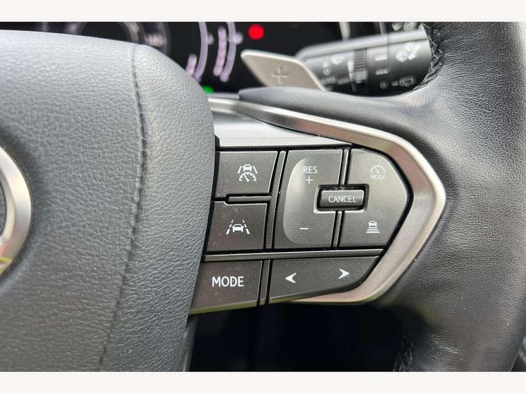 4 driving modes EV/Eco/Normal/Sport, 7" display in instrument binnacle, Bluetooth telephone connectivity, eCall emergency system, Electric speed sensitive power steering, Intelligent parking sensors - 4 front and 4 rear, Lane change flasher function, Lexus link connect - Cloud based navigation, cloud based voice assistant, always online and 9.8" VGA touchscreen, Push button starter, Reversing camera with back guidelines, Service interval indicator, Wireless Apple CarPlay and wired Android Auto, All Wheel Drive (AWD), Hybrid automatic transmission, Vehicle Dynamics Integrated Management (VDIM), Vehicle Stability Control (VSC), 10 speakers, 4 USB ports - 2 front, one USB C, 2 rear USB C, DAB Digital radio, Auto dimming interior rear view mirror, Automatic headlights, Bi LED headlights, Double hidden exhaust pipes, Front and rear one touch power windows, with anti-jam protection, Heated, auto-folding, auto-dimming outside mirrors with reverse tilt function and turn indicators, LED brake lights and rear lights with emergency brake signal, LED daytime running lights, LED front fog lights, LED Indicators, Light green UV acoustic rear doors & rear glass, Power back door system, Rain sensor windscreen wipers, Rear side wing doors, Rear wiper, Roof rails, 12V accessory port centre console and luggage compartment, 2 cupholders in front centre console, 2 x fixed shopping bag hooks in boot, 2 x sun visors with vanity mirror and lamp, 3 seat bench in 2nd row, 4 x tie down hooks in the boot, 6 tie down hooks in boot, 6 way manually adjustable front seats, 60/40 split folding rear seat, Adjustable rear seat backrest, Card holder installed in driver and passengers sun visors, Centre armrest with storage box, Dual climate control air conditioning system, Front and rear head restraints, Front and rear textile carpet mats, Front passenger seat, Heated front seats, Leather gear lever, LED interior illumination, Power adjustable leather steering wheel with paddle shifts, Rear centre armrest with 2 cupholders, Tahara leather upholstery, Whiplash Injury Lessening (WIL) feature (active headrest) for seats, 2 x Isofix child rear seat restraints, 3 point ELR front seatbelts with pretensioners, 3x3 point rear seat belts, ABS, Adjustable seat belt anchor points, Driver and front passenger 2 stage airbag, Driver/front passenger side airbags, Drivers knee airbag, E-Latch electric door release, EBD + Brake Assist, ECB (Electronically Controlled Brake System), Electronic parking brake, Front and rear curtain shield airbags, Front center airbag, Front passenger seat cushion airbag, Hill assist control, Lexus safety system - dynamic radar cruise control, pre collision system day and night, lane tracing assist, road sign, automatic high beam, OTA, Manual rear child locks, Passenger airbag cut-off device, Traction control, Tyre pressure warning, 2 x remote key fobs, Anti-theft system with alarm, intrusion sensor, glass breakage sensor, tilt sensor and engine immobiliser, Locking wheel nuts, Speed sensitive auto door locking, VIN Window etching, Black microdot inlay, Tyre repair kit,