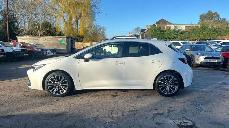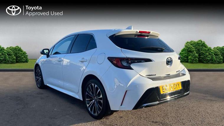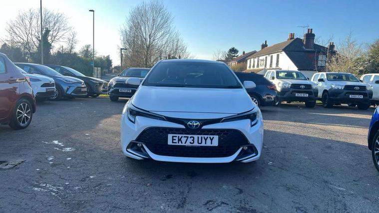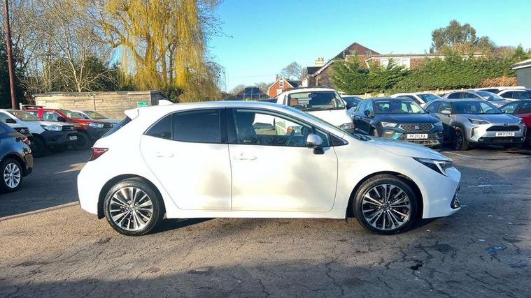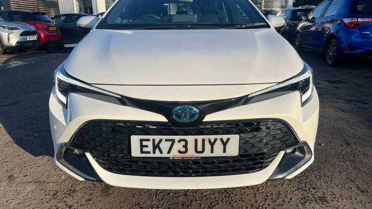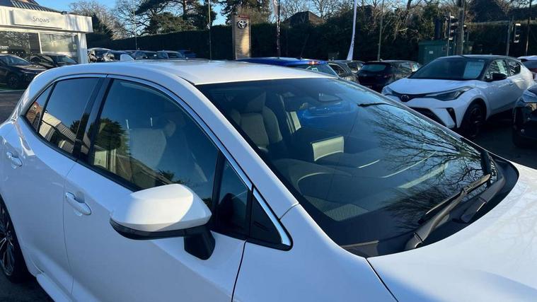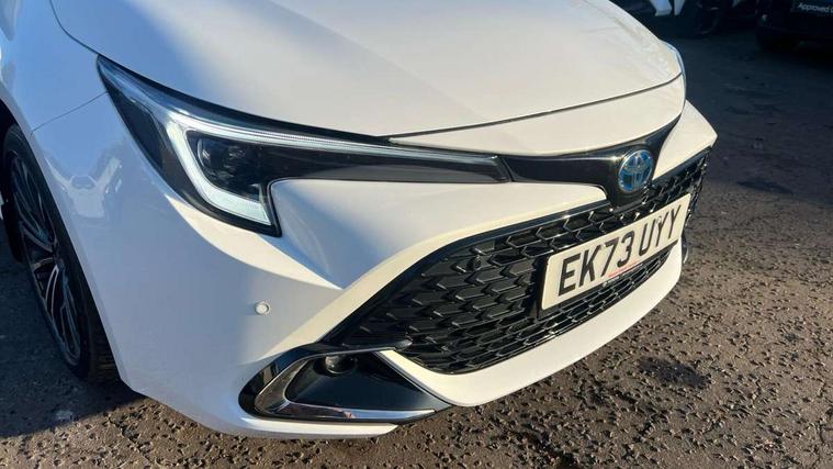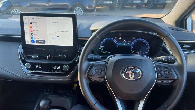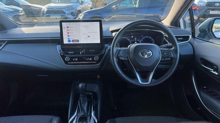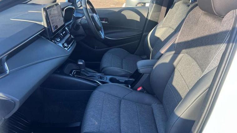 10.5" Multimedia display screen, Attention assist, Bluetooth telephone connectivity, Connected car functionality upgrade, tracker, remote status and e-care, Drive mode select (Eco, Normal), E-call, Electrically assisted power steering, EV drive indicator, Front and rear parking sensors with auto brake, Full Digital 12.3" TFT Digital Combimeter, Key reminder warning, Lane Departure Alert (LDA) switch on steering wheel, Memory on adjustable speed limiter, MyT connected services, Proactive driving assist (PDA), Reversing camera, Smartphone integration with Apple CarPlay and wired android auto, Tailgate, Toyota remote services, Toyota smart connect navigation, Wireless charger, Gasoline particulate filter, Vehicle Stability Control (VSC), 6 speakers, AM/FM radio, DAB Digital radio, Front USB-C in dashboard, Smart voice assist/ Voice recognition, USB and Aux in connectors + 12V front outlet, Anti-jam protection on power windows, Auto up and down function on all power windows, Automatic folding mirrors, Automatic headlights with high beam assist, Black centre and side air vents, Black metallic meshed front grille, Black toyota logo in front, Body coloured bumpers, Body coloured door mirrors, Body coloured front spoiler, Body coloured outside door handles, COROLLA alloy door scuff plates, Electrochromatic mirror, Follow me home headlights, LED daytime running lights, LED dual beam projector headlights, LED front fog lights, LED High mounted stop light, LED multi reflector in headlights, LED rear combi lights with LED lightguide, Manual headlight levelling system, New grille pattern, Noise reduction layer on windscreen, Piano black diffuser, Power adjustable heated door mirrors, Power front windows, Power rear windows, Privacy glass with UV filter, Rain sensing wipers, Rear bumper decoration with chrome plated inserts, Rear side wing doors, Rear under guard with chrome ornament, Rear window defogger, Rear window wiper, Reverse tilting door mirrors, Roof spoiler, Satin chrome insert on front air vents, Satin chrome insert on front door assist grips, Shark fin antenna, Tailgate release with push button, Time adjustment on intermittent wiper, Turning signal integrated indicators in door mirrors, Unique lower skirt, Unique side rocker with black insert, UV-filter on driver and passenger windows, 2 Shopping bag hooks in luggage compartment, 3 rear headrests, 3 seat bench in 2nd row, 3 spoke leather steering wheel with satin insert + gear knob, 4 tie down hooks in luggage compartment, 60/40 split folding rear seat, Adaptive cruise control (ACC) switch on steering wheel, Adjustable speed limiter switch on steering wheel, Audio, multimedia and telephone switches on steering wheel, Black armrest on centre console box, Black gear shift console, Boot light, Centre room light, Driver and front passenger personal light, Driver and passenger assist grip, Driver and passenger sun visor with mirror and light, Dual zone automatic air conditioning with ECO mode switch, Fabric/synthetic leather upholstery, Front and rear cup and bottle holders, Front door pockets, Front head restraints, Front passenger seat, Front sliding synthetic leather armrest, Heated seats, Illuminated entry system in room lamp, ISOFIX seat fixing (2 fixings on rear outer seats), Leather gear shift with satin chrome on gear shift console, Manual height adjustable for driver and front passenger seat, Manually tilt with sliding driver and front passenger seat, Parcel shelf, Passenger seat back pocket, Pollen filter, Power adjustable lumbar support on driver seat, Power window switches with satin chrome inserts, Rear armrest with 2 cupholders, Rear passenger coat hooks (2), Remote air conditioning, Satin chrome inside door handles, Satin chrome surround on heater control panel, Satin chrome surround on speedometer, Sliding armrest on centre console box, Slow opening glovebox with lights, Textile floor mats, Tilt/telescopic steering column, Voice recognition switch on steering wheel, Whiplash Injury Lessening (WIL) feature (active headrest) for seats, White ambient lighting on open tray and front cup holder, Toyota safety sense 3 pack - Corolla, 3x3 point rear seatbelts, Adjustable driver and front passenger seat belt extender to top anchor point, Anti lock braking system + Electronic brake force distribution, Brake assist function, Child locks on rear doors, Downhill Assist Control (DAC), Electronic parking brake, Emergency brake light signal (EBS), Front passenger airbag on/off switch, Front seatbelt reminder, HAC - Hill start assist control, Rear seat belt reminder, Seatbelt pretensioners and force limiters, Supplemental restraint system (SRS) 7 airbags - dual driver, dual side curtain, side impact and driver knee airbags, Traction control, Tyre pressure warning system, Acoustic vehicle alert system (AVAS), Alarm with motion sensor and immobilizer, Power passenger window lock, Remote central locking + deadlocks, Satin chrome dash trim, Soft touch texture on upper dashboard, Stitching on lower dashboard, 17" Black machined face 5 double spoke alloy wheels, Tyre repair kit, Unique wheel finish with red wheel cap,