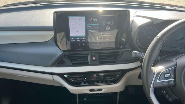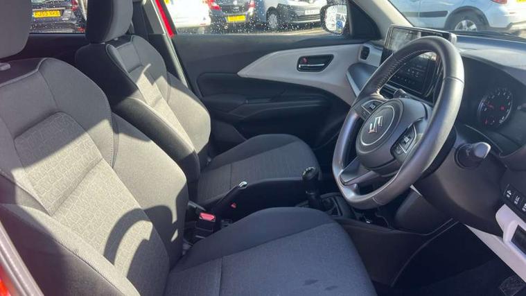 Adaptive cruise control, Automatic start/stop system, Blind spot monitoring, Colour LCD information display, Digital clock, Driver monitoring system, eCall, Fuel consumption display (average/instantaneous) and range display, Intelligent speed control support, Lane departure prevention, Lane departure warning system, Lane keeping assist (LKA), Low fuel level warning light, Navigation system, Outside temperature display, PAS, Rear cross traffic alert, Rear parking camera, Rear parking sensors, Remote fuel cap release, Smartphone integration with Apple CarPlay and Android auto, Suzuki connect, Tailgate, Traffic sign recognition, Weaving alert, 4 speakers + 2 tweeters, 9-inch infotainment display, Auxiliary input socket, Bluetooth audio streaming, DAB Digital radio, Steering wheel audio controls, USB Type A and C, 'Guide me home' headlamps, 1 speed with intermittent rear wiper + washer, 2 speeds front wiper with intermittent + washer, Automatic headlights, Black coloured A & B pillars, Black Upper and lower front grille, Body colour door mirrors and handles, C pillar trim moulding, Electric door mirrors, Electric front windows, Electric rear windows, Green tinted glass, Heated door mirrors, High beam assist, LED daytime running lights, LED High mounted stop light, LED position lamps, LED projector headlamps, LED rear combination lamp, Manual headlamp level control, Rain sensor, Rear fog lights, Rear privacy glass, Rear side wing doors, Rear spoiler, Side spoiler, 1 cup holder in rear, 12V Accessory socket in front console, 2 cup holders in front, 2 Isofix seat anchors, 3 bench rear seats in 2nd row, 3 rear head restraints, 3 spoke leather covered steering wheel, 60/40 split rear seats, Accessory socket, Centre console storage, Centre lower box, Child seat tether anchorages x 2, Chrome handbrake release button, Chrome interior door handles, Cloth upholstery, Door pockets with bottle holder, Driver/passenger sunvisors with ticket holders + vanity mirrors, Front cabin lights, Front headrests, Front map light, Front passenger side assist grip, Glovebox, Heated front seats, Heater, Height adjustable driver's seat, Luggage area lamp, Manual air conditioning with digital control panel, Material door trim ornament, Parcel shelf, Passenger seat back pocket, Pollen filter, Single front passenger seat, Tilt adjustable steering wheel, Tilt/telescopic adjustable steering wheel, 3 point ELR seatbelts for centre seat, 3 point ELR seatbelts front and rear, ABS+EBD+Brake assist, Curtain airbags, Driver airbag, Dual sensor brake support, ESP + traction control, Front and rear seatbelt reminder, Front passenger airbag, Front passenger airbag deactivation, Front seatbelt pretensioners with force limiters, Hill hold control, Rear child proof door locks, Rear seatbelts with pre-tensioners and load limiters, Side airbags with incorporated into front seats, Tyre pressure indicator, Deadlocks, Freewheeling key cylinders, Immobiliser, Keyless entry and start, Light - on and Key in reminder, Locking wheel nuts, Remote central locking, Painted instrument panel ornament, 16" Painted alloy wheels, Emergency flat tyre repair kit,