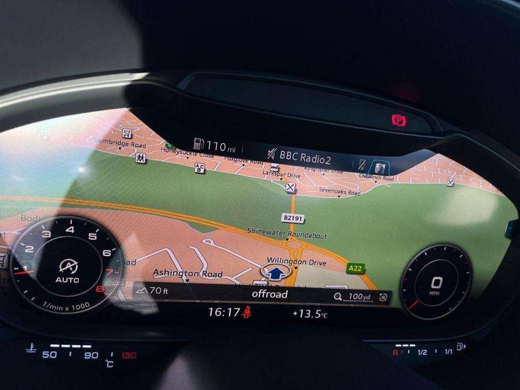 Audi drive select, Audi virtual cockpit - 12.3" high-resolution LCD display with fully customisable instrument cluster, Cruise control + speed limiter, MMI touch panel, Mobile phone preparation with bluetooth interface, Progressive power assisted steering, Service interval indicator, Sports suspension, Audi music interface, Auxiliary input socket, Bluetooth audio streaming, DAB Digital radio, MMI Radio with CD player and SD/XC card slot, Auto headlight range control, Body colour bumpers, Body colour door mirrors, Electric front windows, Green tinted heat insulating glass, LED daytime running lights, LED rear lights, Retractable rear boot spoiler, 3 spoke leather multifunction sports steering wheel, Aluminium door sill trims, Extended aluminium look with stainless steel pedals, Front centre armrest, Front head restraints, Front passenger seat isofix location point, Height/reach adjust steering wheel, ISOFIX on outer rear seats, Split folding rear seat, Top tether anchor plate for isofix child seat, 3 point front seat belts, ABS, ASR traction control, Curtain airbags, Driver/Front Passenger airbags, EDL traction control, Electromechanical parking brake, ESP, First aid kit, Front passenger airbag deactivation, Front side airbags, Head airbags, Seatbelt warning, Tyre pressure warning, Warning triangle, Anti theft alarm, Immobiliser, Keyless start, Locking wheel bolts, Remote central locking, Tyre repair kit,