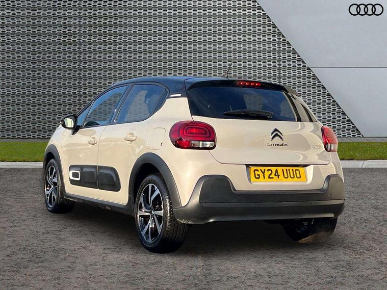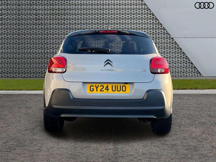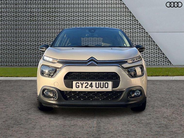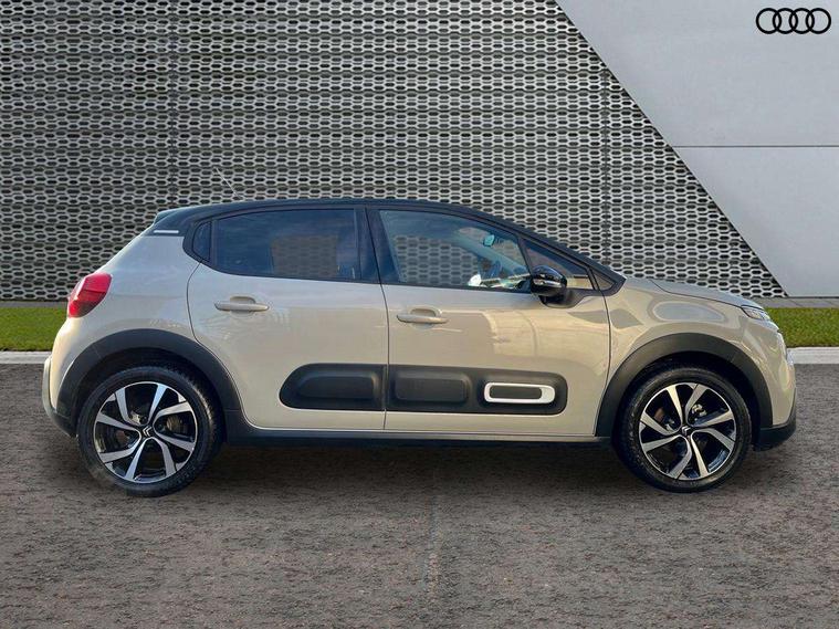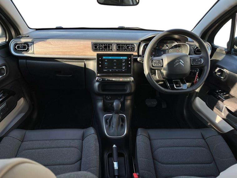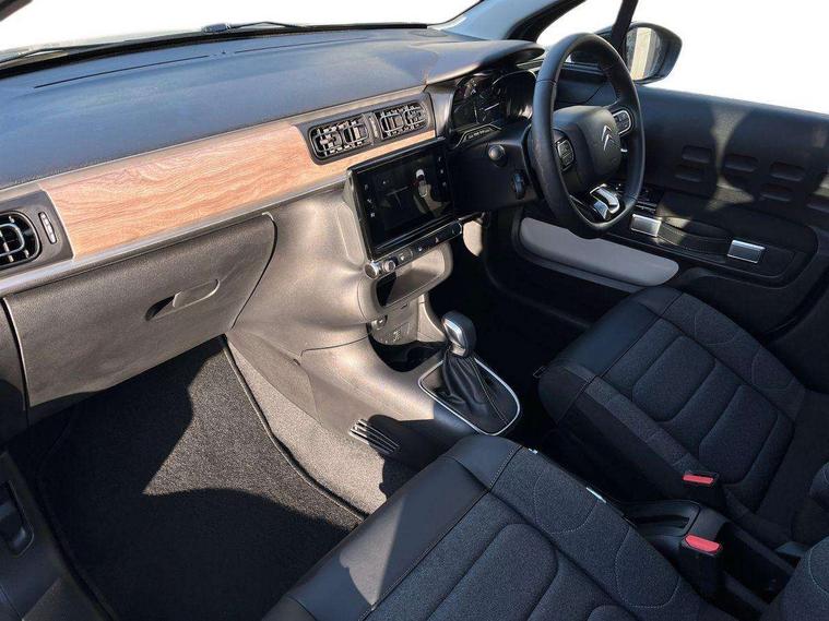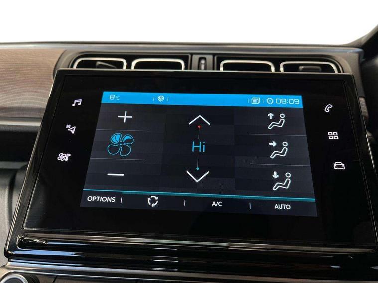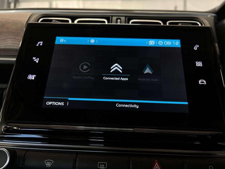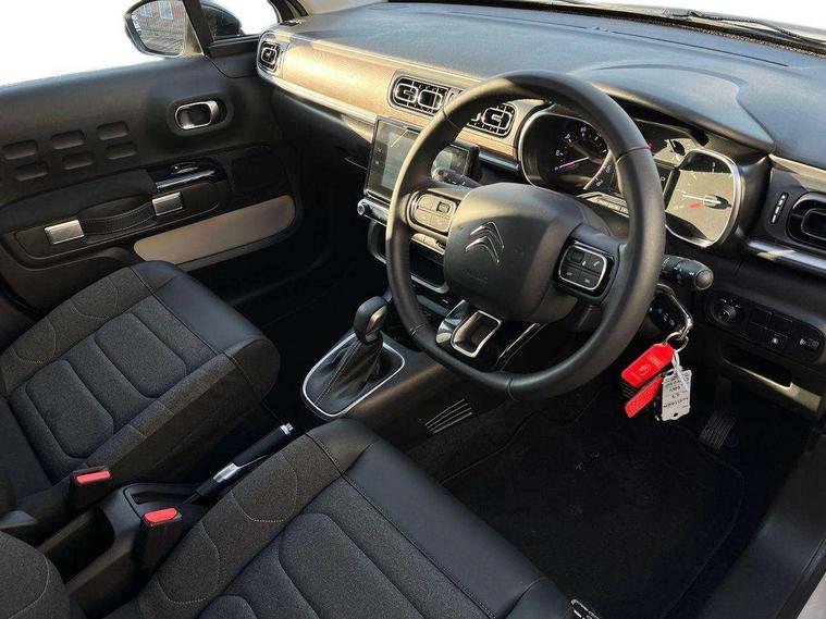 Citroen connect box emergency and assistance system, Citroen connected nav with DAB, 6 speakers, 7" captive touch screen, mirror screen includes apple carplay/android auto and bluetooth, Coffee Break Alert, Cruise control + speed limiter, eCall emergency call system, Exterior temperature display, Lane departure warning system, Multi function trip computer, Rear parking sensors, Reversing camera, Satin chrome surround instrument cluster with white LCD and analogue gauges, Variable assistance power steering, USB connection, 3D rear light signature, Airbump on side door panel, Automatic activation of hazard warning lights, Body colour bumpers, Body colour door handles, Chrome decoration on front face, under chevrons and around daytime running lights, Citroen illuminated signature in LED headlights and LED daytime running lights, Dark tinted tailgate and rear side windows, Electrically adjustable door mirrors, Electrically folding door mirrors, Electrochrome auto dimming interior rear view mirror, Fog lights integrated into front bumper, Front sequential electric windows with one-touch open/close and anti-pinch system, Gloss black finish B pillar, Heated door mirrors, LED Headlights, LED third brake light, Rear sequential electric windows with one-touch open/close and anti-pinch system, Rear side wing doors, Rear windscreen wiper with intermittent mode linked to vehicle speed and automatic activation when reverse gear selected, Roof colour rear view mirror caps, 1/3 to 2/3 split folding rear seat, 12V socket, Automatic air conditioning, Boot light, Cloth/leather effect upholstery, Driver and passenger's sun visor with courtesy mirror, Driver's central armrest, Driver's seat height adjustment, Front lighting panel with map reading lights, Front seats adjustable with forward back slide and adjustable backrest, Height adjustable front head restraints, Height/reach adjust steering wheel, ISOFIX mounting on outer rear seats with top tether and labels indicating fixing points, Leather steering wheel with gloss black + satin chrome elements and audio/telephone controls, Leather trimmed gear lever for automatic gearbox with leather effect gaiter and overstitching lever position indicator, Map pockets in back of driver and front passenger seats, Parcel shelf, Row 2 - Three seats with individually adjustable head rests, Seatbelt unfastened on the move audible and visual alert for front and rear seats, Single front passenger seat, Storage space under touchscreen with rubber mat, Techwood ambience with advanced comfort seats, Three rear headrests, Upholstered armrest in front and rear doors, Safety pack 1 - C3, Safety pack 2 - C3, Visibility pack with automatic lights - C3, ABS with Electronic brakeforce distribution and Emergency braking assistance, Driver and front passenger seatbelts with pyrotechnic pretensioners and force limiters, Driver's airbag, Electric child locks, ESP with anti skid system, Front passenger airbag, Front passenger airbag deactivation, Front side airbags + front/rear curtain airbags, Hill start assist, Manual parking brake with leather handle and chrome finish button, Mono-tone horn, Outer rear seats with pretensioners and force limiters, Three rear 3-point seatbelts, Tyre pressure monitoring system, Anti theft alarm, Automatic door and boot locking when moving off with automatic unlocking in case of impact, Central locking with locked indicator and interior one touch lock button, Immobiliser, Remote control central locking with two plip keys, Technical wood effect dashboard with grey surround, 17" Vector diamond cut alloy wheels, Space saver spare wheel,