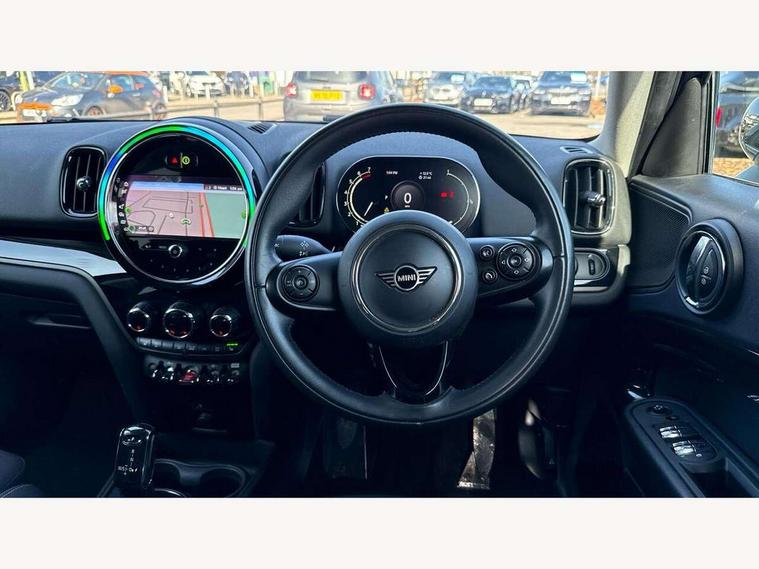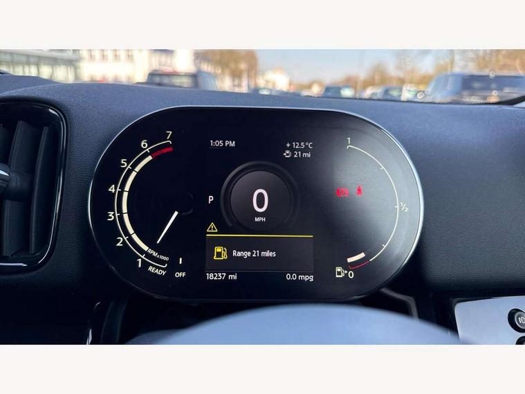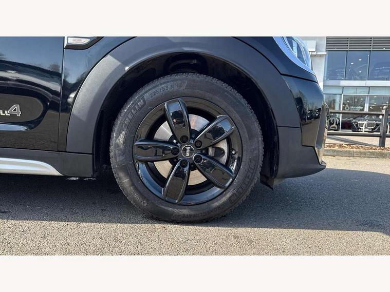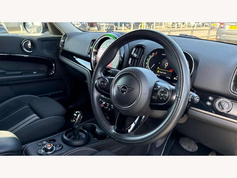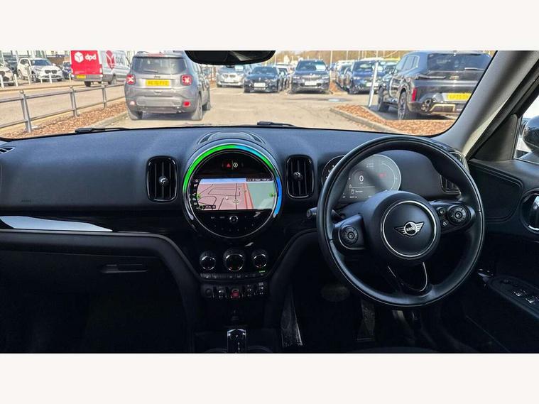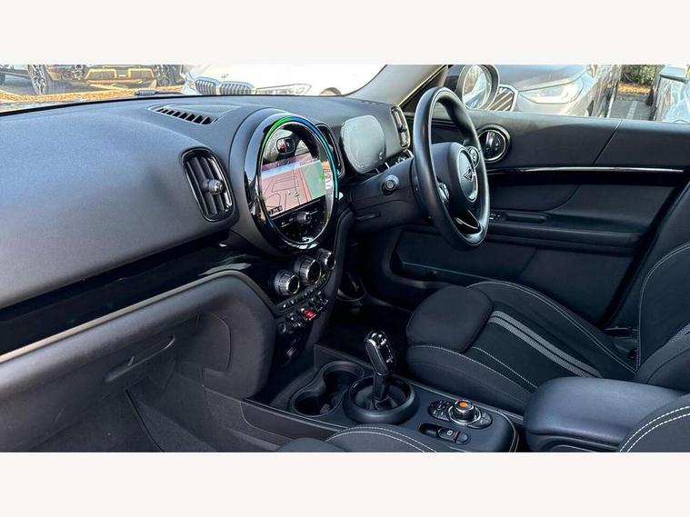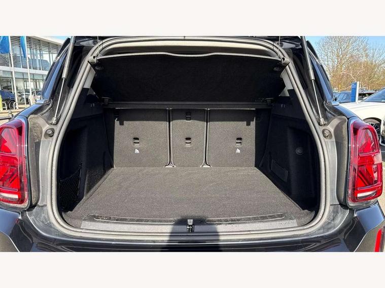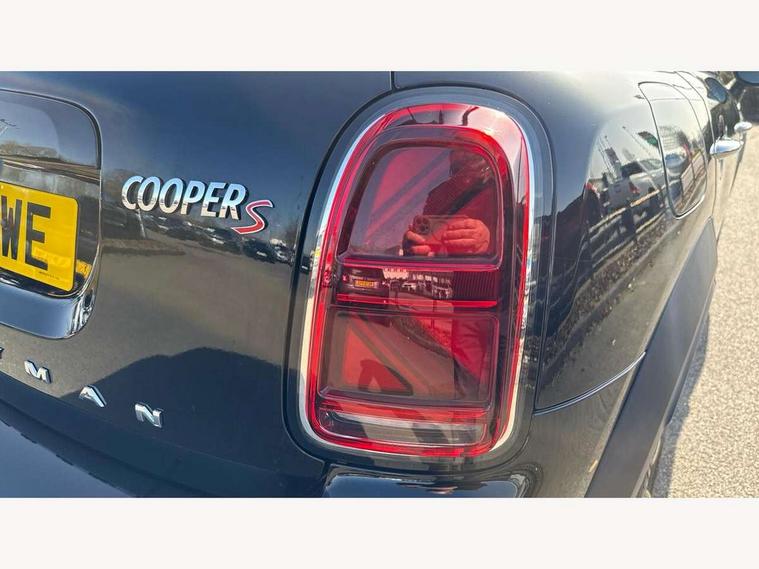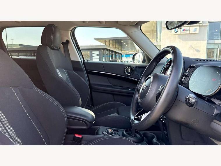 Active Guard incl speed limiting and lane departure functions with auto steering, and front collision warning with brake intervention, Automatic start/stop function with brake energy recuperation, Electro-mechanical speed dependant steering assistance, Instrument cluster, MINI Driving Modes - centre toggle switch to control driving setting (sport, mid and green), Mini E-call, MINI TeleServices, On board computer, Rear parking distance control, Automatic transmission, Double Vanos system, Fully variable valve control, High precision injection, FM tuner and DAB digital radio, Bonnet scoop, Chrome border honeycomb structure radiator grille with S badge, Chrome fuel filler cap, Day time driving lights, Dynamic brake lights, Electric windows, Heated rear window, Heated windscreen washer jets, LED fog lights, LED Headlights, Metal door sill strips with Cooper S imprint, Model logo, Model logo on Tailgate, Rain sensor with auto headlights, Rear fog lights, Rear window wiper, Side scuttle panel with integrated indicator, Split rear doors, Sun/heat protection glass, Twin exhaust tailpipe, White indicator lenses, 12V Accessory socket in centre console, 3 spoke sport leather steering wheel + limiter function and audio controls, 360L luggage compartment capacity, 4 lashing eyes in luggage compartment, 40:20:40 split folding rear seats, Chrome interior highlights, Colour line - Carbon black, Cupholders, English handbook, Front headrests, Glove compartment, Headliner with grab handles and clothes hooks, Height and length steering column adjustment, Interior lighting with 12 basic colours selectable via toggle switch in roof, Isofix rear child seat preparation, Leather gearshift lever and handbrake gaiters, LED reading lights, vanity mirror lights, front foot well light and spotlight on front seats, Manual air conditioning, Mechanical seat adjustment, driver seat height adjust, forward/back and front seats backrest, Multifunction steering wheel, Passenger seat height adjuster, Rear headrests, Storage compartments in doors, Sunvisors with vanity mirrors, Excitement pack - Countryman, Navigation pack - Countryman, 2 tone horn, 3 point seatbelts on all seats, 6 Airbags - front, side, head and seat belt tensioners, Anti-lock braking system (ABS), DSC - Dynamic Stability Control, Electronic handbrake, Front and rear disc brakes, Hill start assist, Tyre pressure monitoring system, Alarm system with tilt sensor, monitoring doors, bonnet interior and tailgate, Auto drive away locking, Deadlocking function, Electronic vehicle immobiliser, Locking wheel bolts, Start/stop toggle with keyless go, Piano black interior trim, Tool kit,
