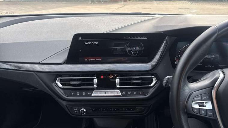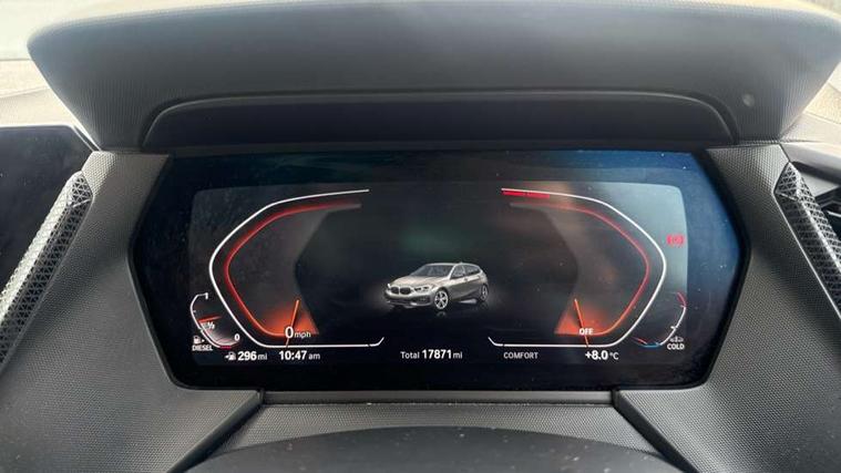 Active guard plus, Attentiveness assist, BMW Online services, BMW Teleservices, Check Control warning system for monitoring of lights and door/luggage compartment open warning, Connected eDrive Services, Cruise control with brake assist, Eco pro mode, Electric power steering with Servotronic steering optimised at all speed ranges, Integrated owners handbook, Lane departure warning system, Oil sensor for level and grade, On board computer, Optimum shift indicator, Personal Profile, Pull away assistant, Speed limiter, 6 speed manual transmission, Aluminium lightweight construction, Anti roll bar front and rear, Balancer shaft, Diesel particulate filter, Drive Performance Control, Electronic differential lock, Bluetooth audio streaming, DAB Digital radio, Auto dimming rear view mirror, Automatic windscreen wipers and automatic headlight, Body colour door handles, Body colour mirror caps, Chrome exhaust twin tailpipes round 90mm in left and right split, Chrome kidney grille with extra wide black, high gloss black vertical slats, Direction indicator side lights in exterior mirrors, Fading support, Follow me home headlights, Front and rear bumper system with replaceable deformation elements, Front and rear electric windows with open and close fingertip control, anti trap facility and comfort closing, Front bumper in Body colour with exclusive Sport air inlets finished in High gloss Black, Front door sill finishers in black plastic with BMW designation, Green tinted heat protection glazing, Heated, electrically adjustable exterior mirror aspheric on driver side, convex on passenger side, High gloss shadowline window frame, Recess cover mirror frames and B/C pillar embelisher trim, High level third brake light, LED daytime running lights, LED eyebrow turn indicators, LED front fog lights, Lightweight engineering, Manual headlight beam throw control, Matt black air guide grilles, Model designation on right side of tailgate, Nearside reverse light in rear light cluster, Preparation for high beam assistant, Rain sensor including auto headlights activation, Rear bumper in Body colour with exclusive Sport design elements finished in High gloss Black, Rear fog lights, Rear window wiper, Shark fin antenna, Visible VIN plate, Welcome lighting, 12V power socket in centre console, 3 rear seat head restraints, 3 spoke sports leather steering wheel in pearl Chrome, Child seat ISOFIX attachment for two outer rear seats and front passenger seat with anchorage points, Conditioned based service, Folding rear clothes hook, Four grab handles integrated in roof lining, Front and rear door pockets, Front and rear door pockets with bottle holders, Front and rear side armrest integrated into door trim, Front armrest foldable with integrated storage compartment, Front sports seats with electric side bolster adjustment, Glove compartment, Height adjustable front head restraints, Manual adjust steering wheel, Multi-function controls for steering wheel, Storage compartment in centre console, Sun visors with vanity mirrors and insert tab, Two zone automatic air conditioning, Velour floor mats, Connected pack professional - 1 Series, Extended storage pack - 1 Series, Interior lights pack - 1 Series, 2 tone horn, 3 point seatbelts on all seats, front pyrotechnic belt tensioners, stopper and belt force limiters, rear coded belt buckles, Airbags - front driver/passenger, front & rear curtain, front side, Anti lock braking system (ABS) with brake assist, BMW emergency call, Brake drying, Braking readiness, City braking function, Crash sensor activating central locking release, hazard warning lights, fuel cut off, interior lighting + activation of safety battery terminal clamp, Driver and front passenger seat belt security check, Dynamic stability control + (DSC+), Dynamic Traction Control - DTC, Electrically operated hand brake, Front and rear disc brakes, Front passenger manual airbag deactivation, Seatbelt warning, Side impact protection, Tyre pressure monitoring system, Warning triangle and first aid kit, Automatic drive away locking facility, Central locking switch for all doors, fuel filler cap and luggage compartment, Deadlocking function system to all doors, Incorrect fuel protection system, Locking wheel bolts, Remote central locking with two Integrate key, one button for opening and closing all lock, open and close window, button for open luggage compartment, Start/stop button with comfort go keyless engine start and auto start stop deactivation button, Thatcham Cat.1 alarm and immobiliser, Contrast stitching on instrument panel, Illuminated Berlin interior trim, Reduced rolling resistance tyres,