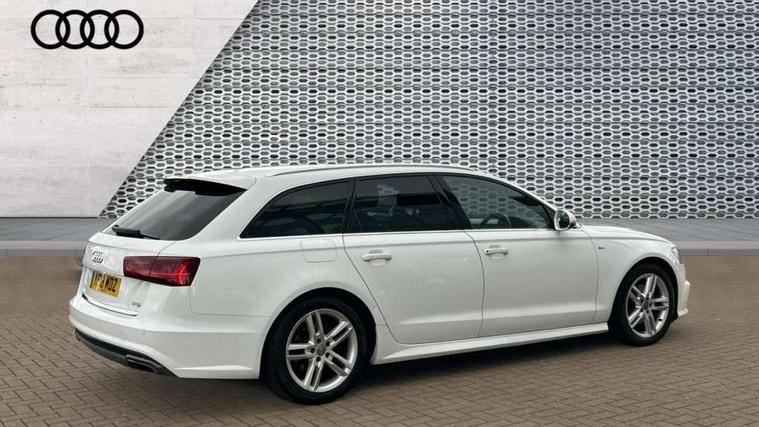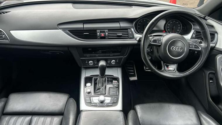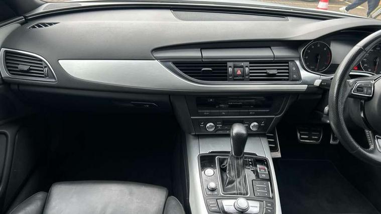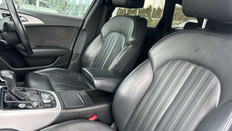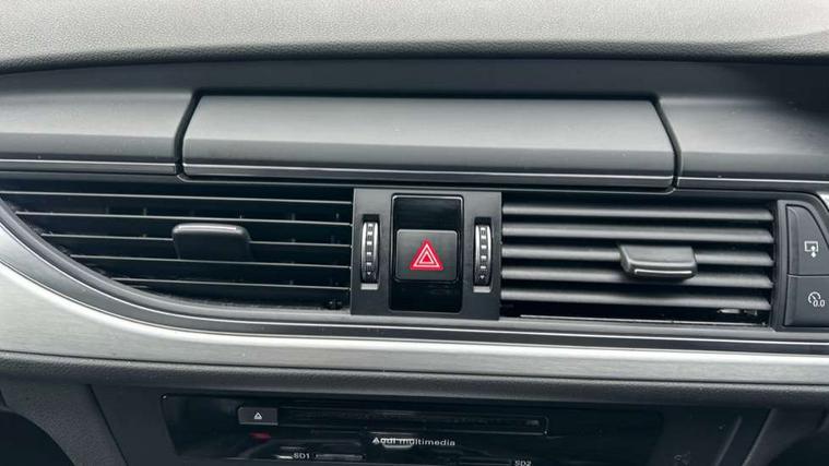 Audi drive select, Audi parking system plus with front and rear sensors, Audible and visual fasten seat belt warning - front and rear, Cruise control, Driver's information system, MMI SD card Navigation, Mobile telephone preparation, PAS, Service interval indicator, Audi music interface, Auxiliary input socket, DAB digital radio module, MMI Radio plus with CD player and bluetooth interface, SD card slot, USB connection, Auto dimming rear view mirror, Automatic headlights + automatic windscreen wipers, Body colour bumpers, Body colour door mirrors and handles, Body colour roof spoiler, Body coloured door mirrors, Electric front/rear windows, Headlight washers, High gloss black finish B pillar, High gloss black triangular aperture at rear door, LED daytime running lights, LED rear lights, Light sensor, Platinum grey front lip spoiler, Rain sensor, Rear wiper, S Line body styling, 12V power in rear centre console, 4 way electric lumbar support for driver and front passenger, 4 zone climate control, Aluminium door sill trims, Black cloth headlining, Door sill trims with S line logo, Double cargo floor, Electric front seats + driver memory, Front centre armrest, Front head restraints, Front/rear floor mats, Height adjustable front seats, Isofix front passenger and rear seat preparation, Jack and tool kit, Perforated leather gearknob, Rear headrests, Split folding rear seat, Non smoking pack - A6, 3 point seatbelts on all seats, ABS/EBD, ASR traction control, Curtain airbags, Driver and passenger airbags, Driver/front passenger side airbags, Electromechanical parking brake, Electronic stability control, Front passenger airbag deactivation, Hill hold assist, Tyre pressure monitoring system, Warning triangle and first aid kit, Anti theft alarm, Anti-theft wheel bolts, Immobiliser, Keyless start, Remote central locking, Alcantara door trim, Space saver spare wheel,