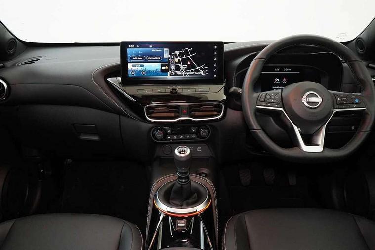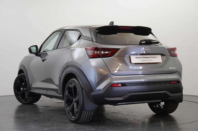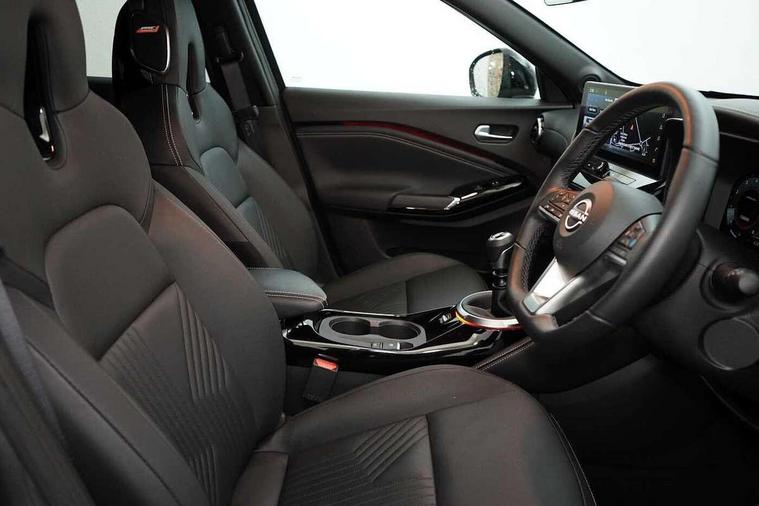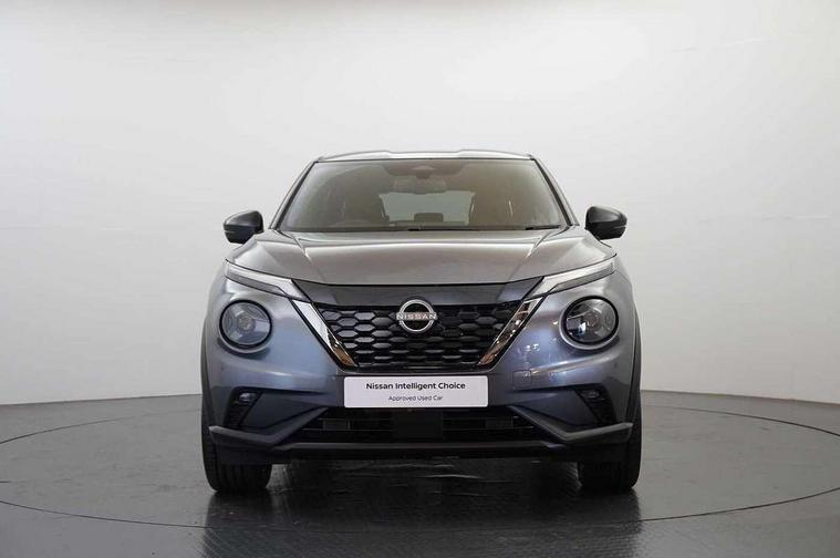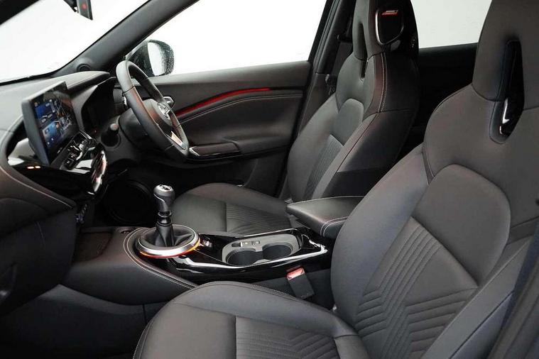 12.3" full colour TFT screen combimeter, Drive modes select (Eco, normal and sport), Emergency and breakdown call, Front parking sensor, Idle start/stop system, Intelligent driver alert system, Intelligent lane intervention, Lane departure warning system, Nissan connect 12.3" touch screen entertainment system, Nissan connect nav with TomTom traffic, Nissan connect services, Outside temperature sensor, Power Steering, Rear parking sensor, Stop/start button, Traffic sign recognition, Trip computer, Voice recognition, WiFi connectivity, Wireless Apple CarPlay and Google Android auto, Wireless Smartphone charger, 10 Bose speakers 8 speakers and 2 headrest speakers for driver/passenger seats, 2 X Rear console USB port, Bluetooth system, USB, Aux-in and 12V socket, Bose personal plus audio system, DAB Digital radio, Auto dimming frameless rear view mirror, Automatic hazard signal with emergency stop signal, Body colour door handles, Electrically adjustable door mirrors with integrated indicators, Follow me home headlights, Front and rear electric window with one touch driver window, High beam assist, LED 3rd brake light, LED daytime running lights, LED front fog lights, LED headlamps, LED rear fog lamp, LED rear lamps, One touch passenger window, Rear privacy glass, Rear side wing doors, Rear wiper, Roof spoiler, Shark fin roof antenna in solid Black, Solid black door mirrors, Three blink turn signal, 3 height adjustable rear headrests, 3 seat bench in 2nd row, 60/40 split folding rear seat, Card holder on driver sunvisor, Door ambient lighting, Driver seat back pocket, Driver side rear coat hanger, Driver/passenger sunvisors and vanity mirrors, Front and rear cabin lights, Front armrest, Front door pockets with bottle holders, Front head restraints, Front/rear passenger grab handles, Gear console ambient circle lighting, Height adjustable driver's seat, Internal chrome door handles, Luggage board, Luggage space lighting, Monoform sporty seats, Multifunction steering wheel, Passenger seat back pocket, Rear door bottle holders, Single front passenger seat, Smooth synthetic leather steering wheel, Synthetic leather kneepad, Synthetic leather shift knob, Synthetic leather upholstery, Telescopic steering wheel adjustment, Two cupholders in front centre console, Two rear isofix child seat anchorage points with top tether, Welcome light and console tray ambient lighting, Advanced safety shield pack - Juke Manual, Comfort pack - Juke, Heat pack with height adjustable passenger seats - Juke, ABS with EBD and brake assist, Active ride control, Active Trace Control, Driver and passenger airbags, Driver and passenger side airbags, Electric handbrake with auto hold function, Electronic Stability Programme (ESP), Front and rear curtain airbags, Height adjustable seatbelts, Hill start assist, Intelligent emergency braking with pedestrian and cyclist recognition, Rear door child safety locks, Seatbelt reminder for driver/front passenger and rear seats, Three 3 point rear seatbelts, Traction control, Tyre pressure monitoring system, VDC Dynamic Vehicle Control, Alarm, Immobiliser, Intelligent key and start push button with walk away lock and approach unlock functions, Remote central locking, 19" Alloy wheels, Tyre puncture repair kit,