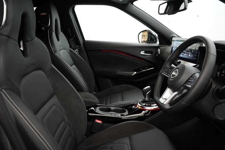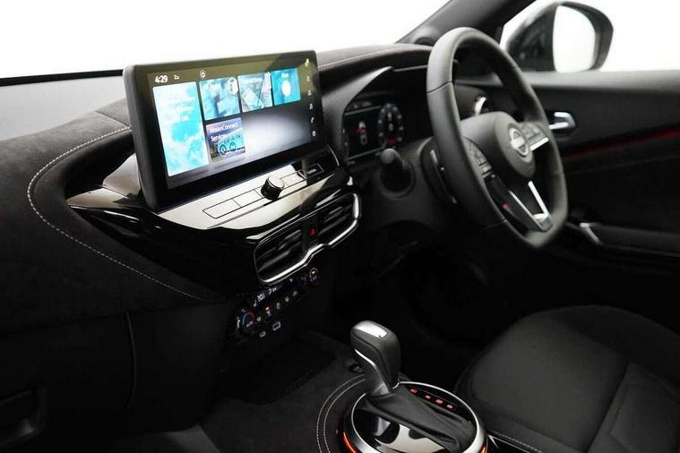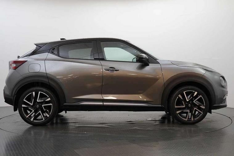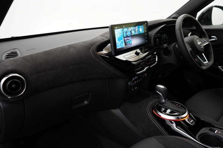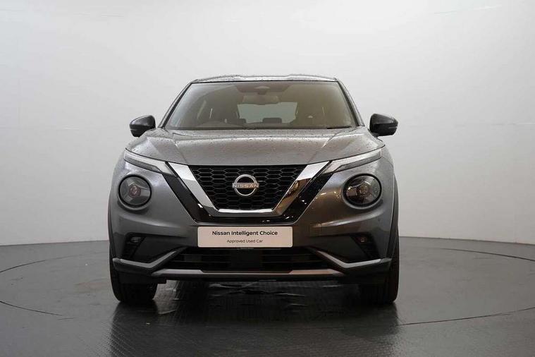 12.3" full colour TFT screen combimeter, Drive modes select (Eco, normal and sport), Emergency and breakdown call, Front parking sensor, Idle start/stop system, Intelligent driver alert system, Intelligent lane intervention, Lane departure warning system, Nissan connect 12.3" touch screen entertainment system, Nissan connect nav with TomTom traffic, Nissan connect services, Outside temperature sensor, Power Steering, Rear parking sensor, Stop/start button, Traffic sign recognition, Trip computer, Voice recognition, WiFi connectivity, Wireless Apple CarPlay and Google Android auto, Wireless Smartphone charger, 10 Bose speakers 8 speakers and 2 headrest speakers for driver/passenger seats, 2 X Rear console USB port, Bluetooth system, USB, Aux-in and 12V socket, Bose personal plus audio system, DAB Digital radio, Auto dimming frameless rear view mirror, Automatic hazard signal with emergency stop signal, Body colour door handles, Electrically adjustable door mirrors with integrated indicators, Follow me home headlights, Front and rear electric window with one touch driver window, High beam assist, LED 3rd brake light, LED daytime running lights, LED front fog lights, LED headlamps, LED rear fog lamp, LED rear lamps, One touch passenger window, Rear privacy glass, Rear side wing doors, Rear wiper, Roof spoiler, Shark fin roof antenna in solid Black, Solid black door mirrors, Solid black front bumper/rear bumper and side skirts inserts, Three blink turn signal, 3 height adjustable rear headrests, 3 seat bench in 2nd row, 60/40 split folding rear seat, Card holder on driver sunvisor, Door ambient lighting, Driver seat back pocket, Driver side rear coat hanger, Driver/passenger sunvisors and vanity mirrors, Front and rear cabin lights, Front armrest, Front door pockets with bottle holders, Front head restraints, Front/rear passenger grab handles, Gear console ambient circle lighting, Height adjustable driver's seat, Internal chrome door handles, Luggage board, Luggage space lighting, Monoform sporty seats, Multifunction steering wheel, Passenger seat back pocket, Rear door bottle holders, Single front passenger seat, Smooth synthetic leather steering wheel, Steering wheel mounted gearshift paddles, Synthetic leather kneepad, Synthetic leather shift knob, Telescopic steering wheel adjustment, Two cupholders in front centre console, Two rear isofix child seat anchorage points with top tether, Welcome light and console tray ambient lighting, Comfort pack - Juke, Heat pack with height adjustable passenger seats - Juke, Interior personalisation pack - Juke, ProPilot pack - Juke Auto, Satin grey exterior personalisation pack - Juke, ABS with EBD and brake assist, Active ride control, Active Trace Control, Driver and passenger airbags, Driver and passenger side airbags, Electric handbrake with auto hold function, Electronic Stability Programme (ESP), Front and rear curtain airbags, Height adjustable seatbelts, Hill start assist, Intelligent emergency braking with pedestrian and cyclist recognition, Rear door child safety locks, Seatbelt reminder for driver/front passenger and rear seats, Three 3 point rear seatbelts, Traction control, Tyre pressure monitoring system, VDC Dynamic Vehicle Control, Alarm, Immobiliser, Intelligent key and start push button with walk away lock and approach unlock functions, Remote central locking, 19" Alloy wheels with deep 3D effect, Tyre puncture repair kit,