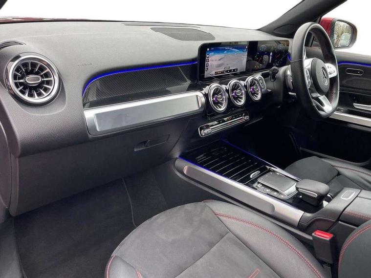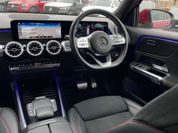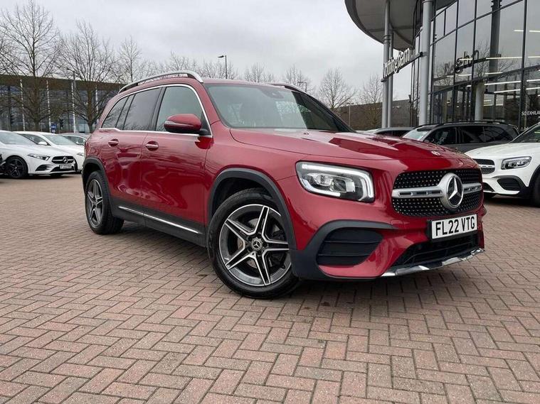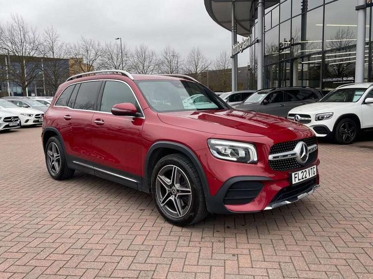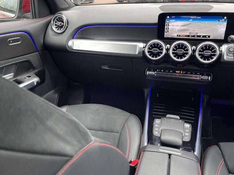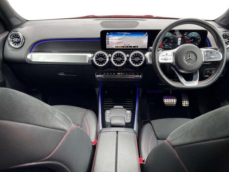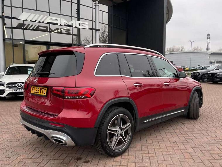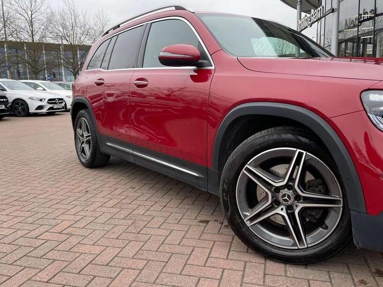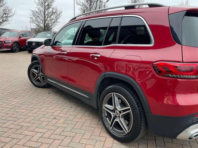 10.25" Digital instrument cluster display screen, 10.25" Digital media screen display, Active lane keeping assist, Attention assist - Monitors steering behaviour and long journey fatigue, Brake pad wear indicator warning light, Car wash mode, Cruise control with limiter, DYNAMIC SELECT with a choice of driving modes (ECO, Comfort, Sport and Individual), ECO start/stop function, Fluid level warning indicator for fuel, oil, coolant and washer fluid, Hard disk navigation, Hey Mercedes Voice activation, Lamp failure indicator, Mercedes me connect including emergency call system, accident recovery, breakdown and maintenance management, Mercedes me remote services, Outside temperature gauge, Owners manual and service booklet in English, Parameter steering system, Pre-installation of private car share, Preinstallation for parking damage notification, Radio aerial integrated into front and rear windshields, Service indicator (ASSYST), Smartphone integration with Apple CarPlay and Android auto, Speed limit assist, Trip computer in multifunction display with current consumption indicator, Comfort suspension, Rear axle multi-link, DAB digital radio tuner, MBUX multimedia system with DAB digital radio and touchpad including satellite navigation, Mercedes Benz sound system (225 W) with 10 speakers, 1 central speaker, speakers on doors, a tweeter on door, one sub woofer + boost amplifier, Pre installation for Mercedes Benz Link, USB (type C) port in front stowage compartment, USB (type C) ports (2) in stowage compartment, Adaptive brake lights, Aerial for GPS, AMG bodystyling door panels black grained with chrome plated inserts, AMG bodystyling front apron with chrome splitter, AMG bodystyling rear apron with diffuser optics and chrome trim element, AMG specific front and rear bumper including underride guard in high gloss chrome, Beltline strips and weather strip in chrome, Body coloured bumpers, Body coloured door handles with chrome insert for keyless entry, Body coloured door mirror caps, Electric adjustable and heated door mirrors with integrated LED side indicators, Exhaust system with dual flow exhaust pipes (non-functional), Front and rear electric windows, Headlamp assist automatic headlamp activation, Heated glass rear windscreen + timer control, High level LED third brake light, Interior mirror with black reading lamps and frameless, LED high performance headlamps with integrated LED daytime running lights, LED tail lamp, Polished aluminium roof rails, Privacy glass with dark tinting on rear side windows and rear window, Radiator grille with pins in chrome and single louvre with chrome insert, Rain sensor windscreen wipers, Rear fog lamp, Rear side wing doors, Rear wiper, Two visible tailpipe trim elements exhaust, 3 seat bench in 2nd row, 3 spoke multifunction sport steering wheel in nappa leather, Air conditioning - Two zone thermotronic luxury automatic climate control with display, AMG sports pedals with brushed stainless steel surfaces and black rubber studs, Artico man-made leather/Microfibre Dinamica upholstery with red contrast stitching, Automatic child seat recognition sensor, Black floor mats with AMG lettering, Black roof lining, Fore/aft adjustment rear seats, Freight packaging with tie-down hooks, Front centre armrest with stowage, Front door sills with illuminated changeable cover, Front passenger grab handle with brushed side silver chrome, Front sports seats with adjustable head restraints, Galvanished gear shift paddles on steering wheel, Heated front seats, Height/reach adjustable steering column, Interior lighting - 64 colour Ambient lighting, Luggage net on driver/front passenger seat backrest, Net in front passenger footwell, Rear armrest with two integral cup holders for drinks, Rear seat easy entry, Single front passenger seat, Stowage compartment in centre console, Stowage compartment with retractable cover, Third row of seats for two people on rear seat, Touchpad on center console, Twin front cup holders, Two outer rear seat isofix and top tether child seat fixing points, Interior lighting with light and sight pack - GLB, Keyless go pack - GLB, Mirror pack - GLB, Parking pack - GLB, Seat comfort package - GLB, 3 rear 3 point seatbelts, Active bonnet pedestrain safety measure which detects an impact and raises bonnet by 65mm, Active brake assist includes forward collision warning system with autonomous braking, Adaptive brake assist with hold function and hill start assist, Airbags - kneebag for driver, Anti-lock braking system (ABS) with brake assist, Childproof locks manually operated for rear doors and electrically operated for rear power windows, Crash responsive emergency lighting, Curve dynamic assist, Driver and front passenger head and sidebags, Driver and front passenger windowbags, Dual stage driver and front passenger airbags, Electronic parking brake, Electronic stability programme with acceleration skid control, Front and rear seatbelt reminder, Front brake callipers with Mercedes Benz lettering, Front passenger seat occupancy sensor, Tyre pressure monitoring system, Warning triangle and first aid kit, Interior monitoring system, Remote central locking and crash sensor with emergency opening function, Thatcham category 1 alarm system with immobiliser and interior protection, Urban guard vehicle protection - Anti theft alarm system, tow away protection with visual and acoustic warning and alarm siren, Vehicle key with decorative surround in chrome, Black air vents with chrome surround, Carbon structure trim, 19" AMG 5 twin spoke light alloy wheels painted in high gloss black with high sheen finish, Summer tyres, Tirefit tyre sealant kit,