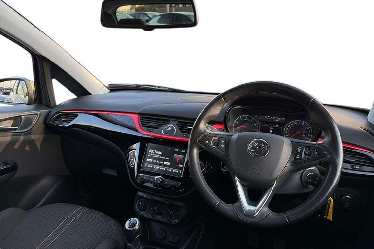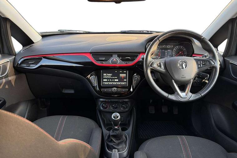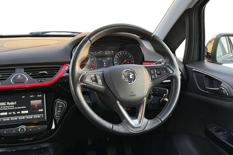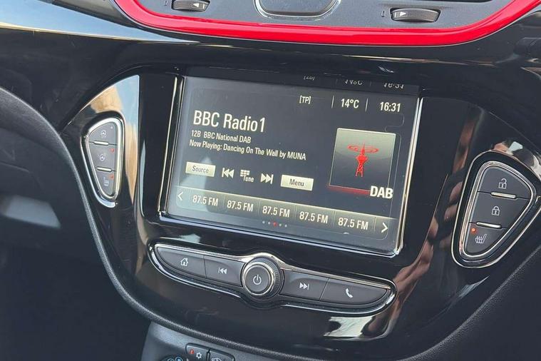 Apple car play/Android Auto, Bluetooth system, Central facia display, Cruise control + speed limiter, Digital fuel gauge with low fuel warning light, Digital water temperature gauge, Electric speed sensitive power steering, Exterior temperature gauge, Lights on audible warning, Navi 4.0 IntelliLink navigation with 7" touchscreen, traffic program, DAB , USB, Bluetooth audio streaming, Apple CarPlay/Android auto, and microphone, Rev counter, Service indicator, Speed warning indicator, Speedometer, Trip computer, White graphics on black background, Front anti roll bar, Sports suspension, Six speakers, Steering wheel mounted audio/cruise controls, Automatically dimming anti dazzle rear view mirror, Black door mirrors, Black foil on B-pillars, Black front grille logo bar, Black roof, Body colour bumpers, Body colour door handles, Chrome front grille, Dark tinted rear windows, Dipping rear view mirror, Door to door illumination, Electric adjustable/manual folding door mirrors (wide angle on driver's side), Electric headlight beam leveling, Electrically operated front windows with safety auto reverse/one touch facility, Front fog lights with black surround, Front fog lights with chrome surrounds, Griffin badges, Halogen headlights, Hazard warning lamps, Headlamp levelling, Heated rear window, Heated windscreen, High level LED centre brake light, Intermittent rear wash/wipe, Laminated windscreen, LED daytime running lights, Mineral black door mirror housings, Rain sensitive windscreen wipers, Rear fog lights, Rear wiper, Side window demist vents, Tinted windows, Two speed windscreen wipers with variable intermittent wipe, Welcome lighting, Windscreen demist vents, 12V electrical accessory socket in front, 3 spoke steering wheel, Air conditioning, Anti submarining ramps in all seats, Centre console with cupholders, Chrome gear knob, Chrome interior door handles, Comfort front seats, Driver's and front passenger's sunvisors, Driver's and front passenger's tiltable assist handles, Driver's and passenger's vanity mirrors with flip up cover, Driver's vanity mirror, Four adjustable facia vents, Front courtesy lights, Front door pockets, Front map reading lights, Front seat belt pre-tensioners with load limiters, Glovebox with lid, Grab handles, Griffin branded floor mats, Heated front seats, Height adjustable driver's seat, Height adjustable front headrests, Height adjustable rear head restraints with adjustable backrest, Illuminated luggage compartment, Instrument panel light dimmer, Interior tailgate handles, Isofix child seat mounting points on outer rear seats, Lace cloth trim, Load restraining lashing points, Luggage compartment cover, Multi function steering wheel, One piece folding rear seat, Pollen filter, Reach + rake adjustable steering column, Rear courtesy lights, Rear door pockets, Rear reading lights, Reclining front seats, Sports front seats, Storage box on driver's side lower facia, Stowage facility for luggage compartment cover behind rear seats, Twin gas assisted tailgate struts, Two rear tiltable passenger assist handles, Sight and light Pack - Corsa, Winter pack - Corsa, Anti-lock braking system (ABS), Brake assist function, Electronic brake force distribution, Electronic Stability Programme, Energy absorbing steering column, Front and rear seatbelt reminder, Front and rear seatbelt unfastened audible warning and warning light, Front seatbelt force limiters, Gas pressure dampers, Height adjustable front seatbelts, Hill start assist, Manual passenger airbag deactivation function, Pedal release system, Rear child proof door locks, Reinforced passenger safety cell, Side impact protection beams, Six airbags - Driver's dual stage airbag/front passenger's dual stage airbag/front seat side impact airbags/full size curtain airbags, Three 3 point rear seatbelts, Three inertia reel lap/diagonal seatbelts, Traction control, Tyre pressure monitoring system, Electronically protected audio, Engine Immobiliser & Deadlocks, Key left in ignition audible warning, Locking wheel bolts, Remote control central locking, Visible vehicle identification number, Rhutenium facia with chrome effect inserts, 16" 4 twin spoke black alloy wheels, Tyre inflation kit,